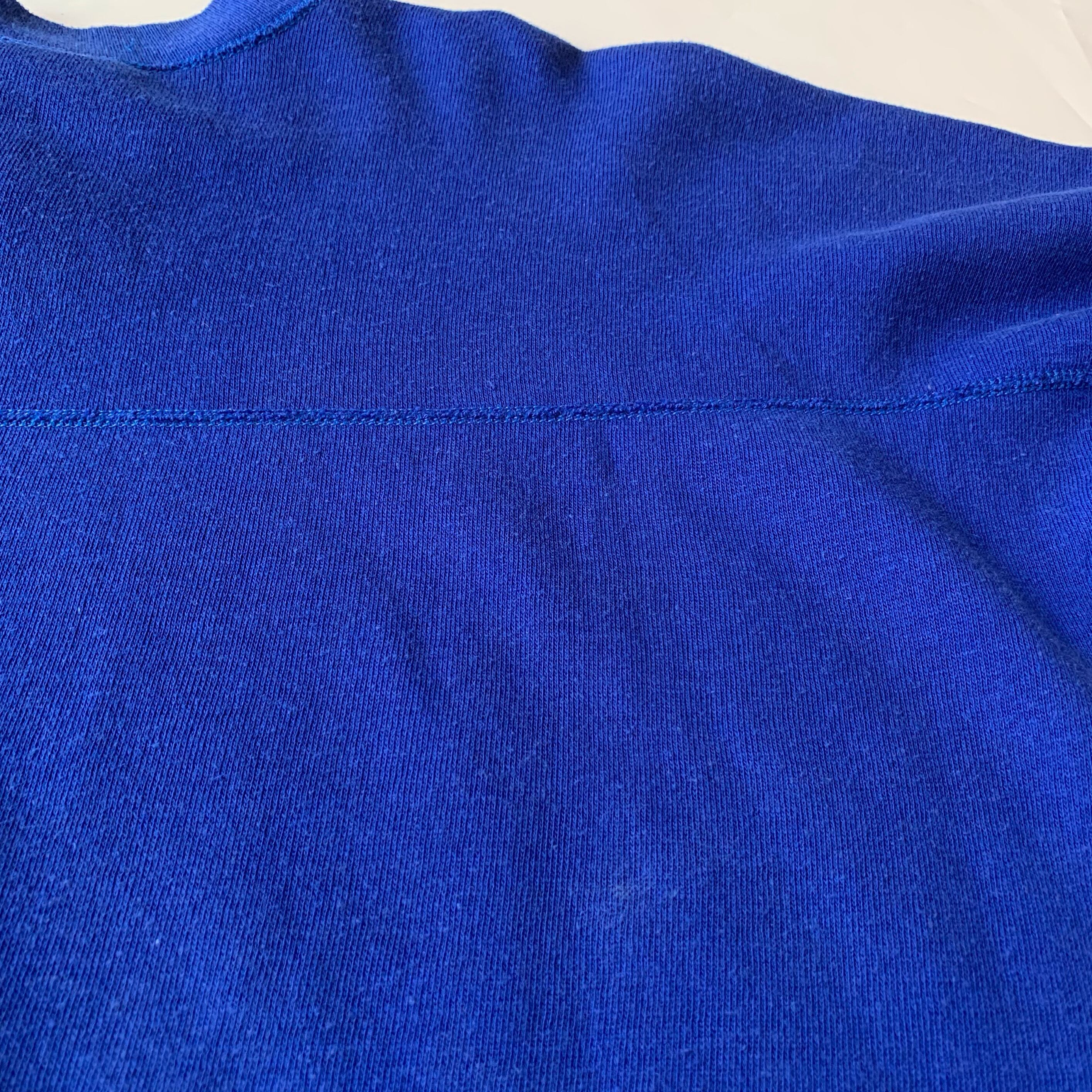 生地感がとても良いスウェットで、ラグランスリーブの大胆なステッチワークが印象的なアイテムです。