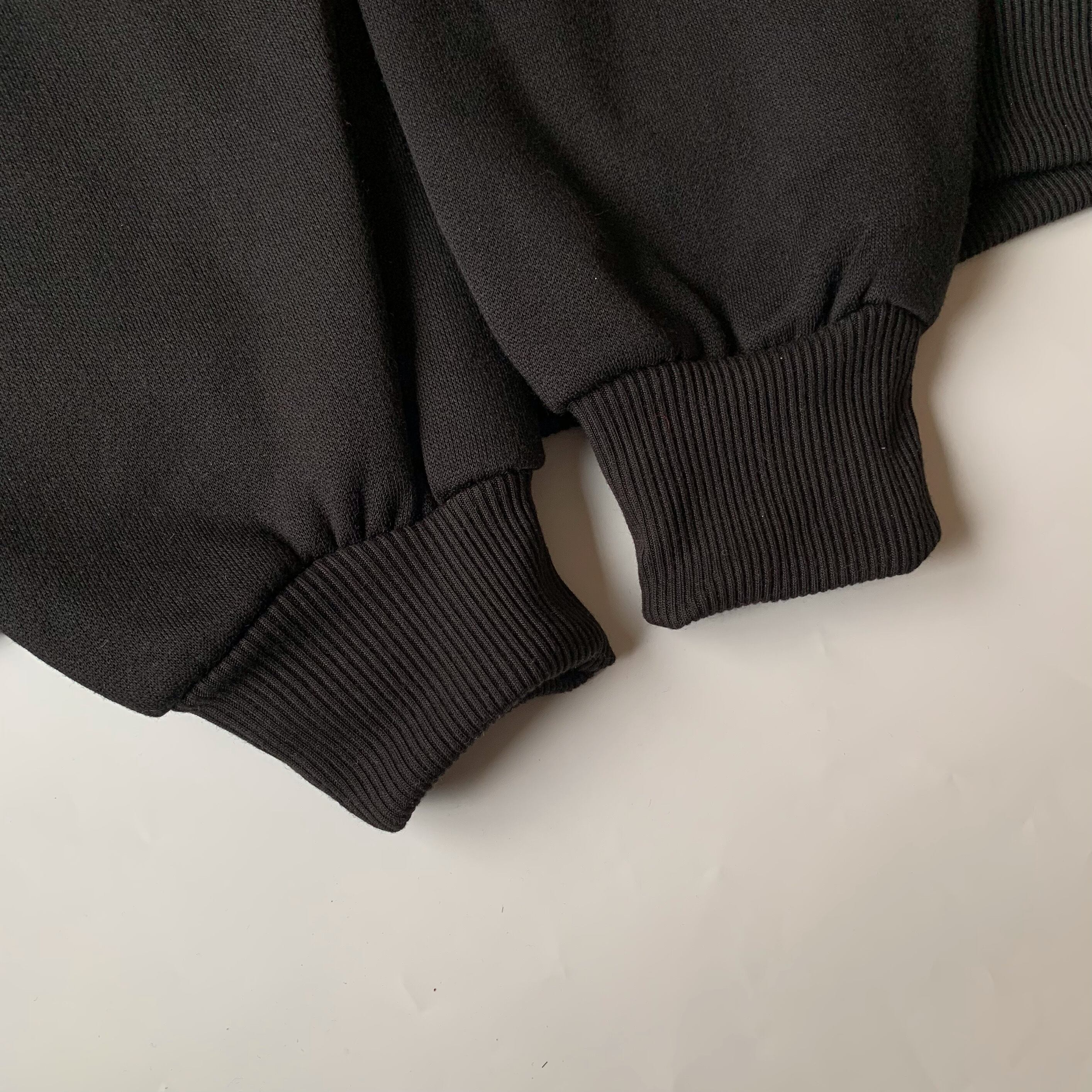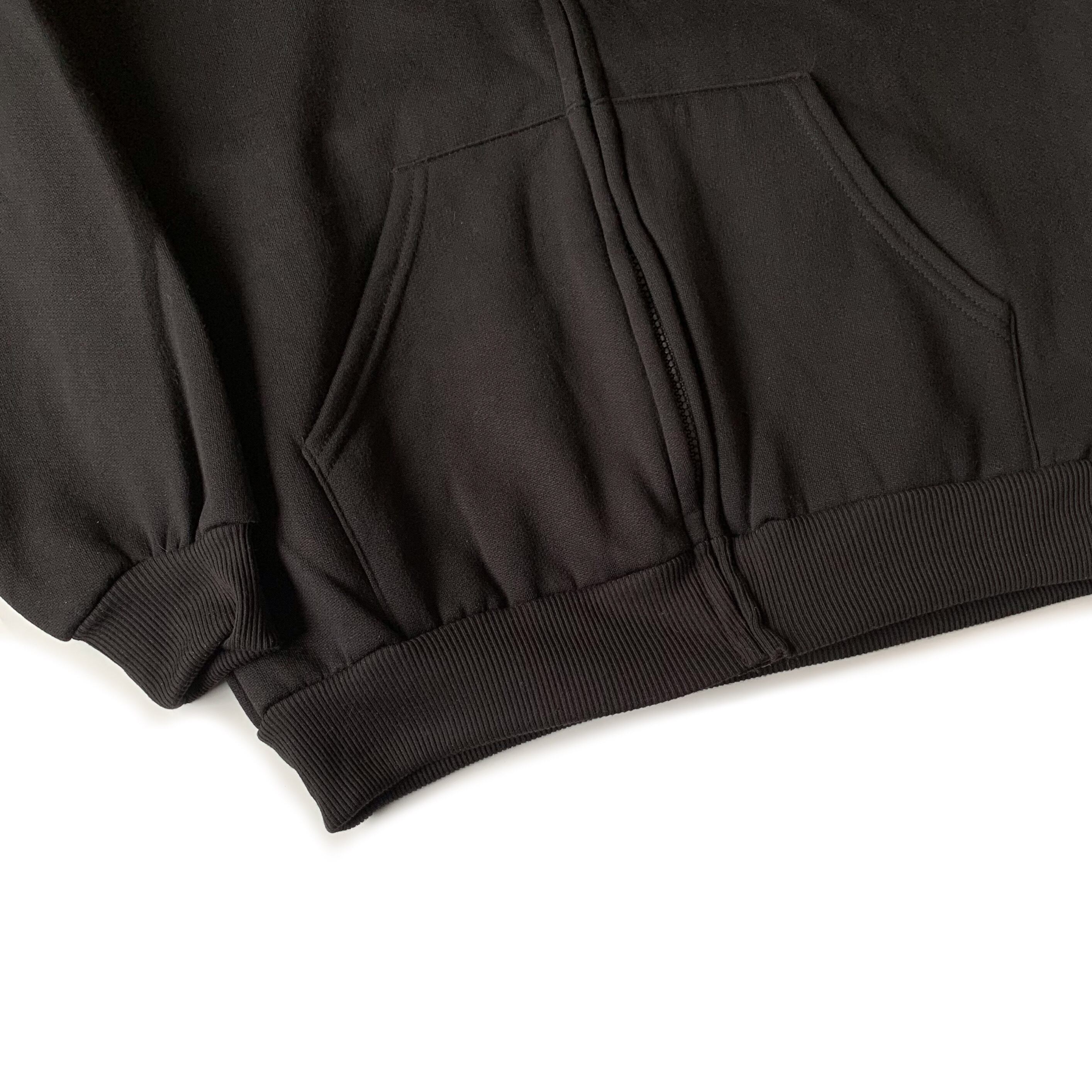 ジップアップタイプのパーカー。ポリエステル配合多めですので、ジャージのような生地感。裏起毛で着心地抜群です。