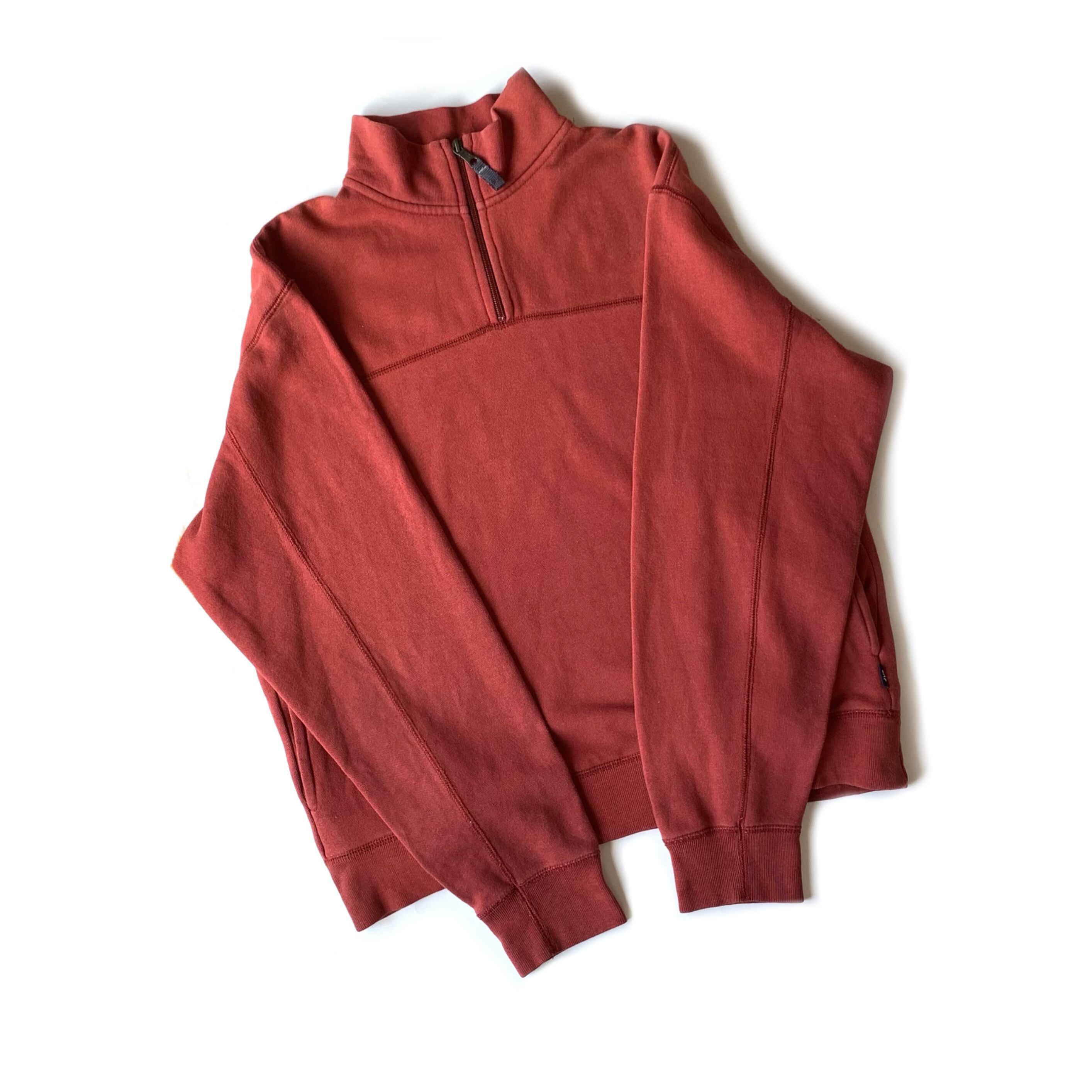 こちらは2000年代頃のハーフジップスウェット。ハイネックタイプで、気分や天気に合わせて襟を折って着ても良いですね。