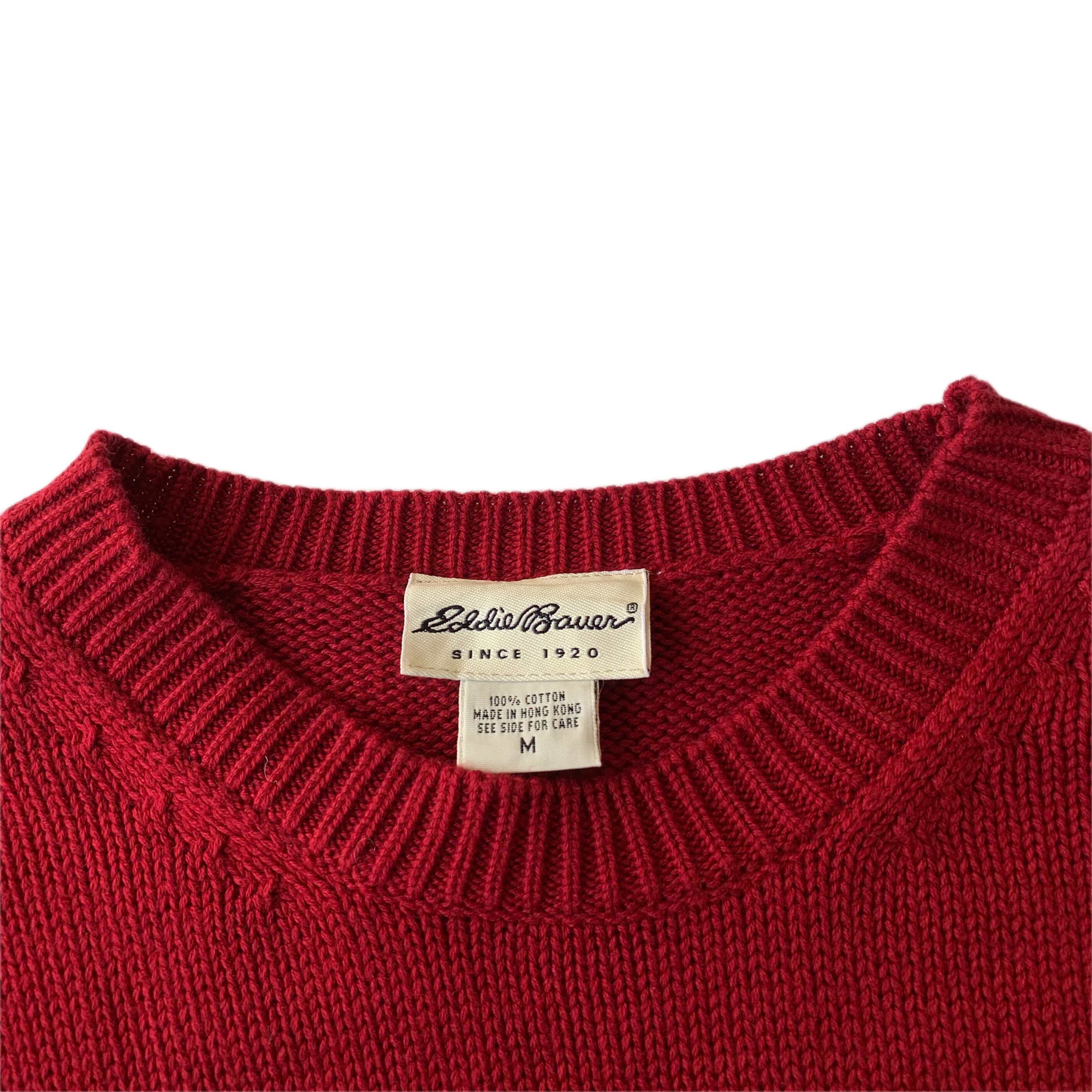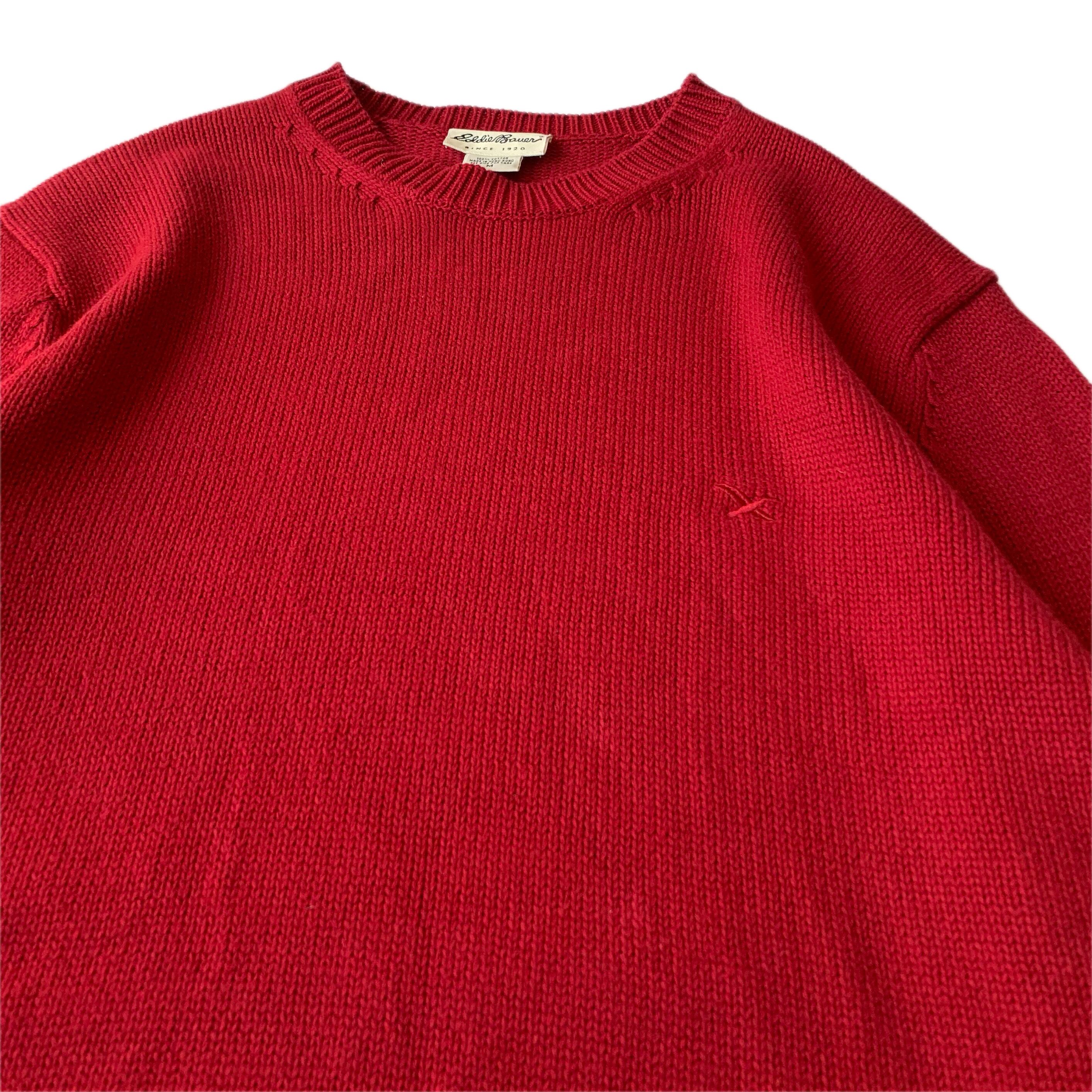 こちらは2000年代頃のコットンニット。無地のレッドカラーボディ、リブ編みの1枚です。