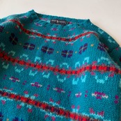 エメラルドグリーンカラーボディに総柄が纏われた爽やかなデザイン。100%WOOLの確りとした生地。