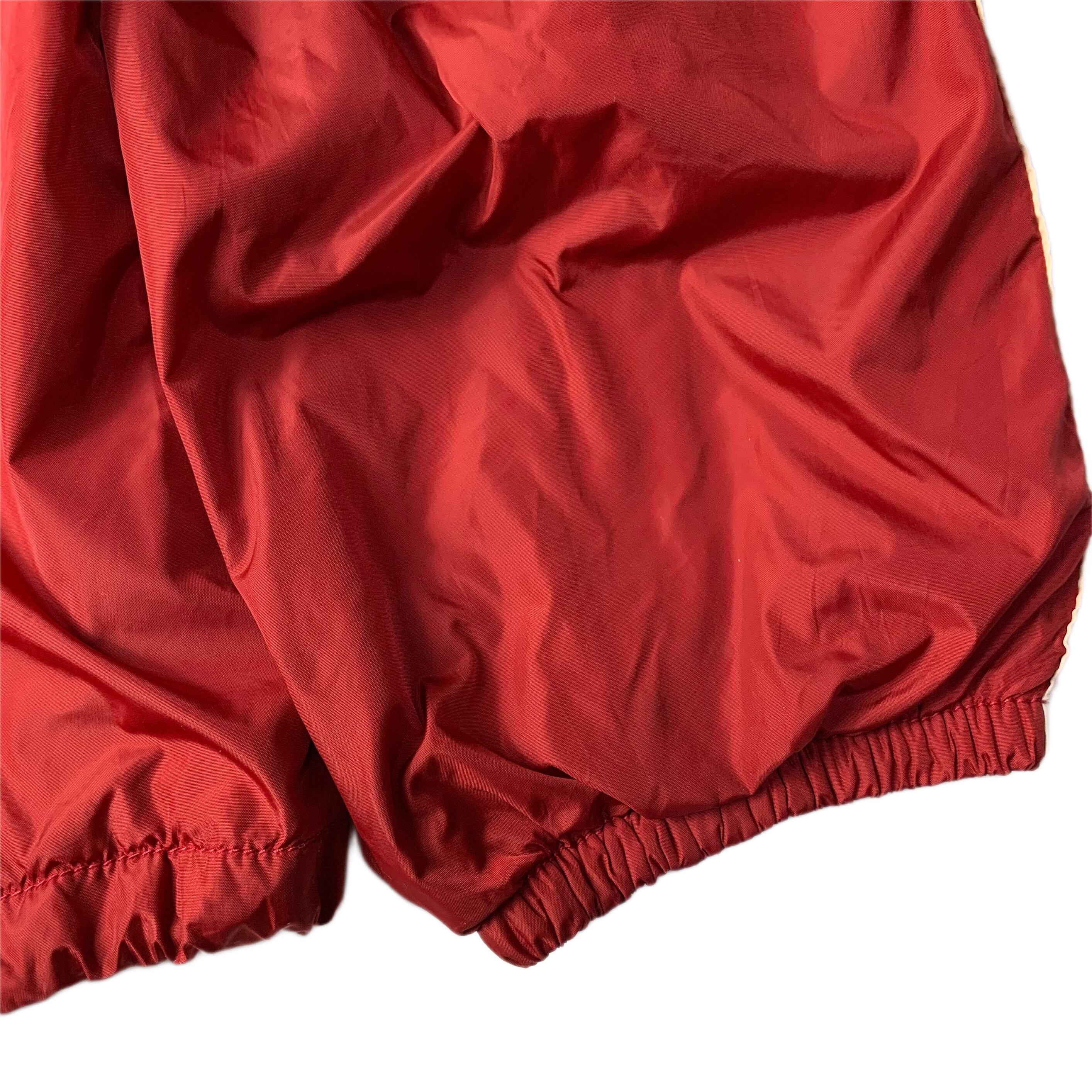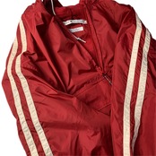 シェルはナイロン地、ライニングはフリース素材となっております。レッドカラーボディで肩に2本ラインが入ったデザイン。ハーフジップタイプ。