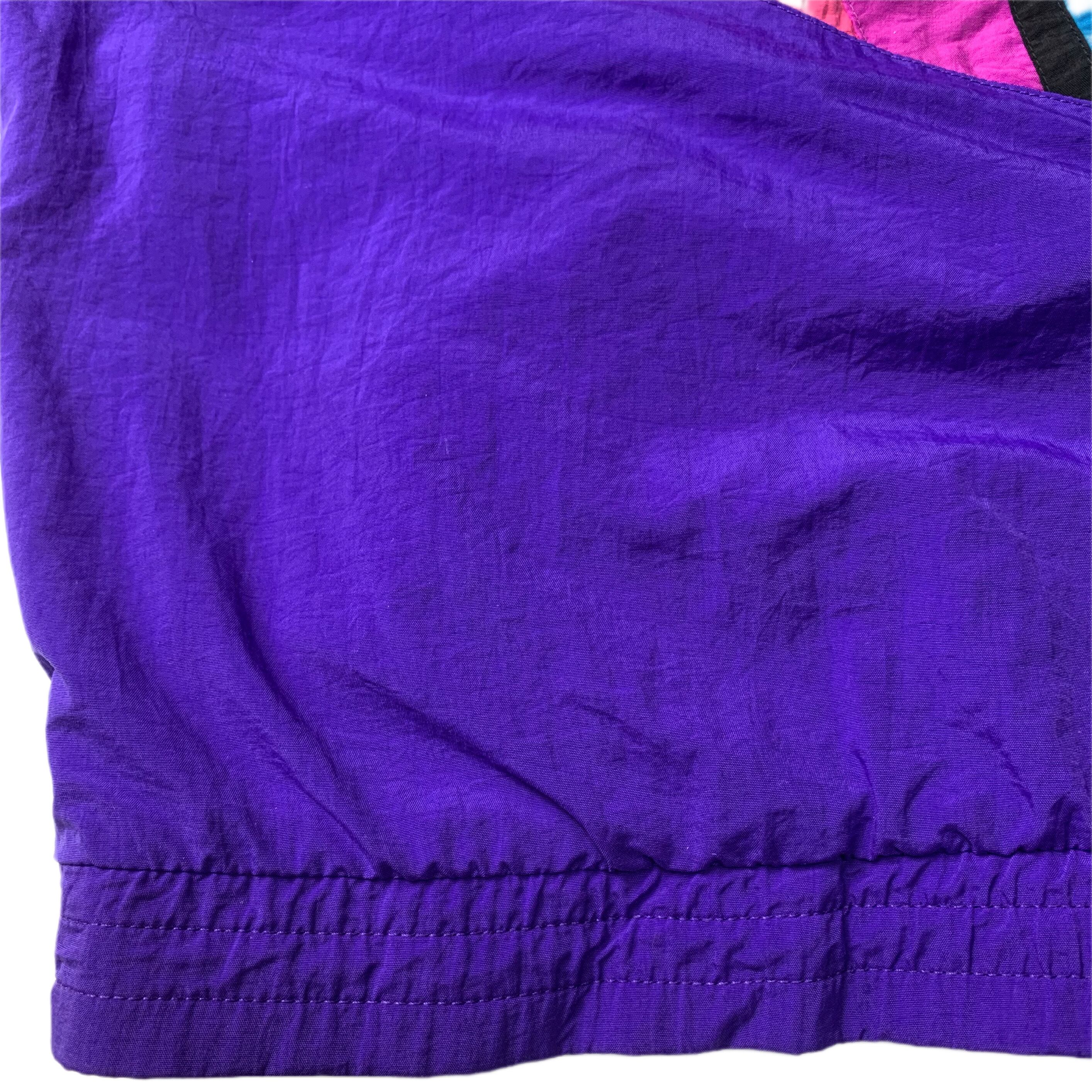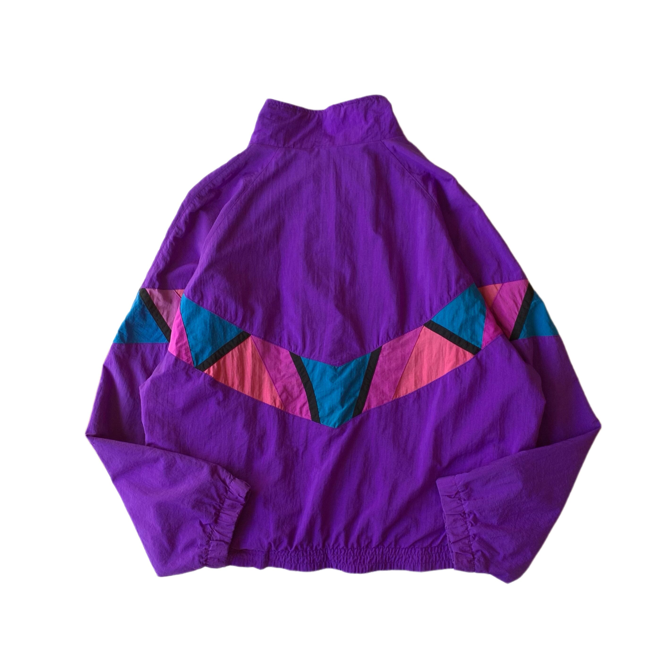 袖から一直線に連なったデザインが特徴的。パープル×ピンク×ブルーのビビットな配色。当ブランドのナイロンジャケットでもまず見かけないデザインかと思います。
