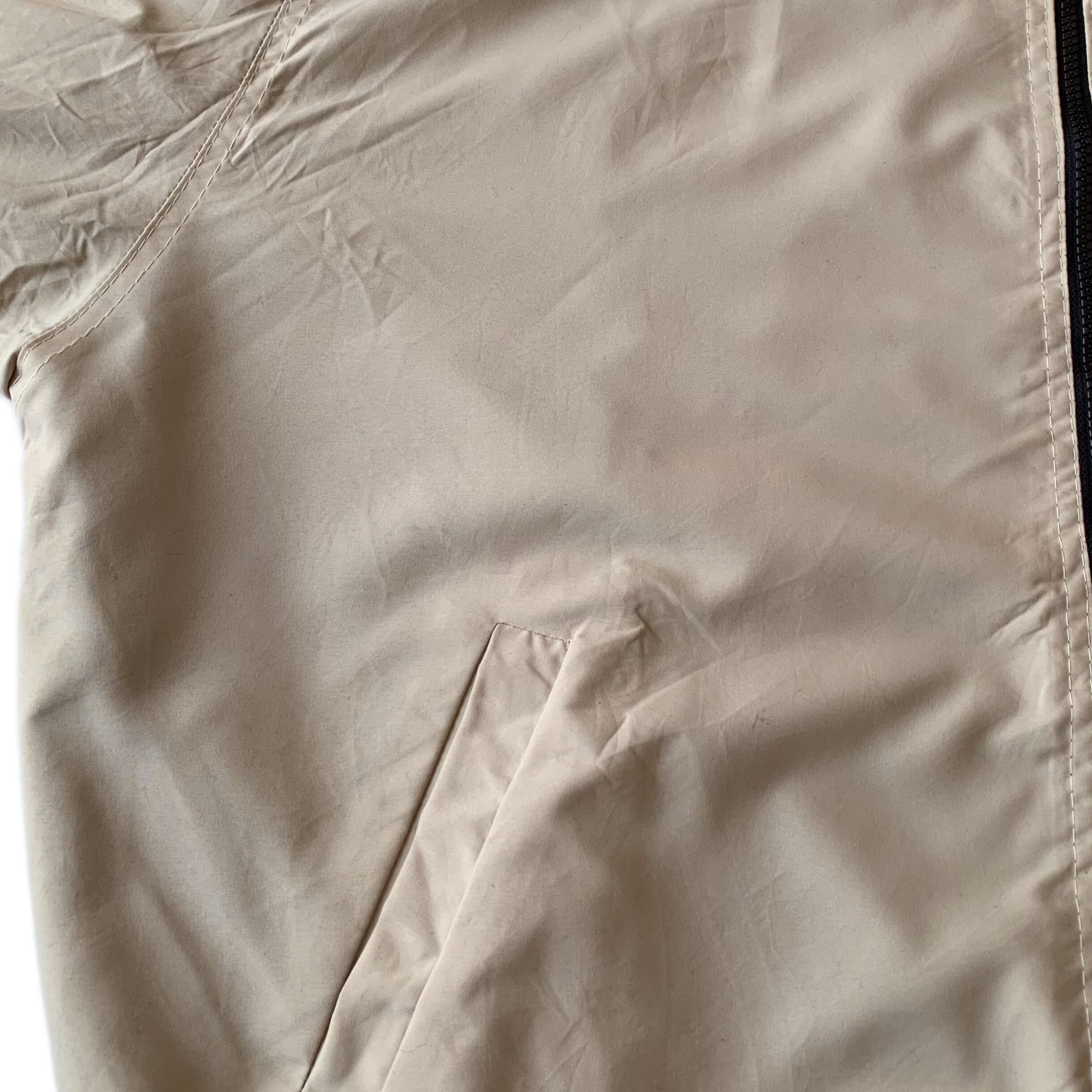 フルジップ、コットンリブの付いたブルゾン。ベージュ、ブラックどちらも汎用性高いカラーリングですので、その日の気分によって使い分けできます。