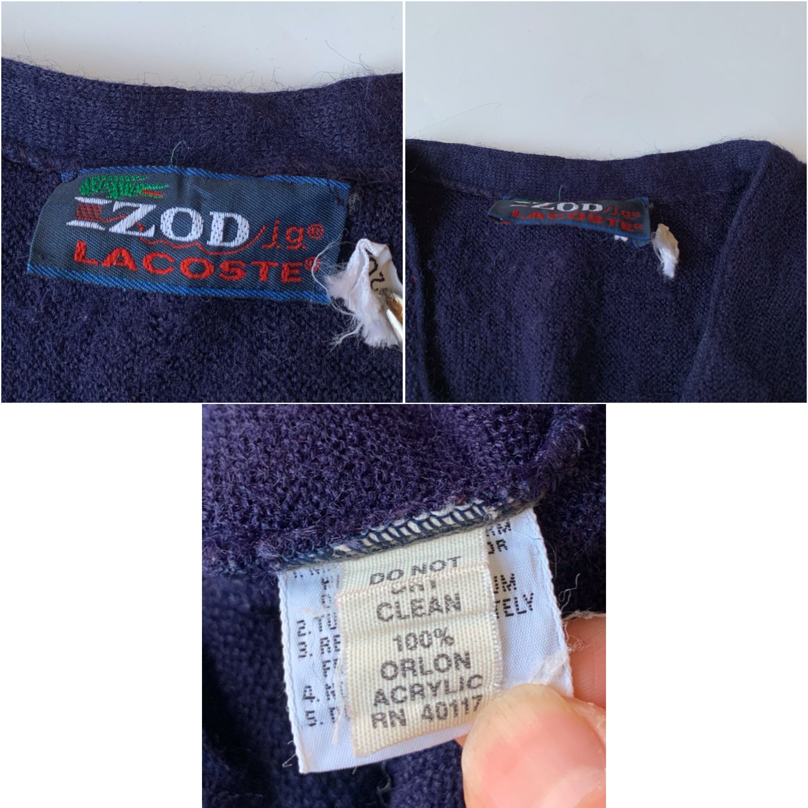IZOD LACOSTE のアクリルカーディガン。糸巻きタグが付く70-80年代頃のアイテム。