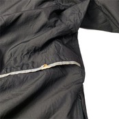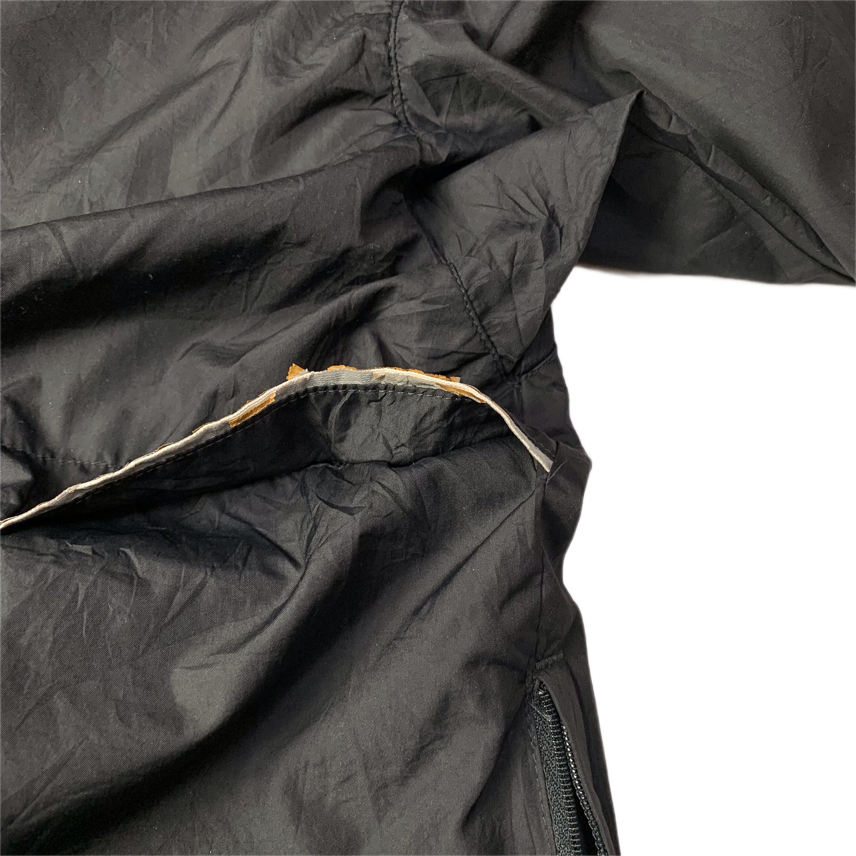 シェルはテロテロとし光沢のあるポリエステル素材。ジッパー開閉のウォームアップポケットもございます。裾にはドローコード付きです。