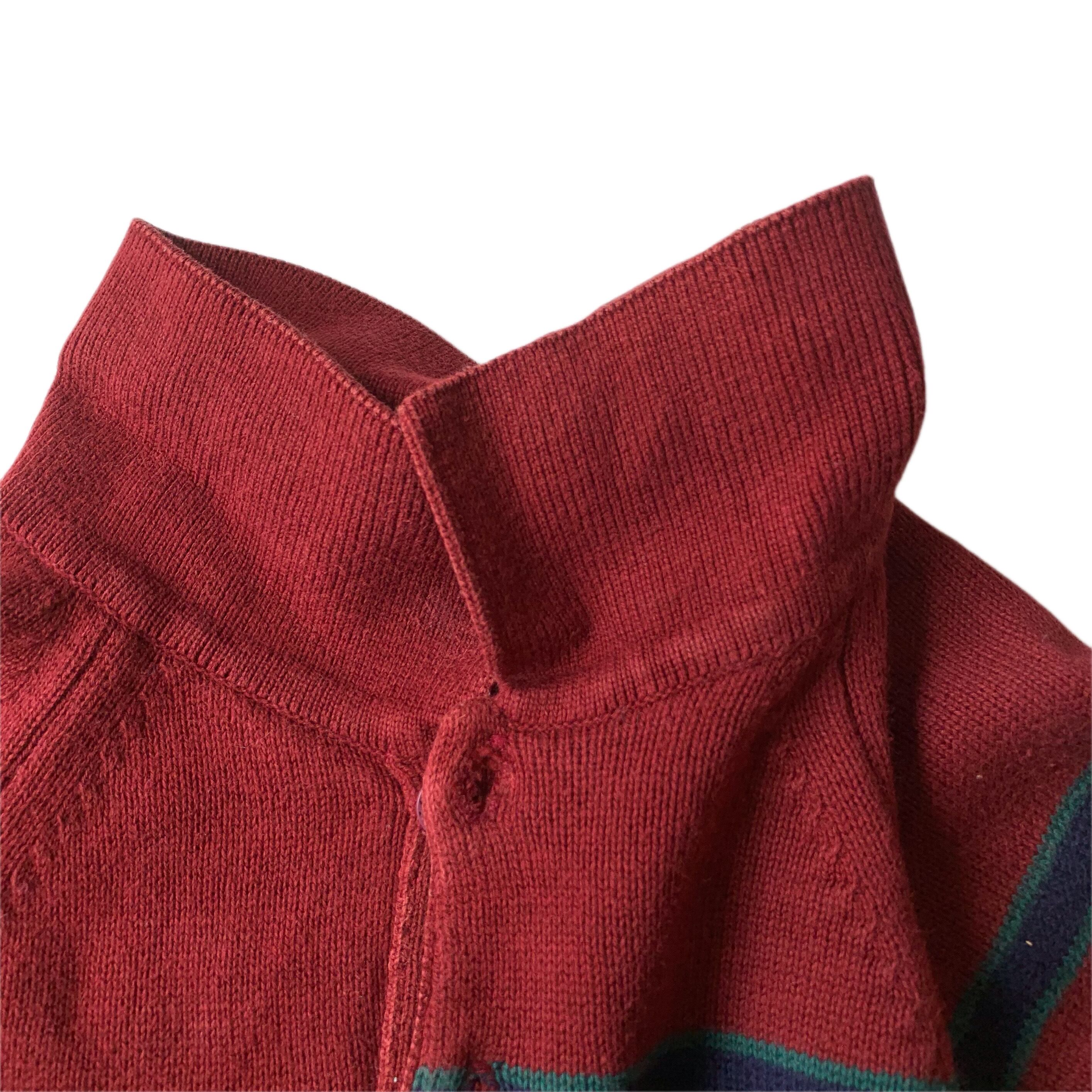 ボルドーカラーにネイビー/グリーンのボーダー柄が施されたグッドデザイン。