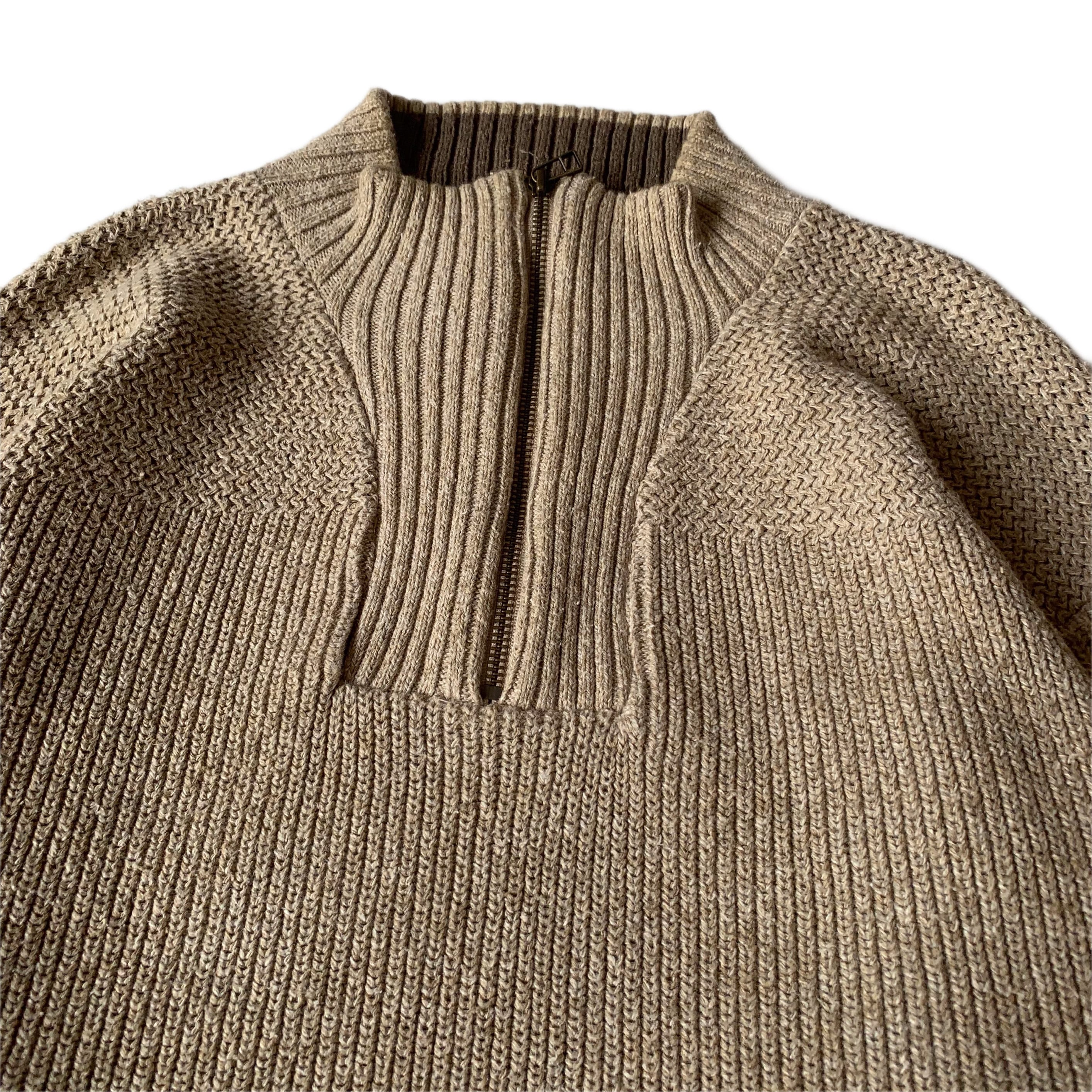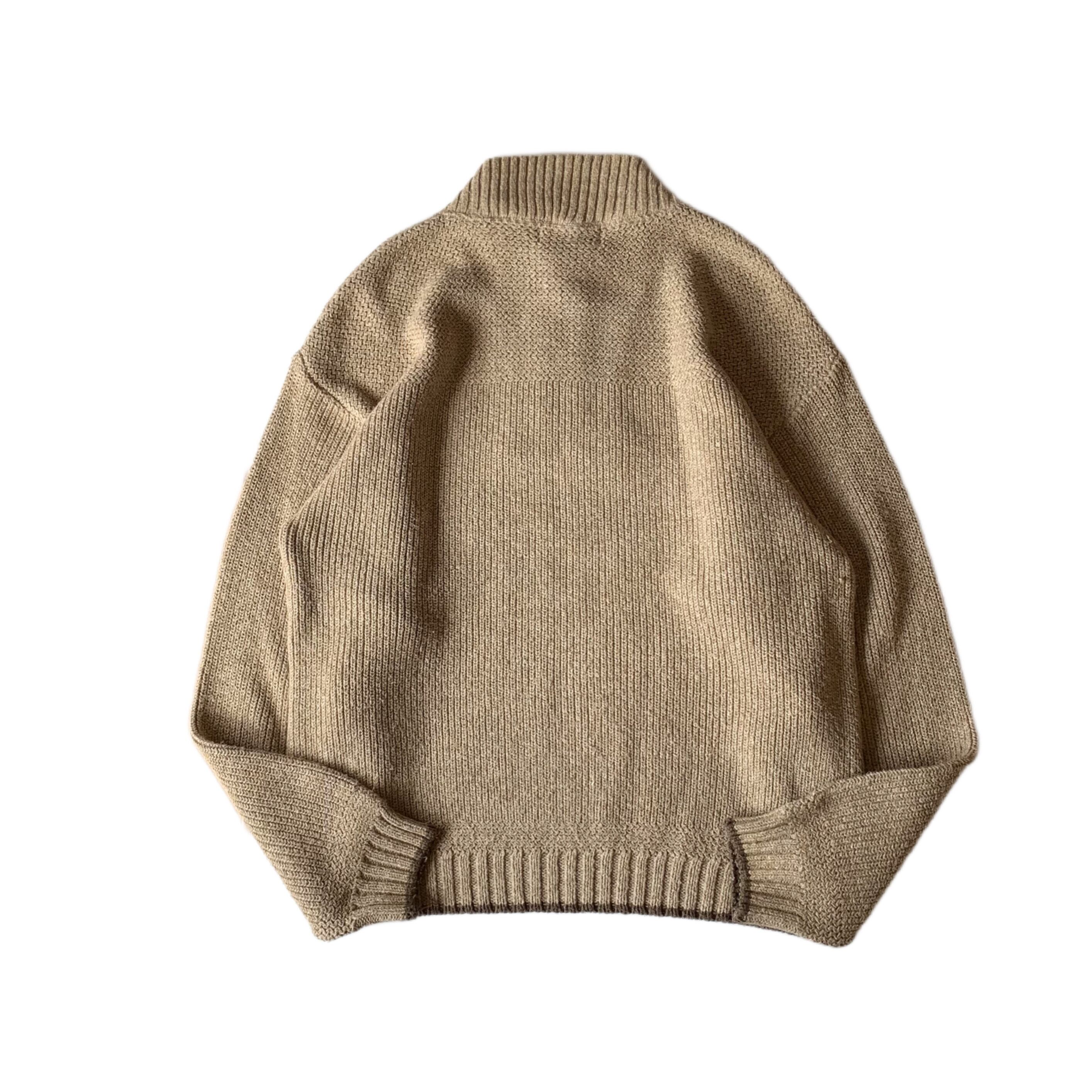 こちらは90-00頃 のコットンニット。ハーフジップタイプで、ナチュラルベージュ×ブラウンを基調とした柔らかなカラーリングの1枚です。