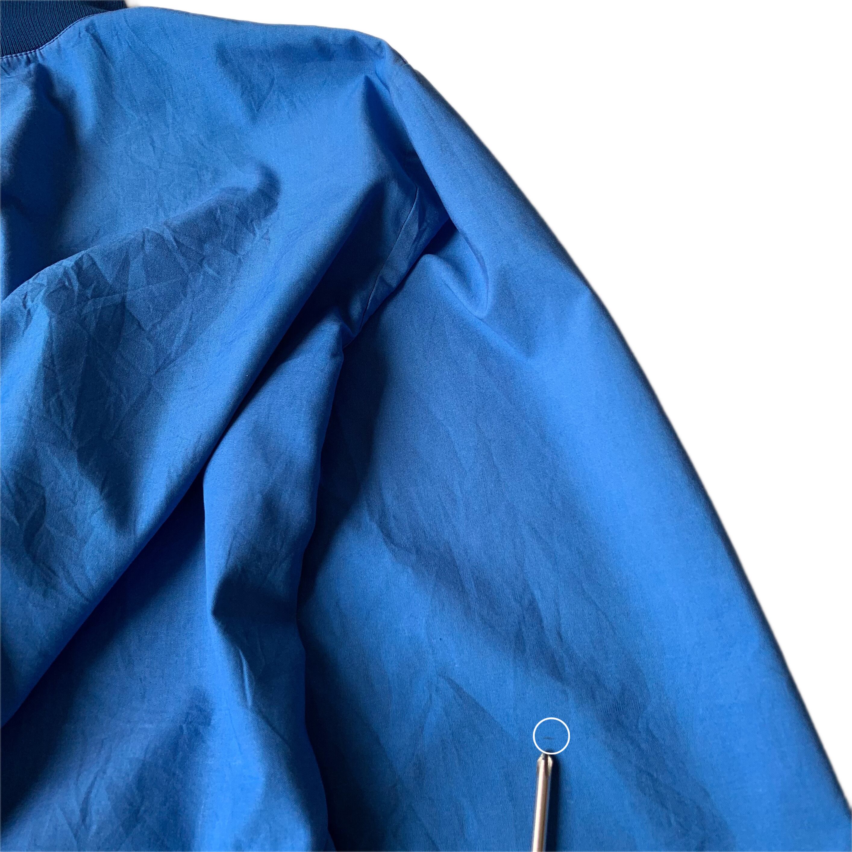 シェルはおそらくポリコットン、ハリのある薄手の生地感です。襟元や袖はリブ仕様。