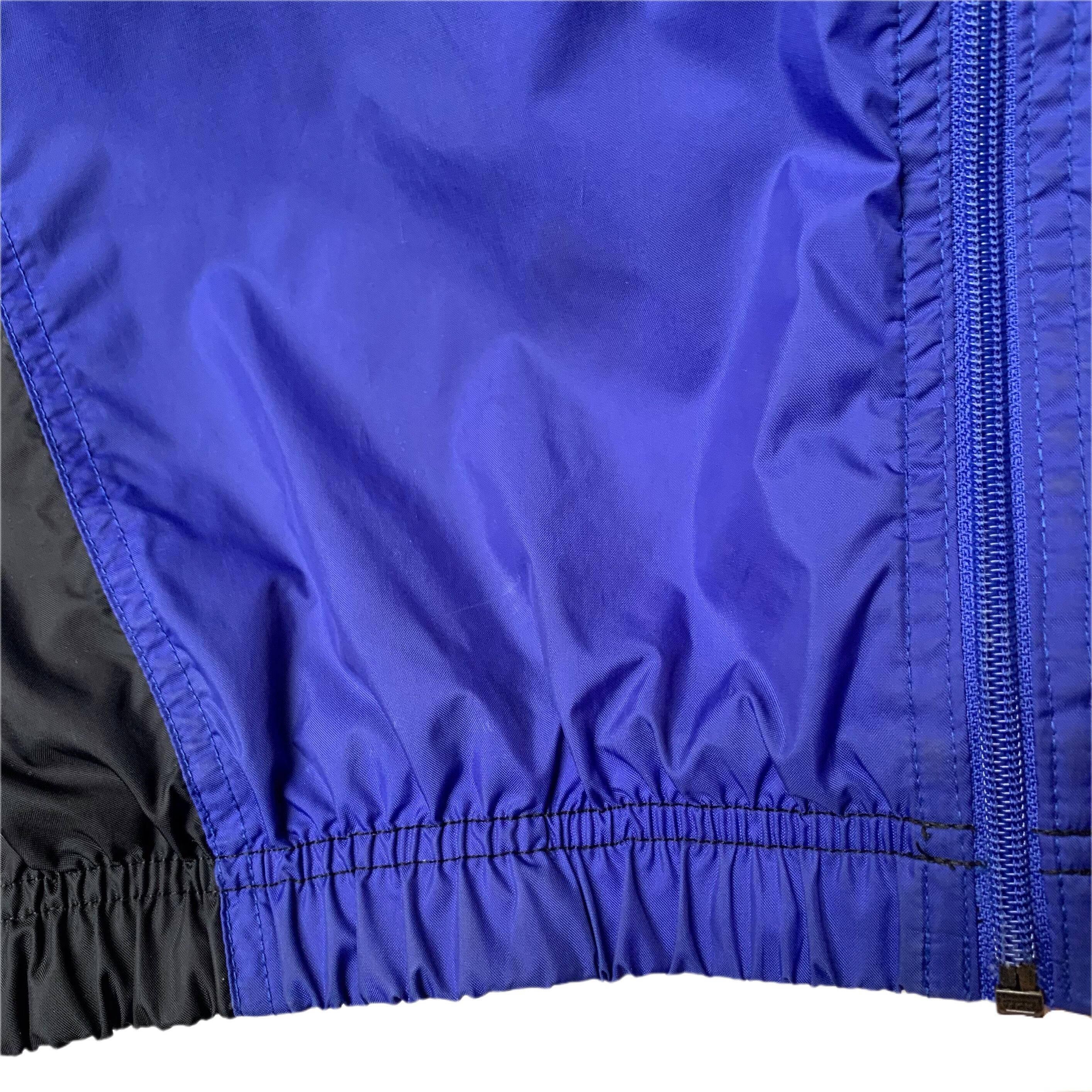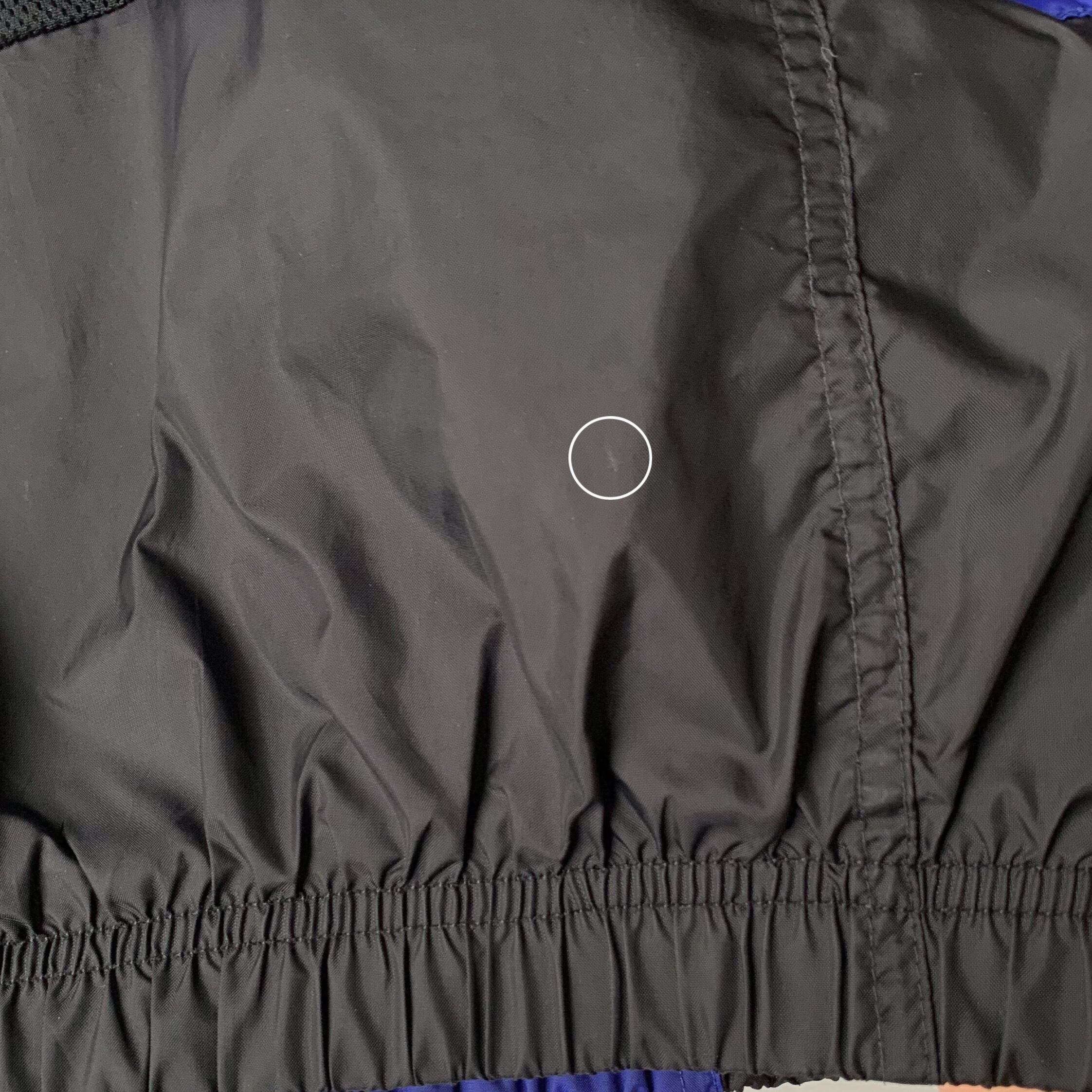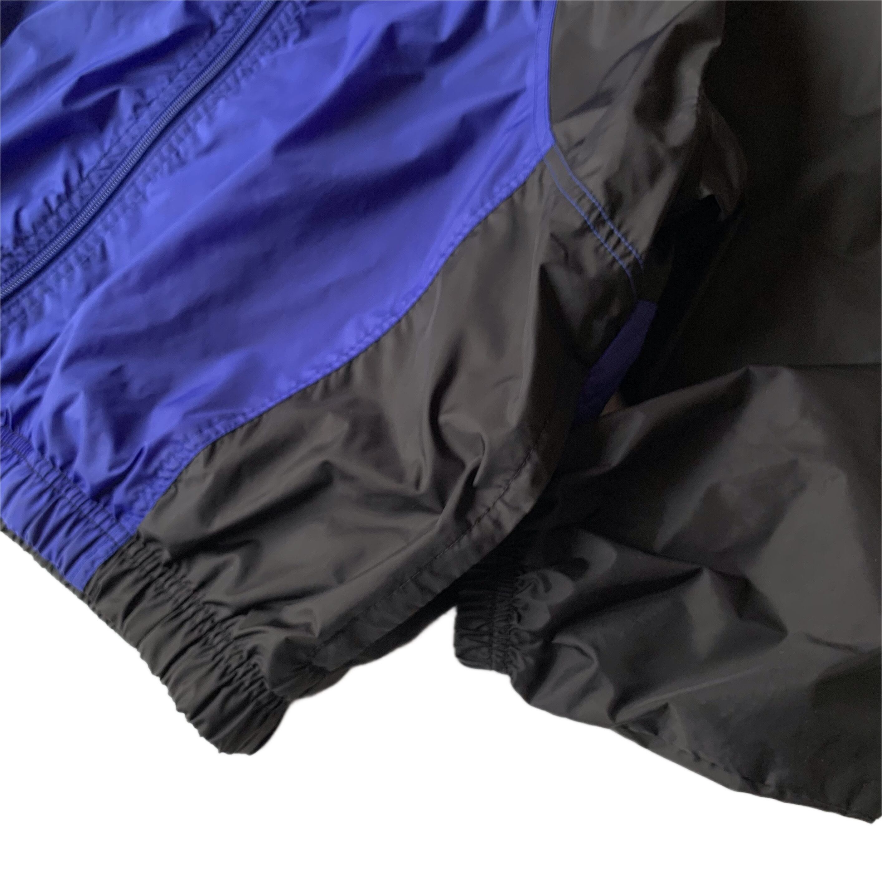 ナイロンシェルで、裏地にメッシュがはられ通気性は抜群です。ジッパー開閉のウォームアップポケットもございます。袖や裾はリブ仕様。