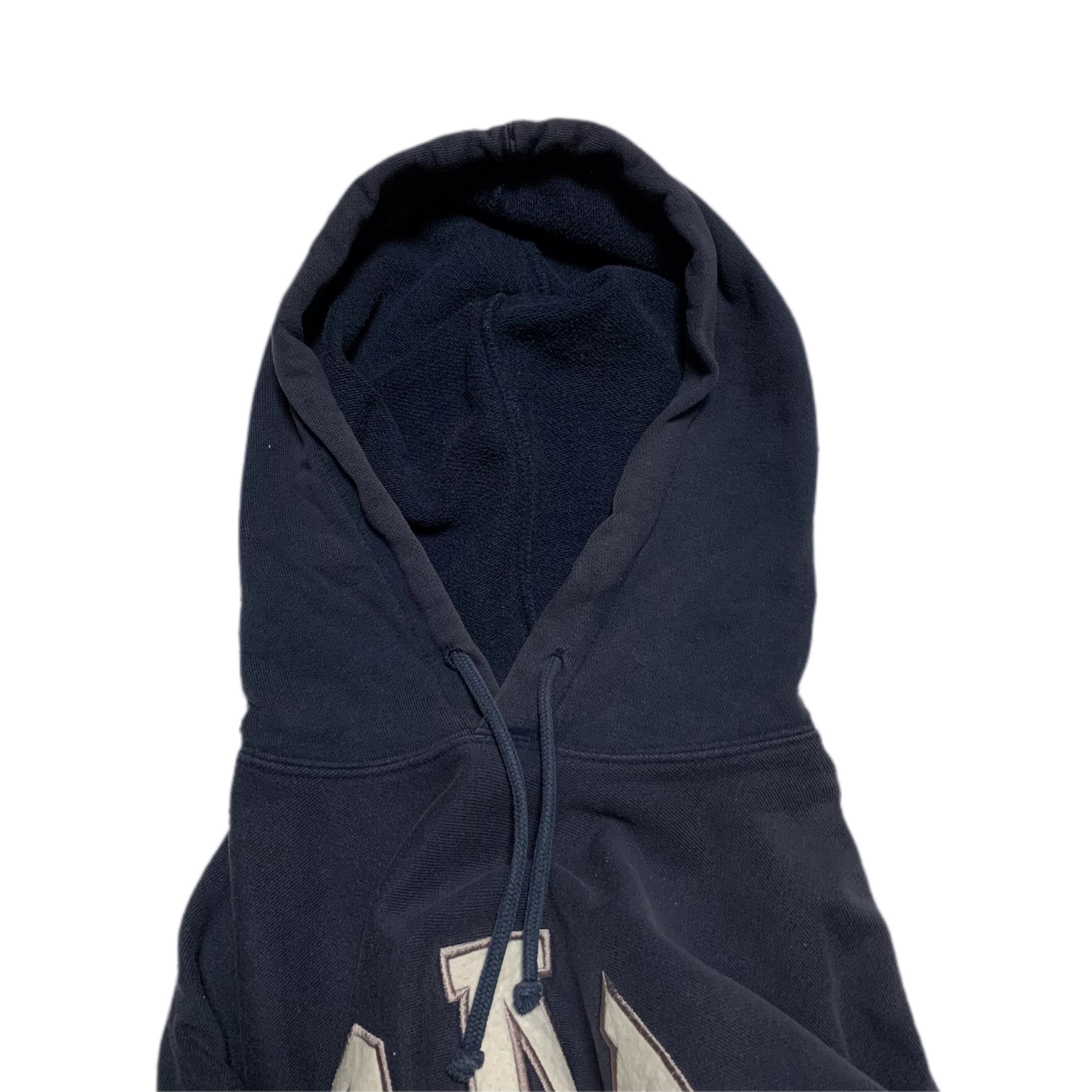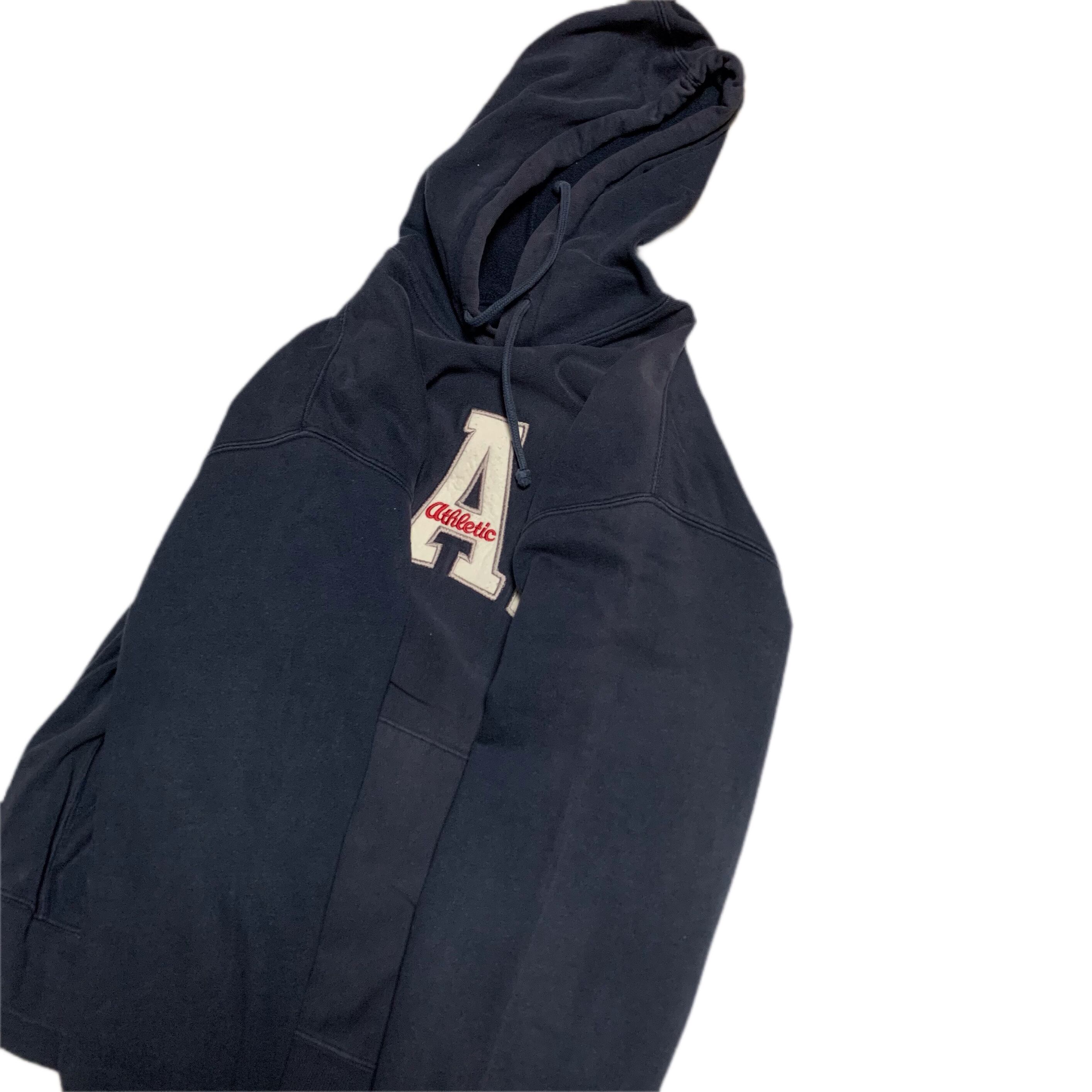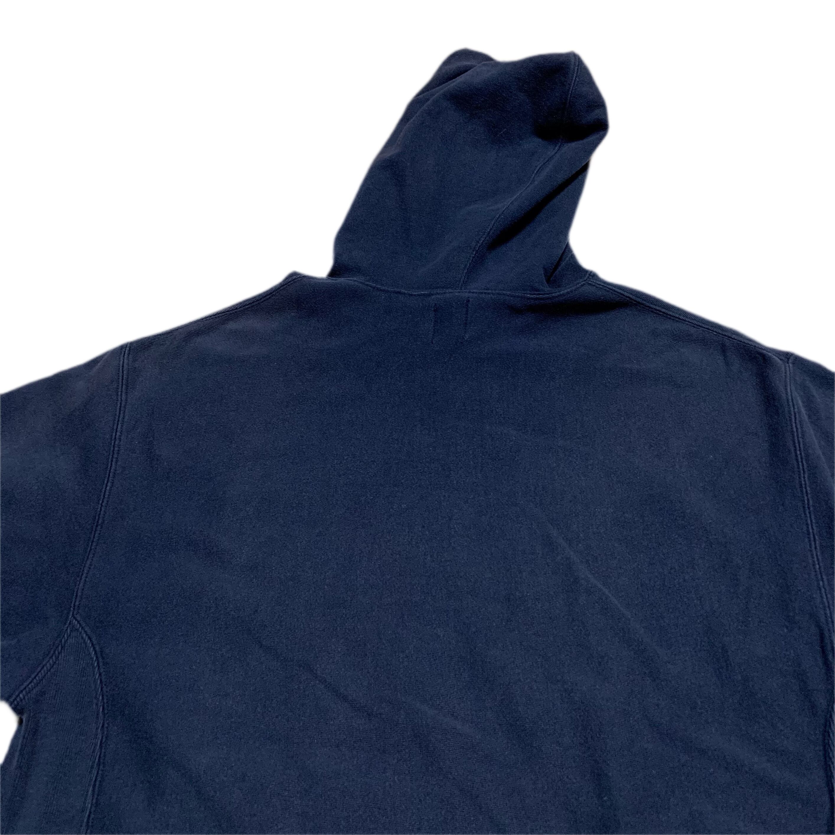 色あせて雰囲気のあるネイビーカラーボディ。サイズ表記Sですが実寸L程度ございますのでユニセックスで着用可能です。
