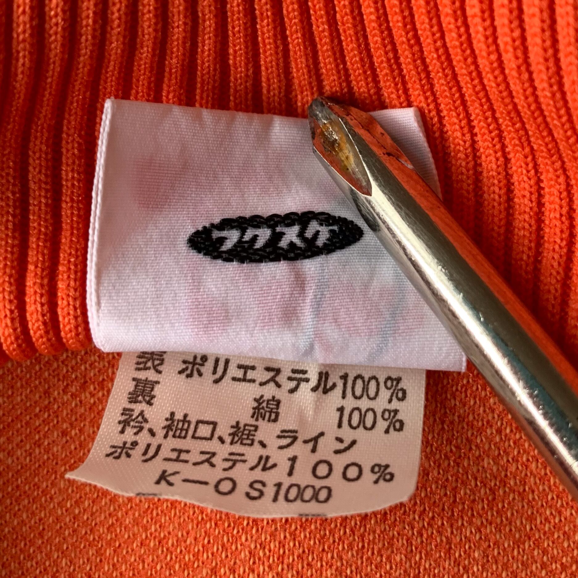 発色の良いオレンジカラーボディに白×青×緑のラインが入ったデザインです。