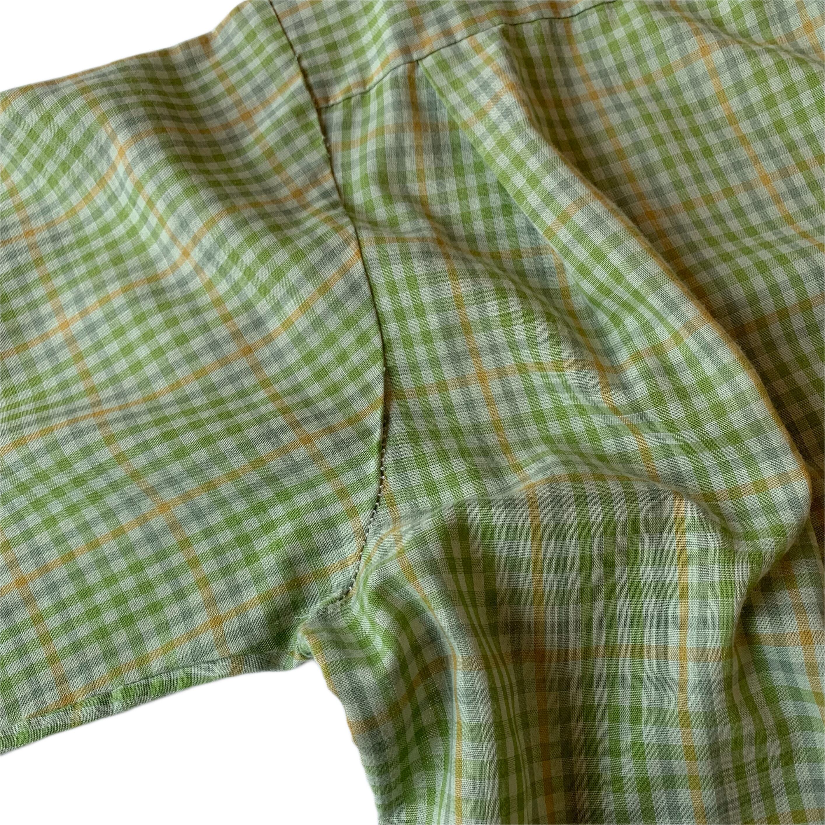 おそらくポリエステル配合多めで、サラッとした生地感の1枚です。
