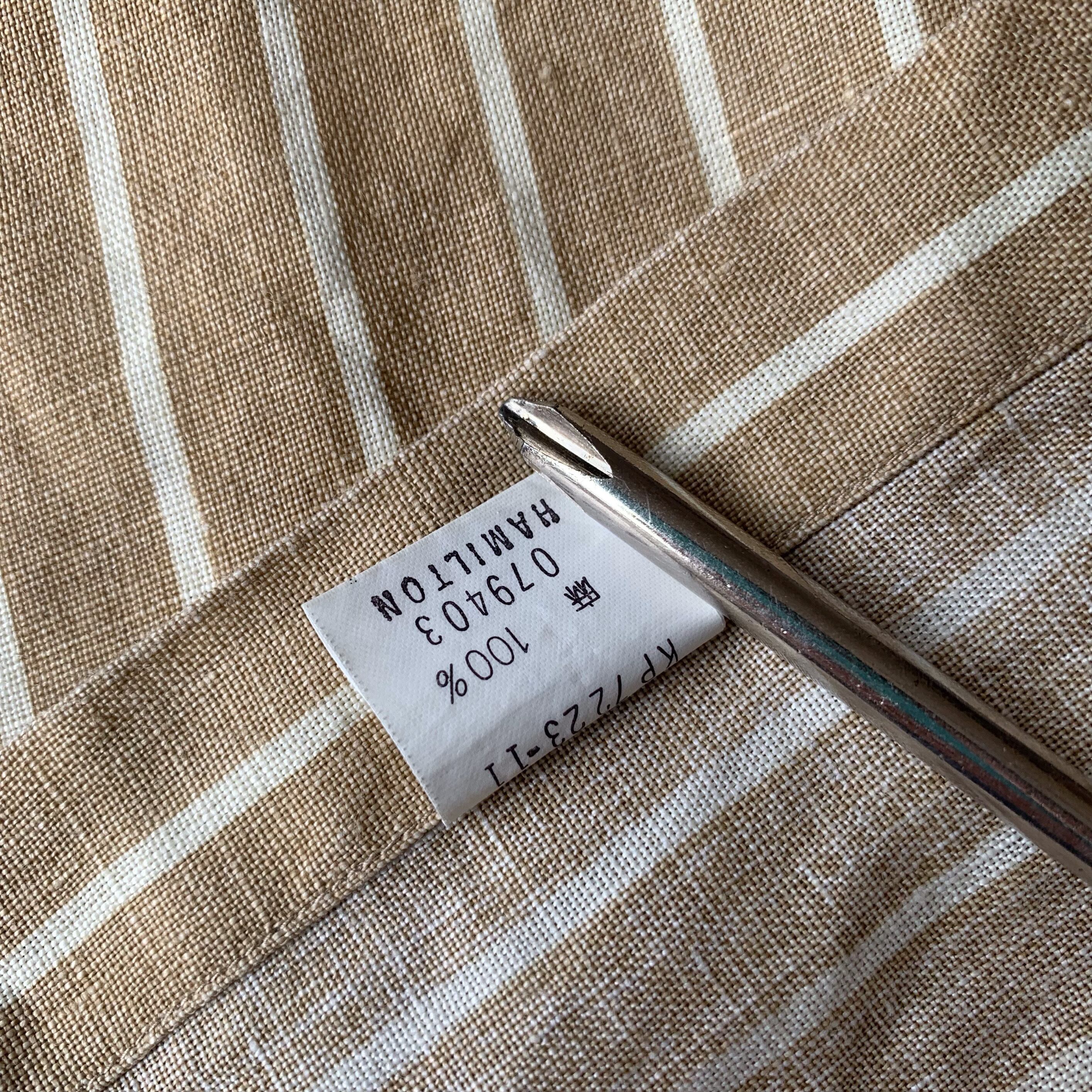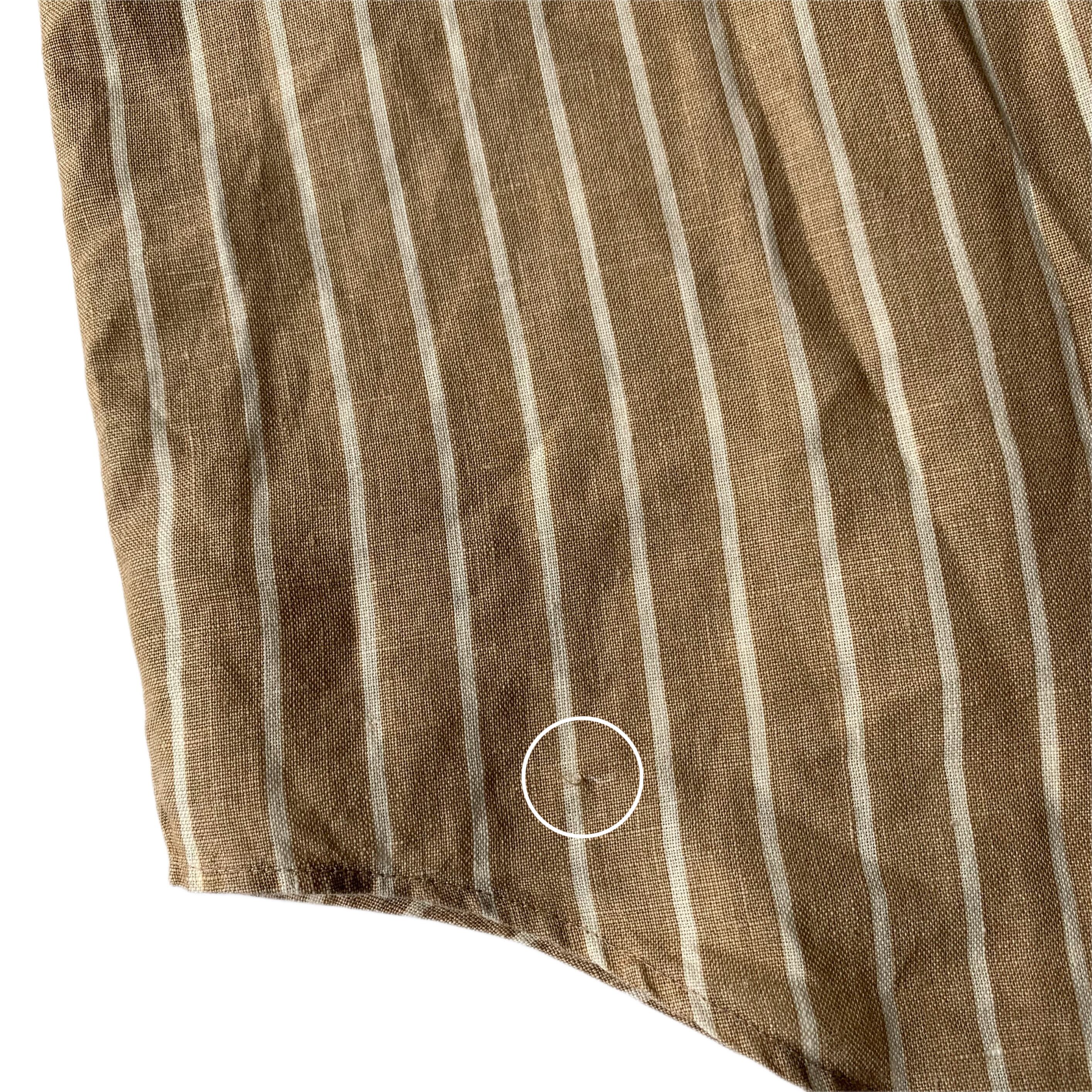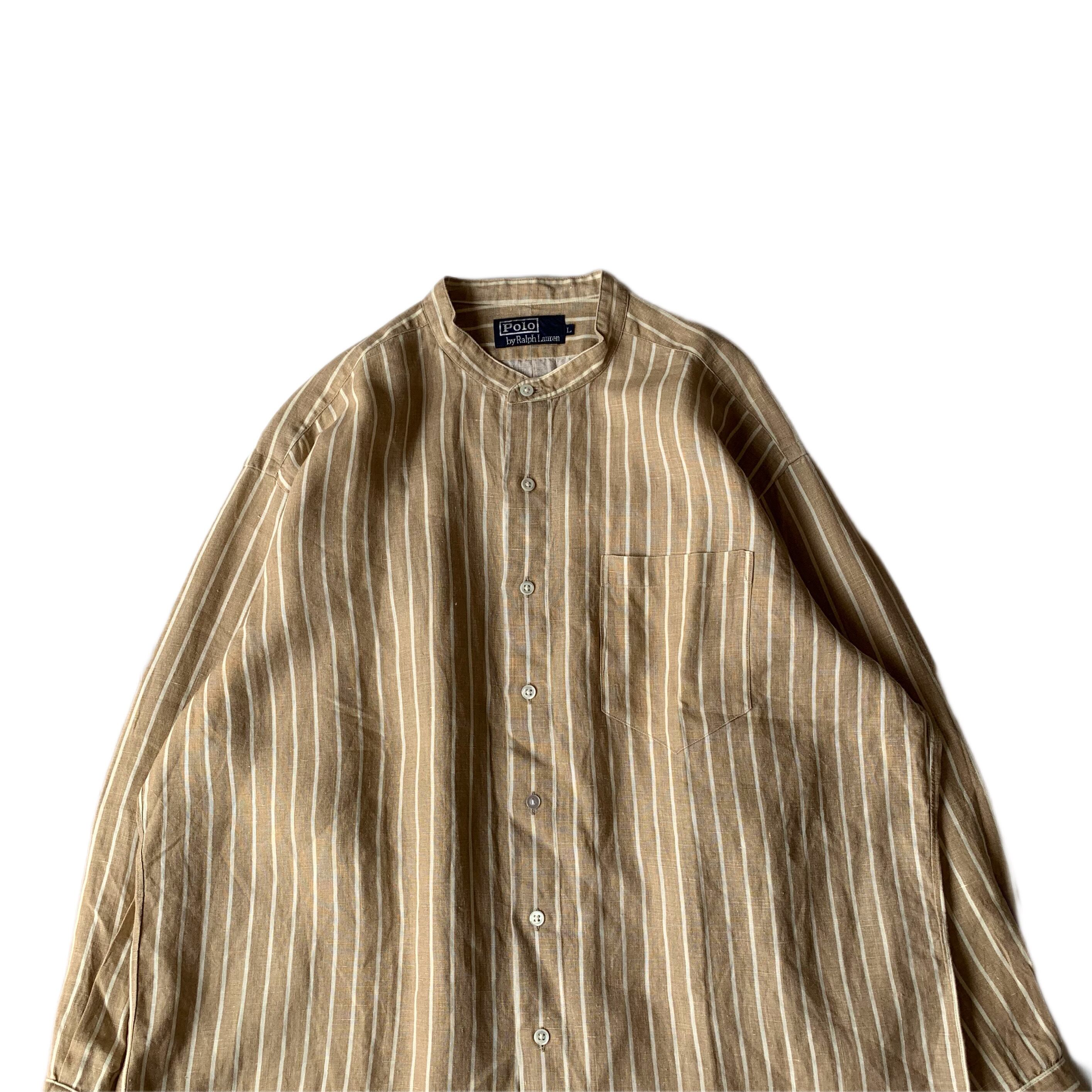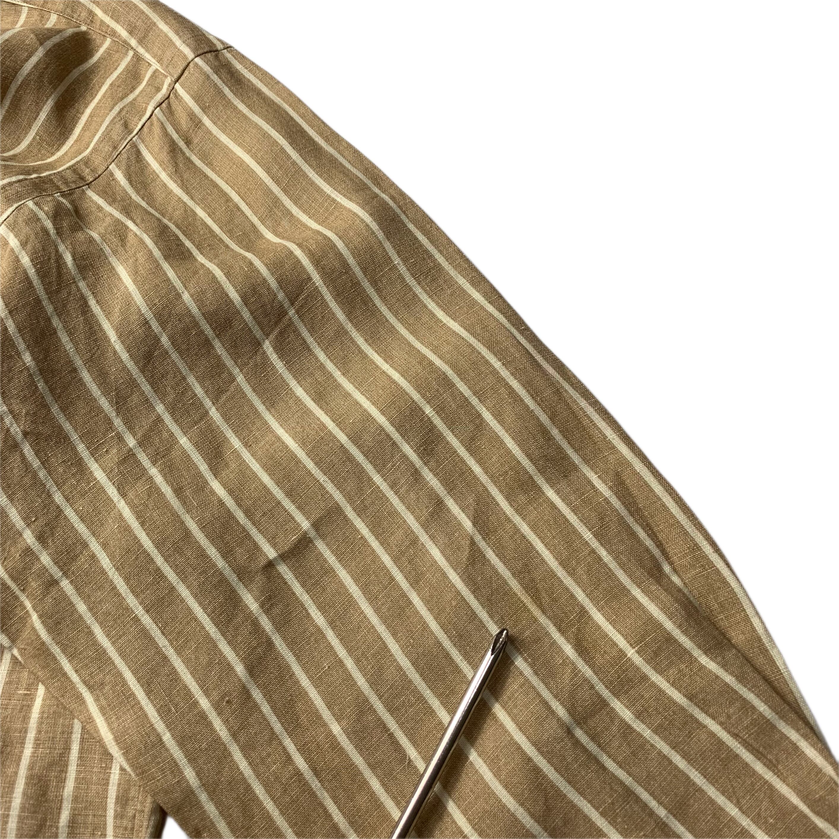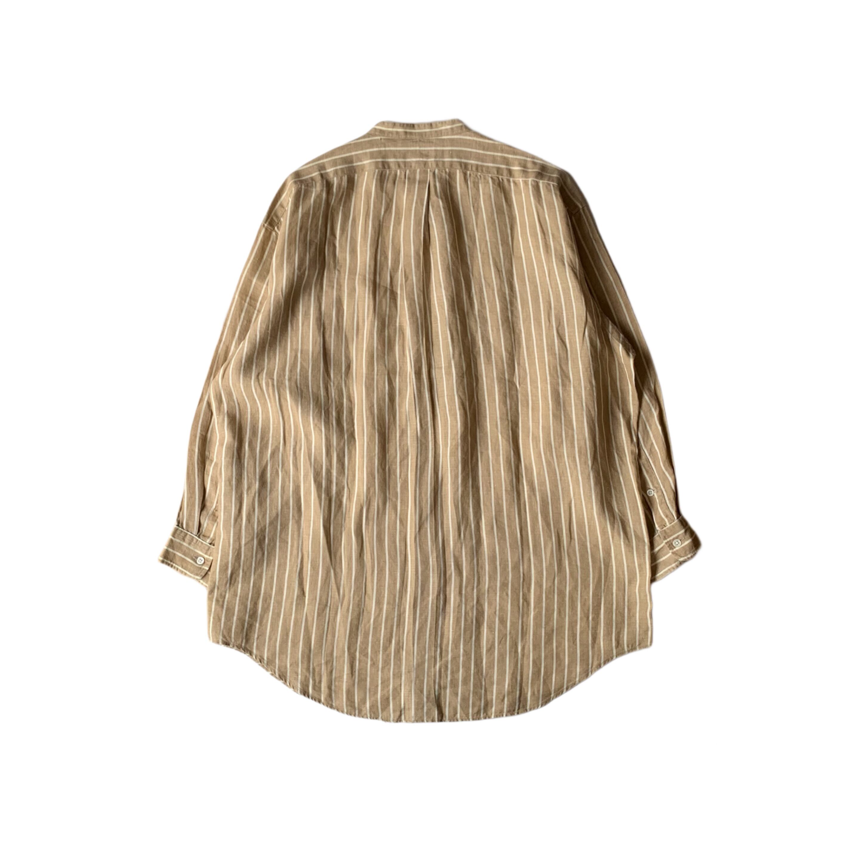 真夏にも対応出来るリネン×ノーカラー。ベージュカラーベースの淡いストライプ柄。