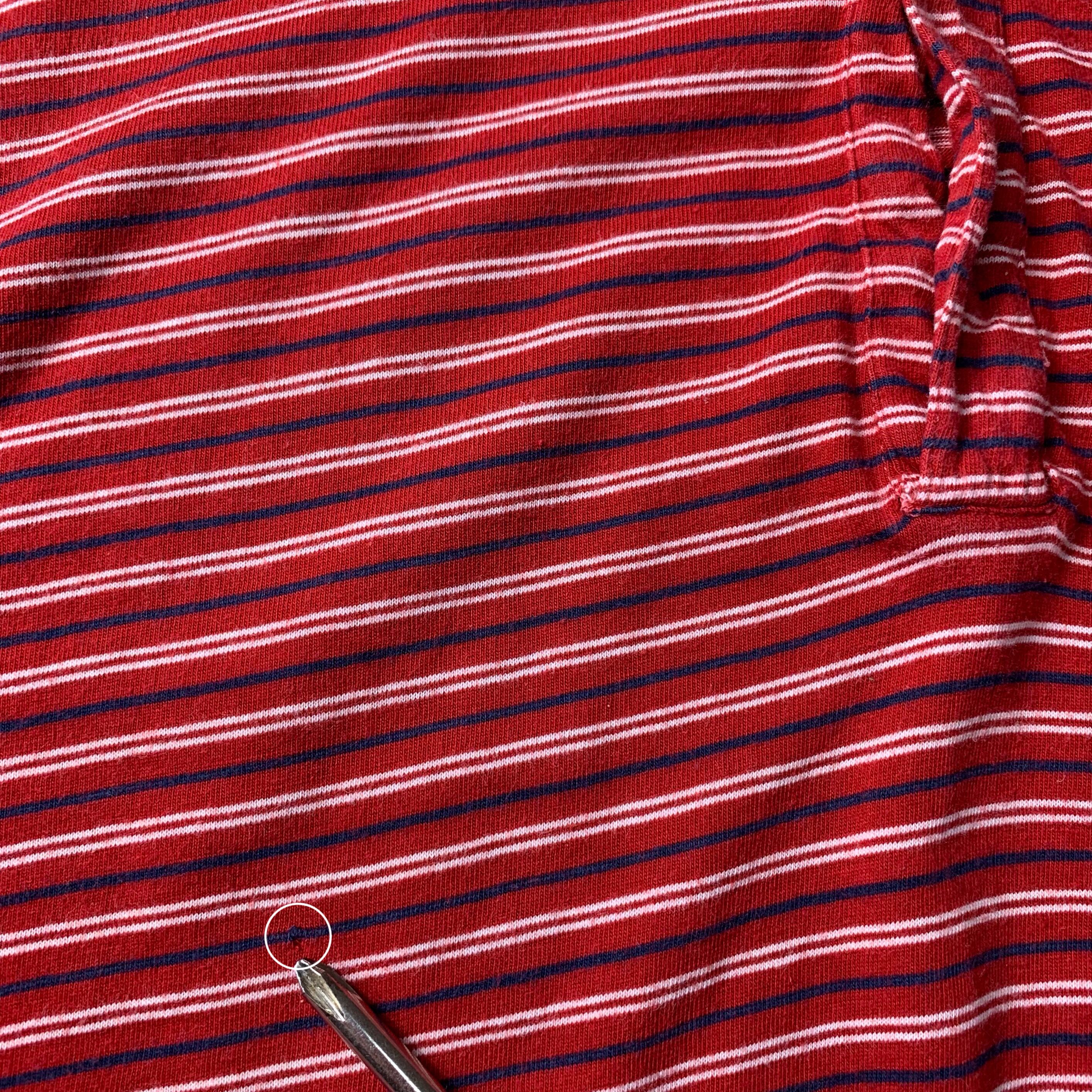 左胸にポケットの付いた、ボーダー柄のポロ。