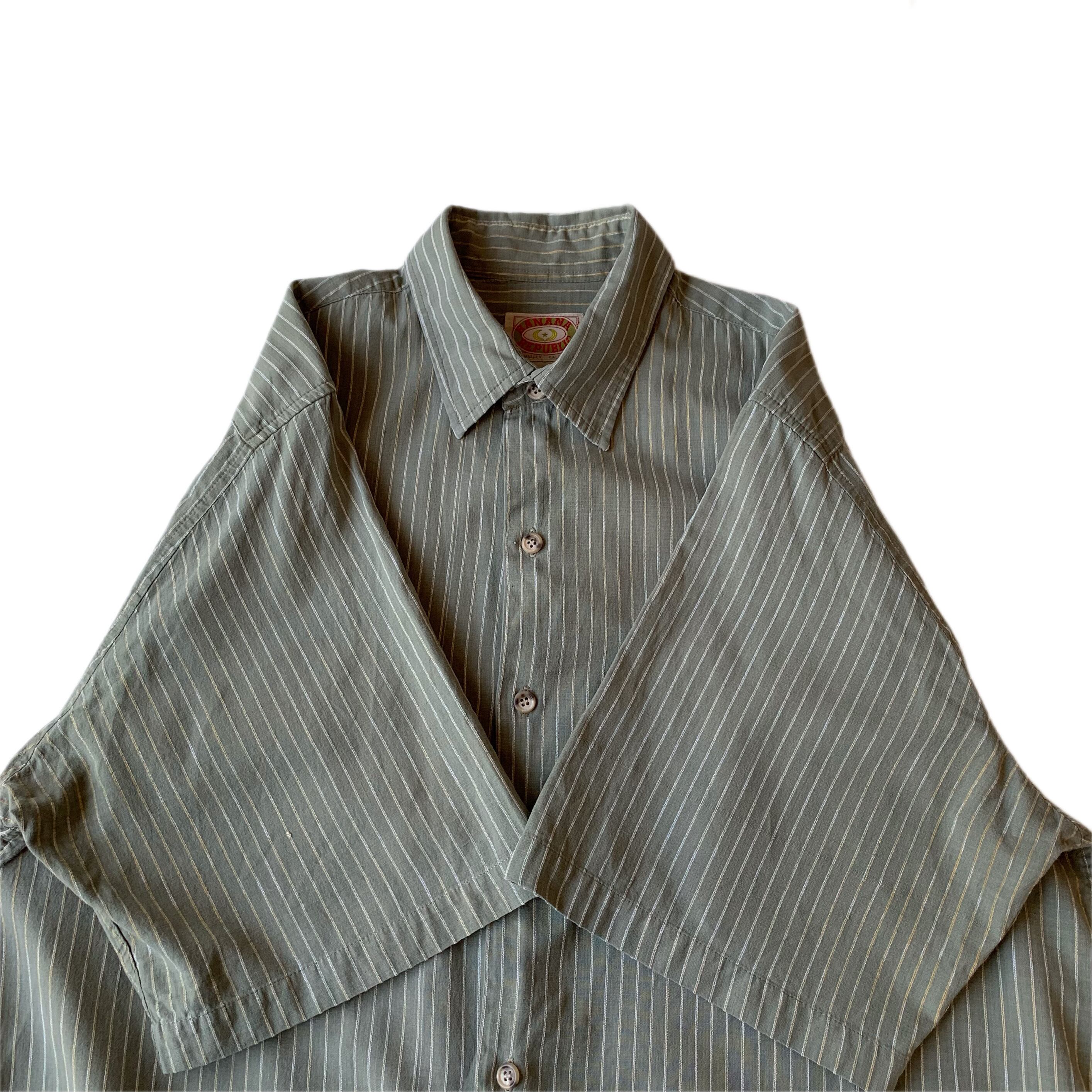 写真では伝わりづらいですが、ストライプが光に当たると黄色に見えます。光の当たり方によって表情が変わり、シンプルながら他とは違うバナリパらしい1枚です。