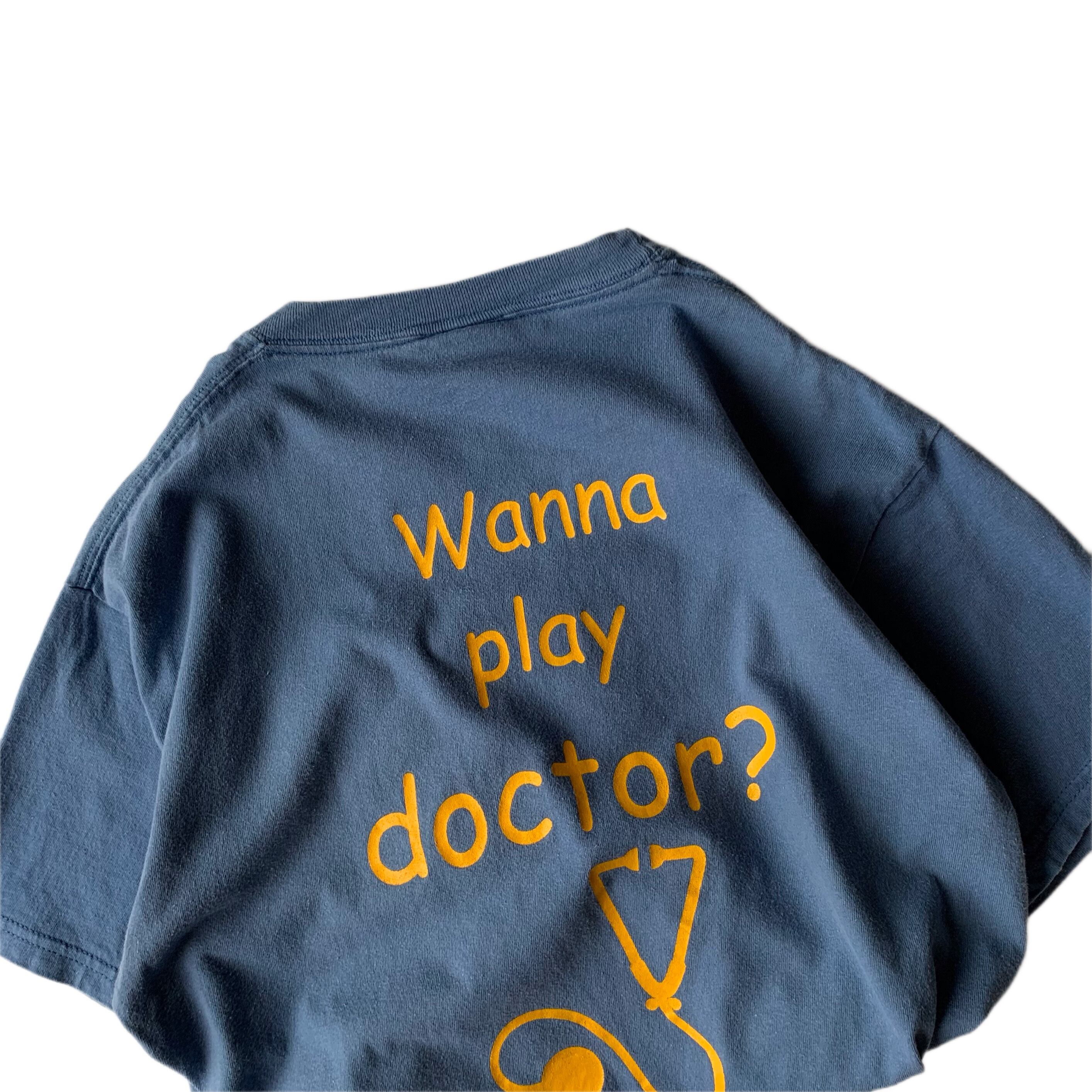 “Wanna play doctor?” “医者のまねをしてみない?”というメッセージと聴診器のイラストが良いですね。