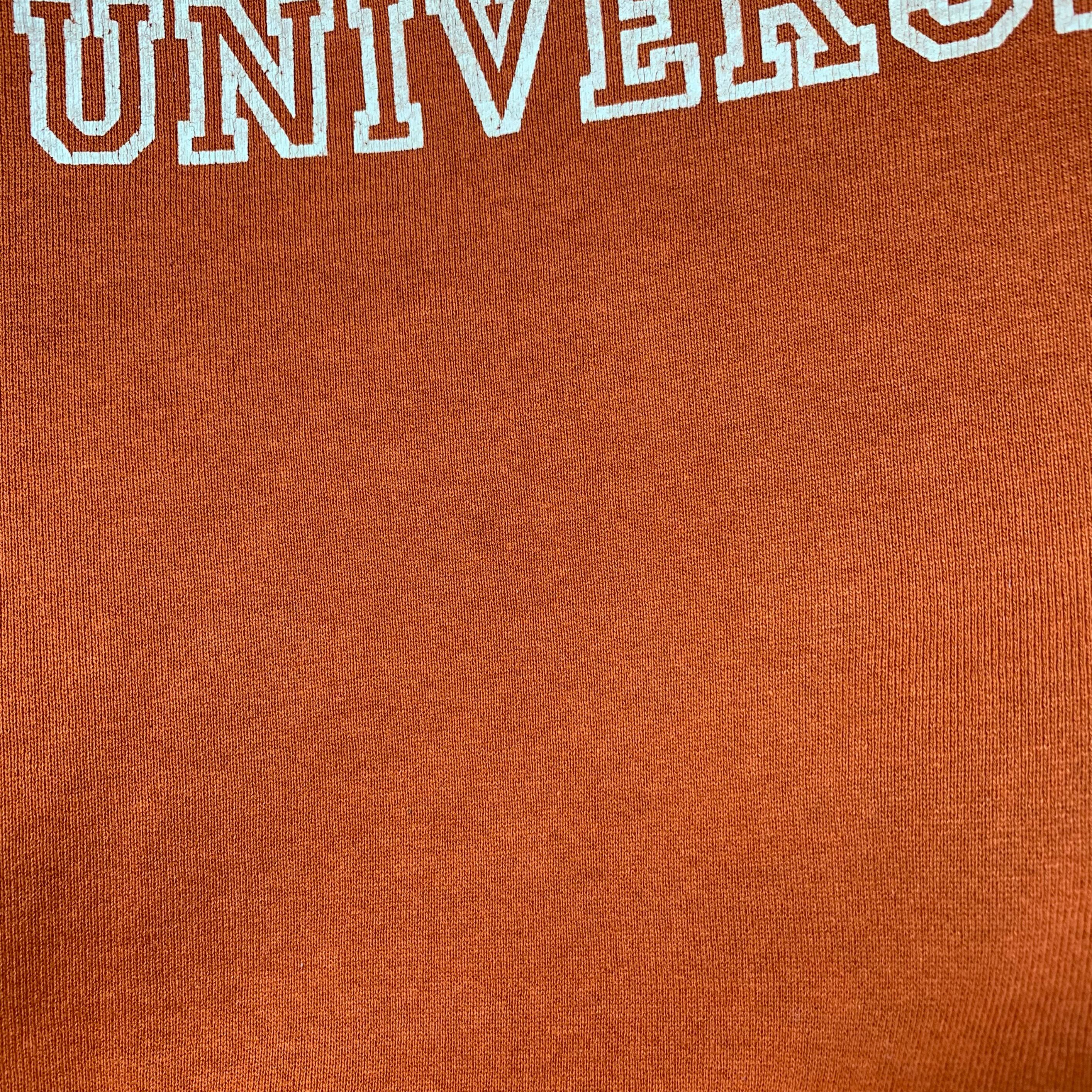 くすんだオレンジ色、レンガ色のあまり見かけないカラーリング。プリントのノリも良いです。