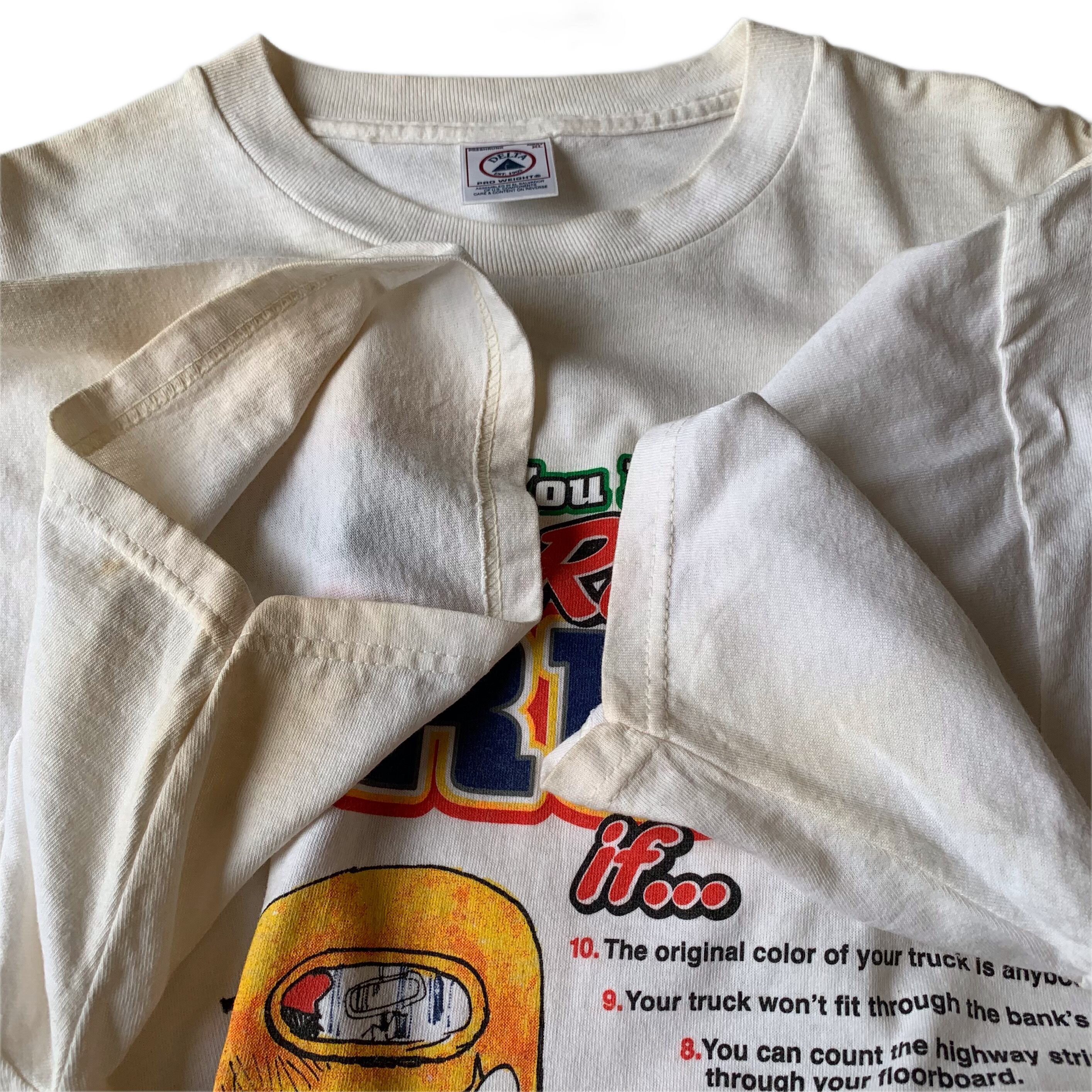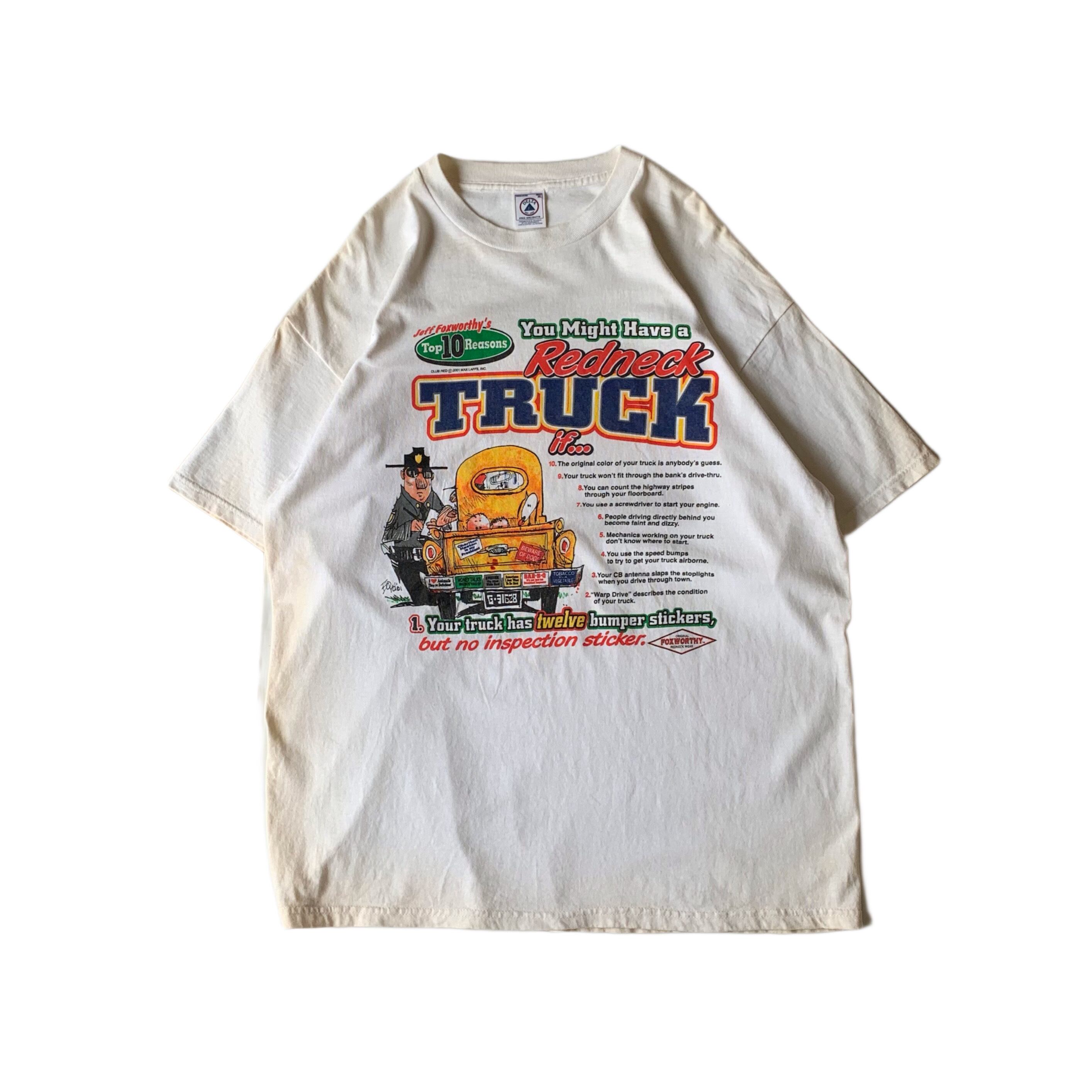 アメリカのコメディアン『Jeff Foxworthy』が1989年に制作した本『You Might Be a Redneck If ..』.のイラストがプリントされたTシャツ