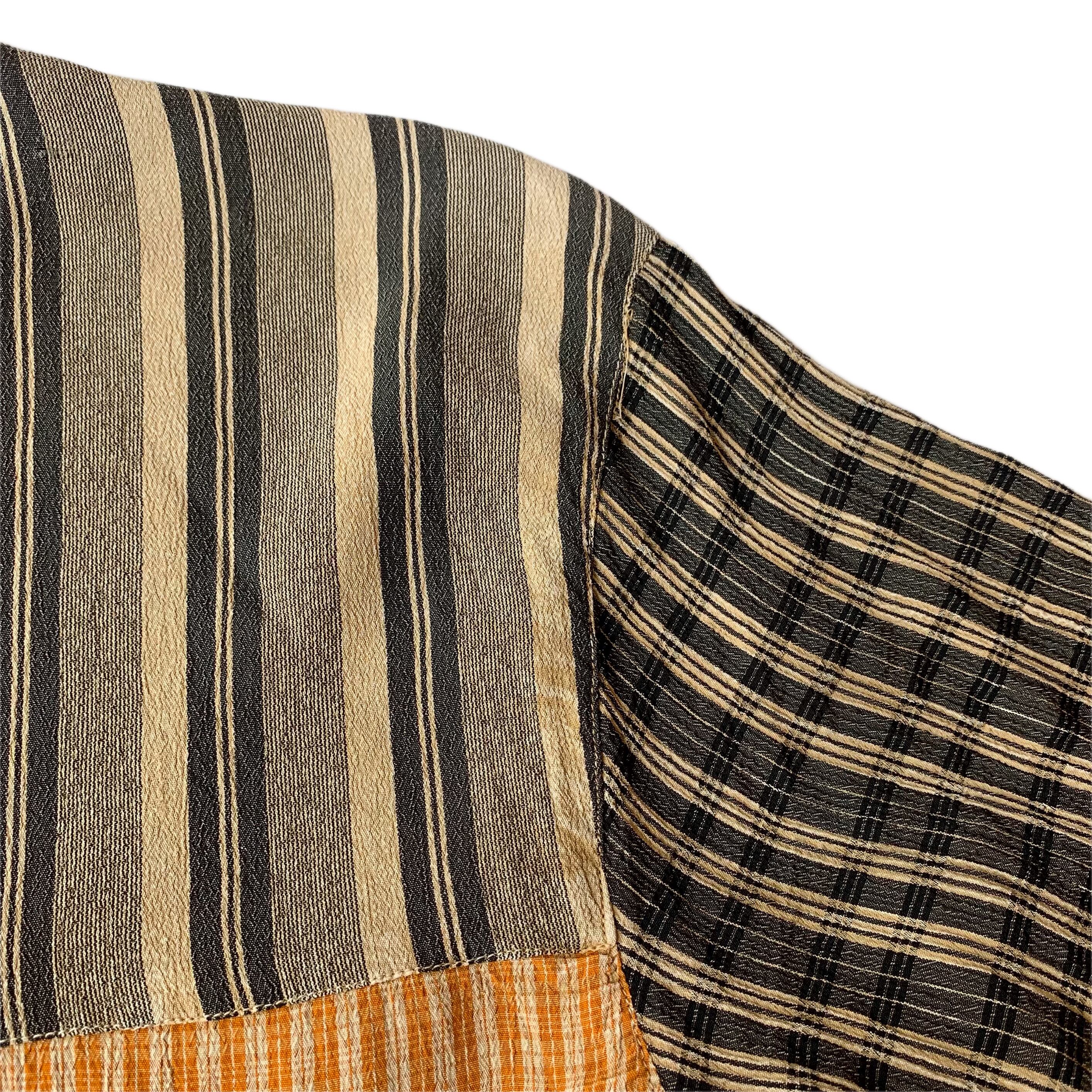 レーヨン100%のテロっとした肌触り。様々なカラーリングのチェック模様が配置されたクレイジーパターン。