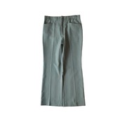 ポリエステル素材のフレアシルエットのスラックス。フロントフックはTALON、ジッパーはYKKが付いております。