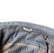 小ぶりな襟。左胸にはポケットがございますが、蓋が横ストライプ柄になっているのも面白いですね。
