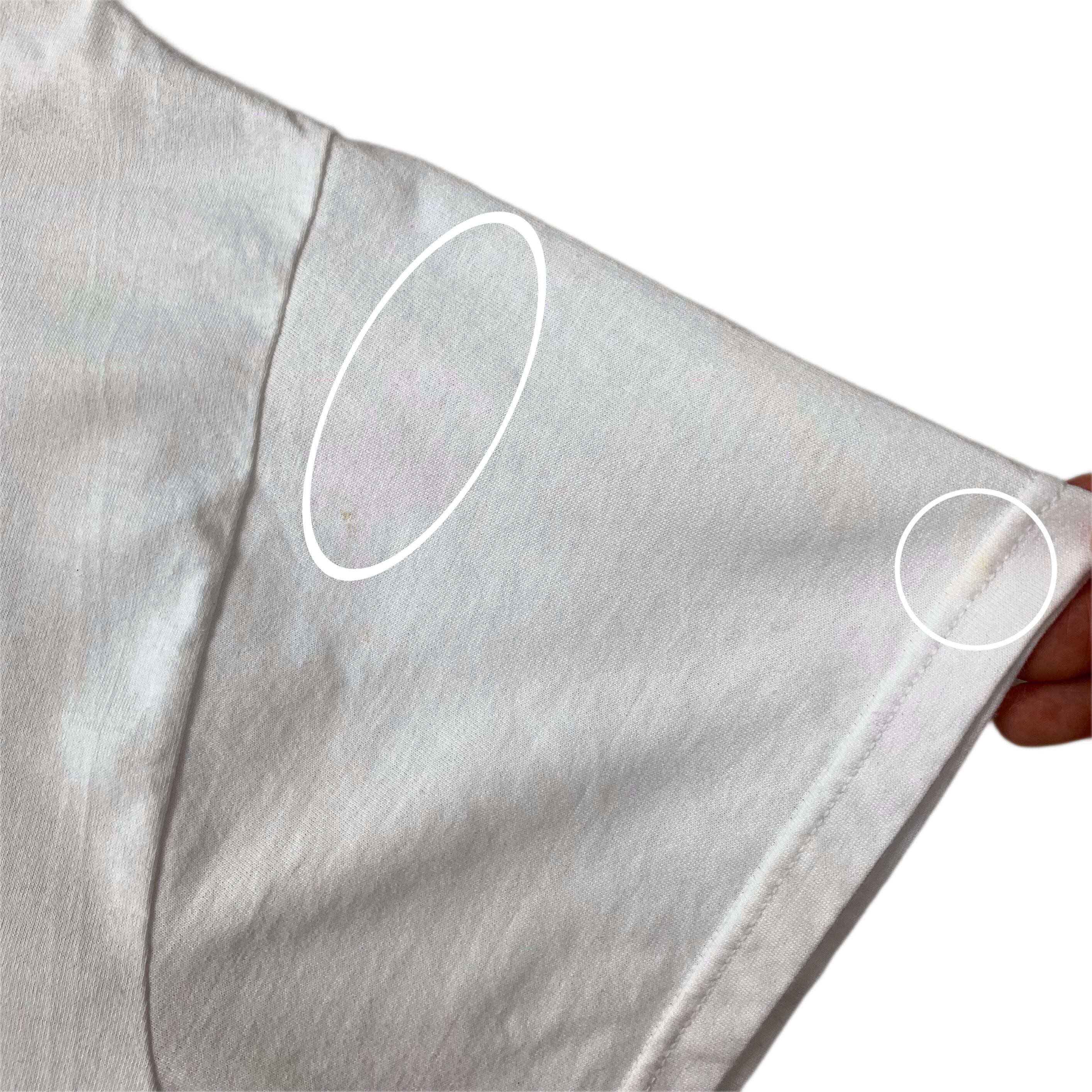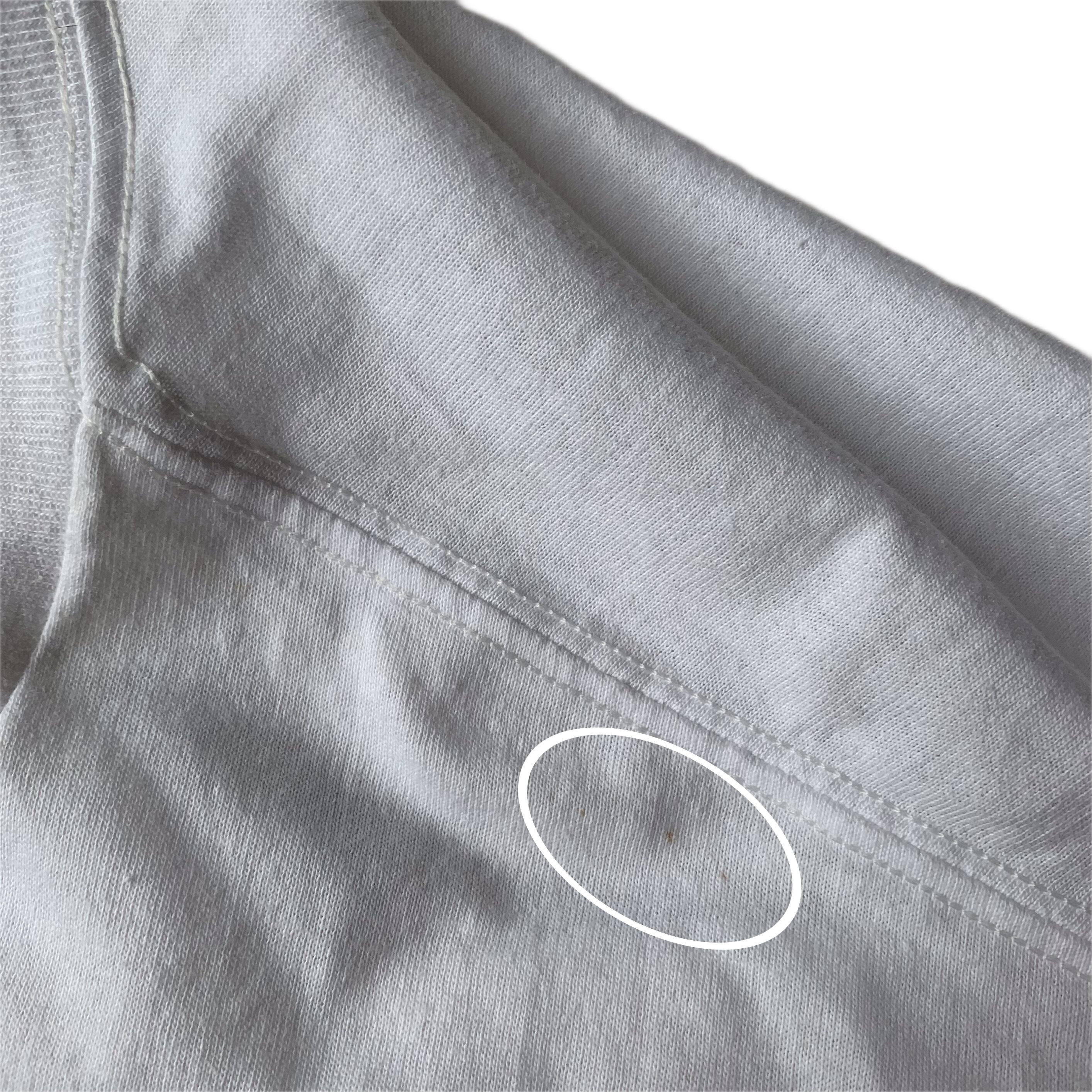 ・肩、前身頃 両袖、後身頃 裾上、首リブなど所々にシミがございます。