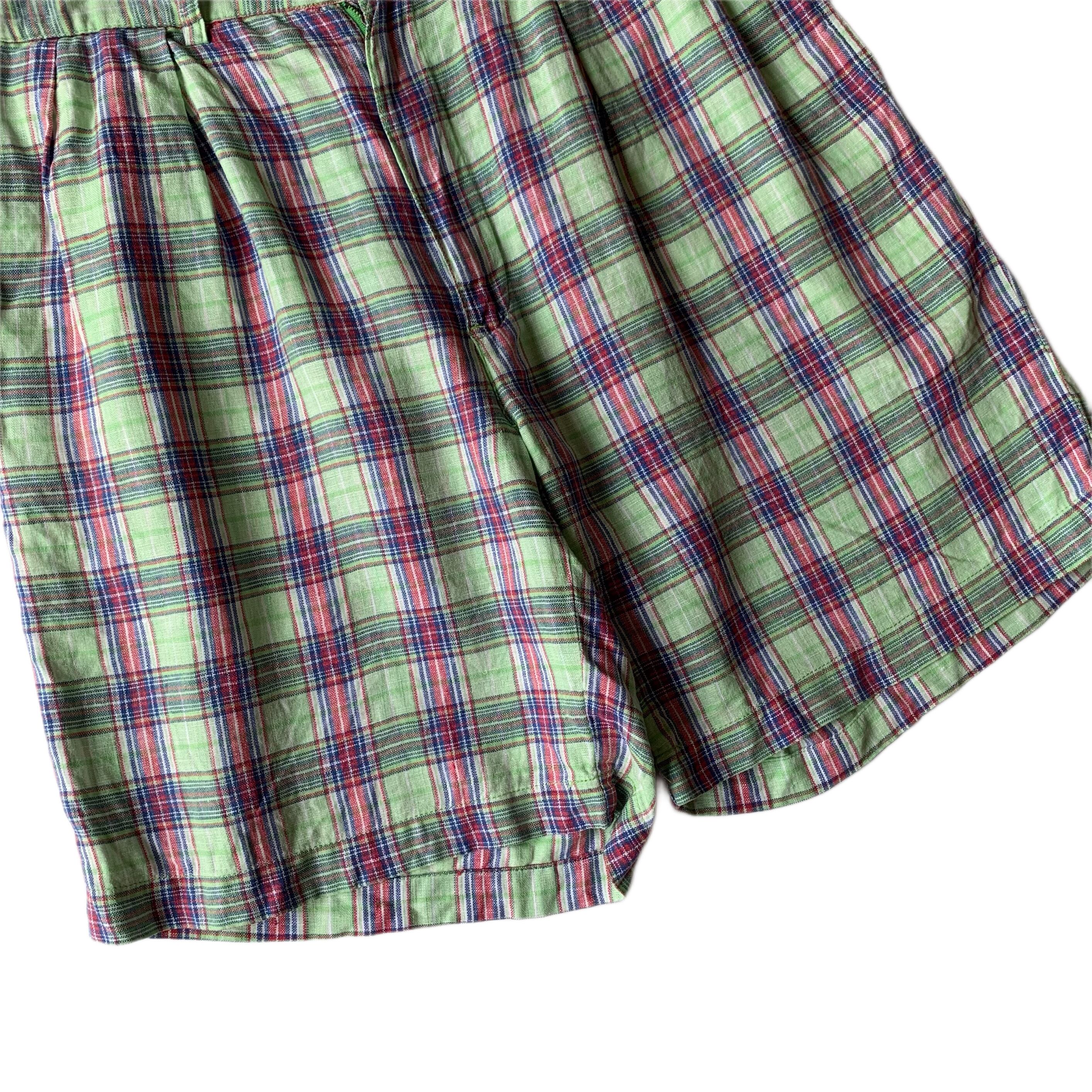 ライトグリーンベースのチェック柄で、白シャツやキューバシャツなどと合わせたら良いかと。おすすめのグッドレギュラーですので、是非この機会にご検討ください。