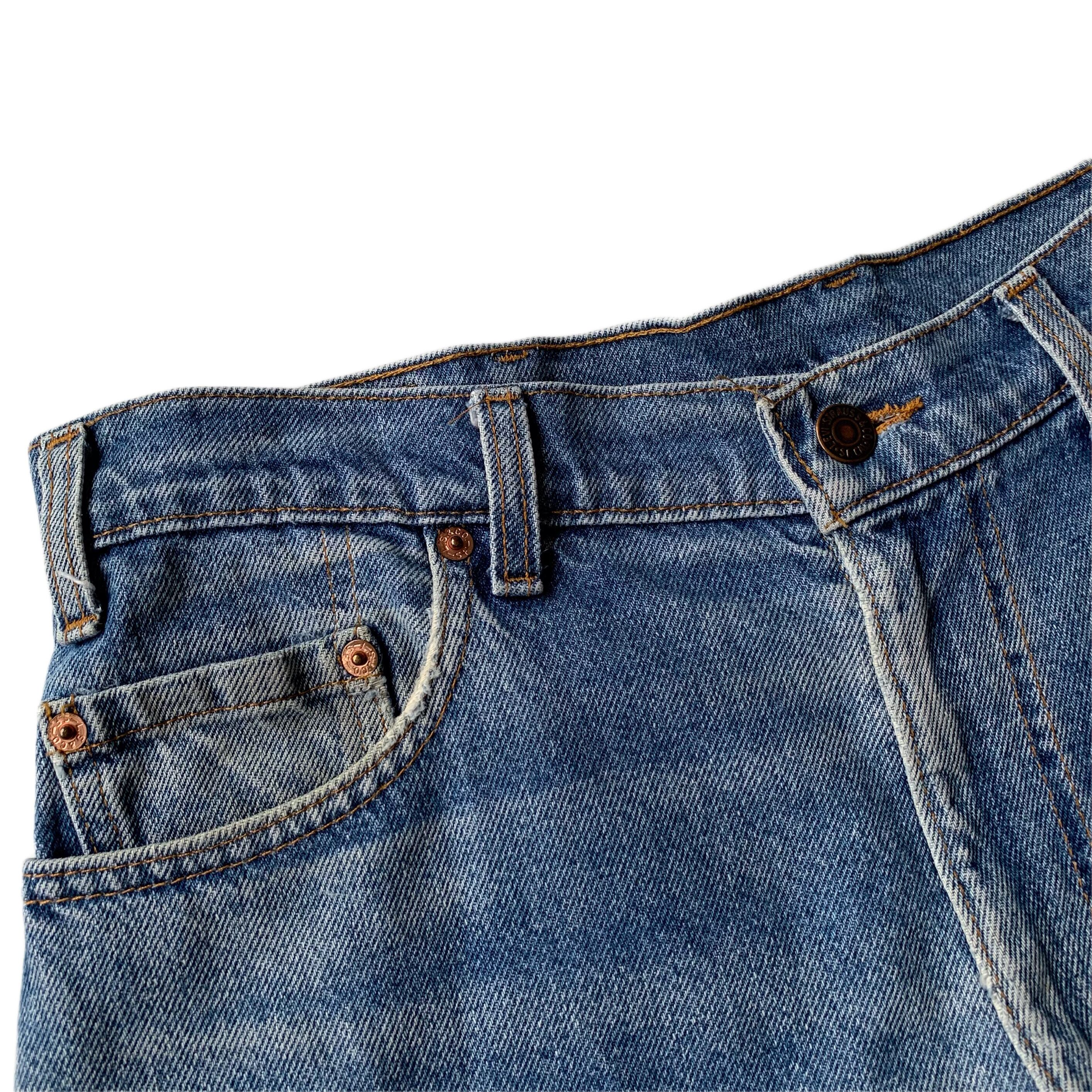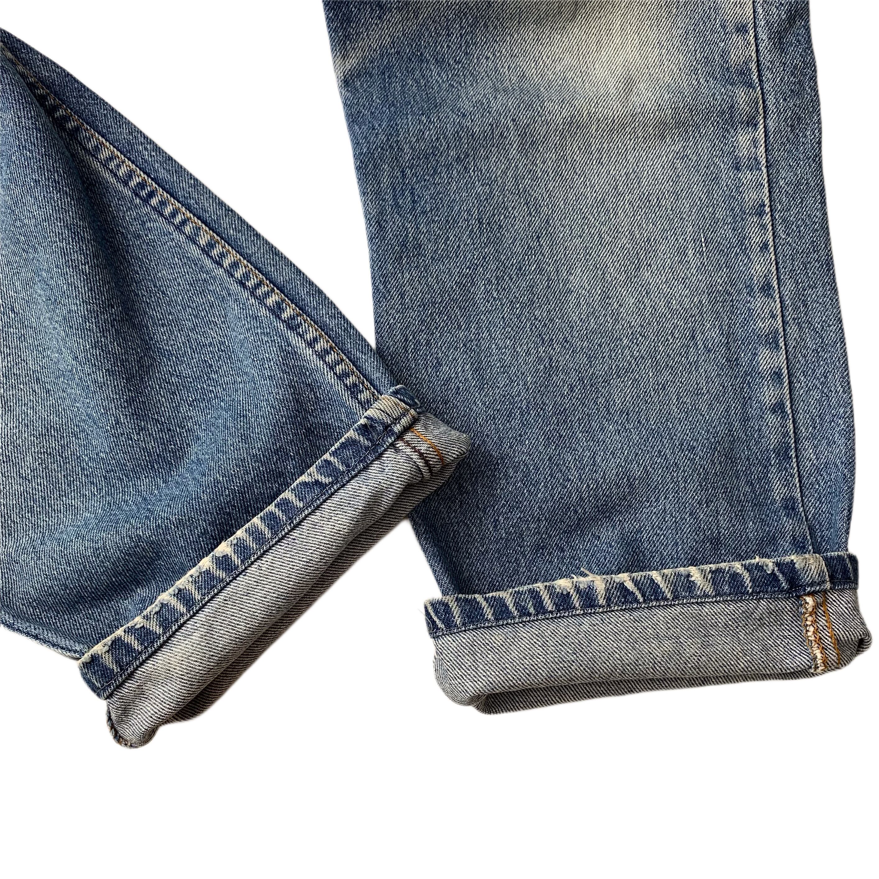 縮みや丈詰めもあってか実寸はW33L30程度となっております。
