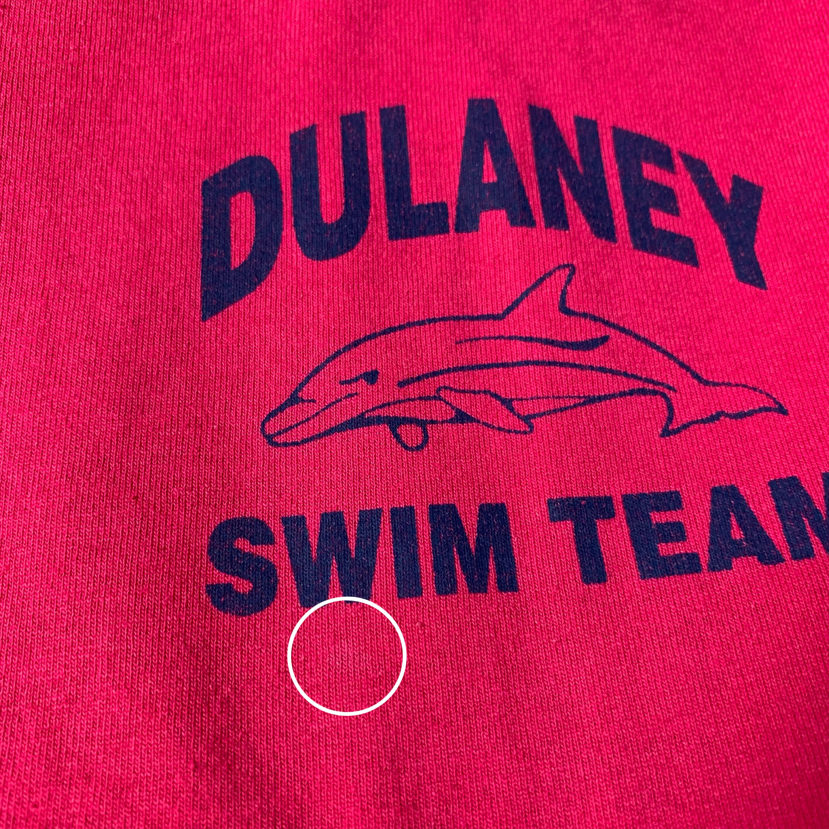 “DULANEY SWIM TEAM”は米国メリーランド州にある18歳以下の水泳チームです。チームの象徴であるドルフィンが左胸にプリントされた可愛いらしいデザインです。