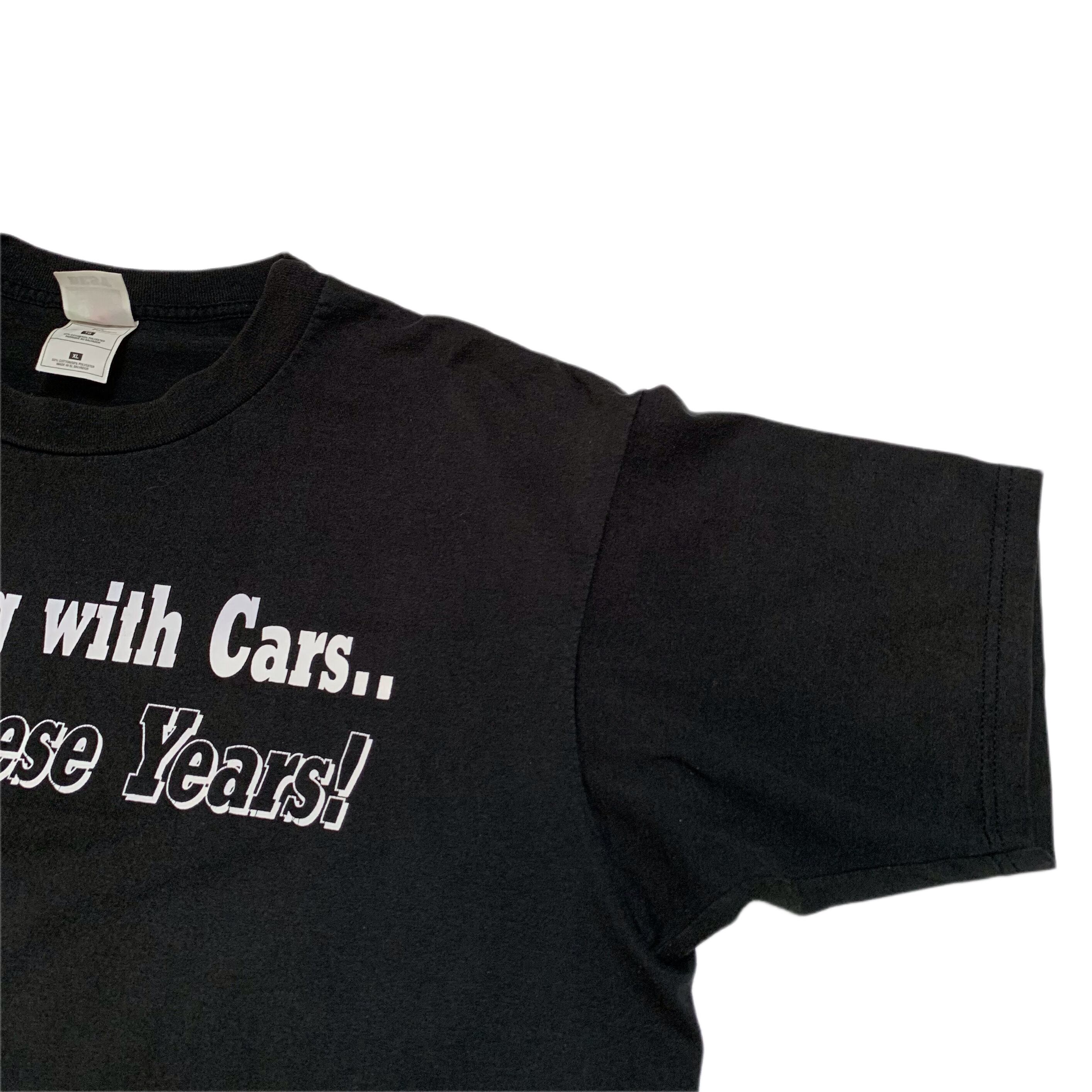 “Still Playing with Cars… After All these years!! (いつまで経っても車で遊んでいる!)”というメッセージがプリントされたTシャツ。