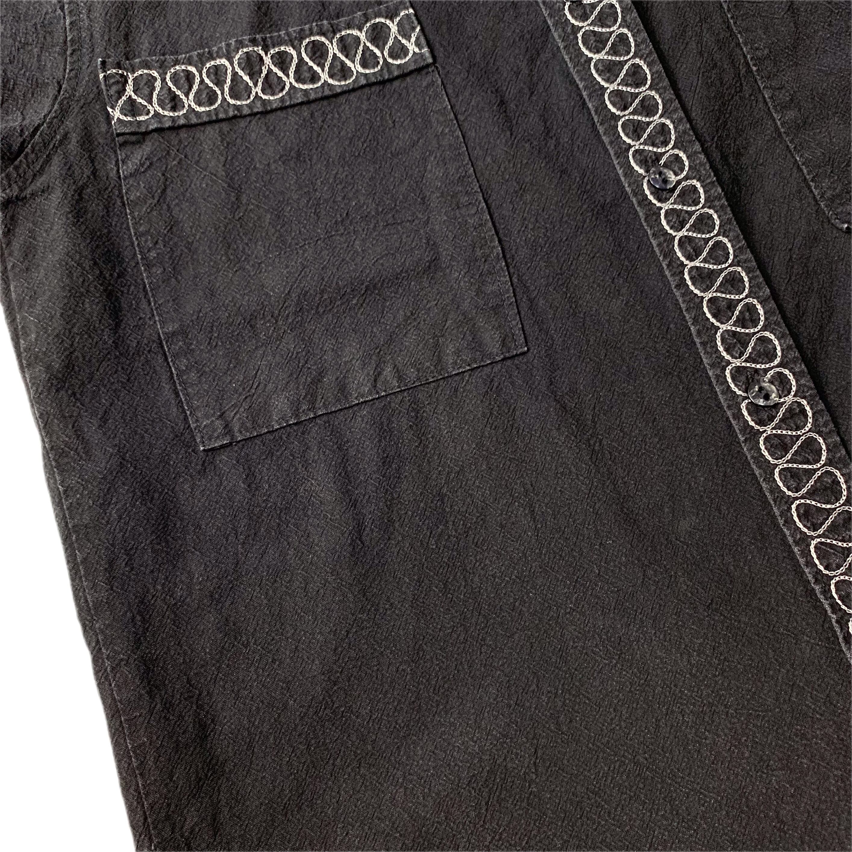 ノーカラーシャツ ブラック 刺繍