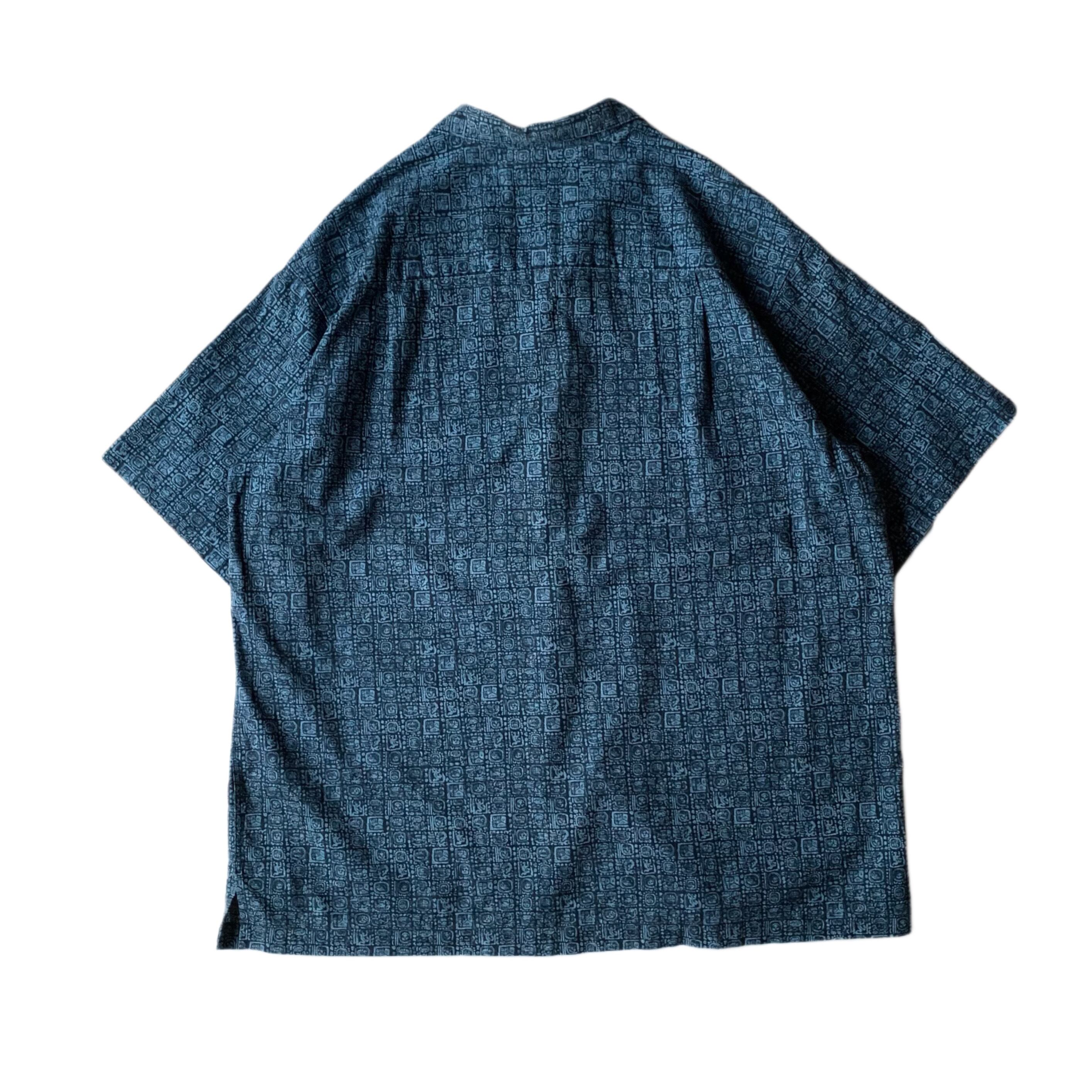落ち着いた使い勝手の良い総柄。襟はループ留オープンカラー仕様。