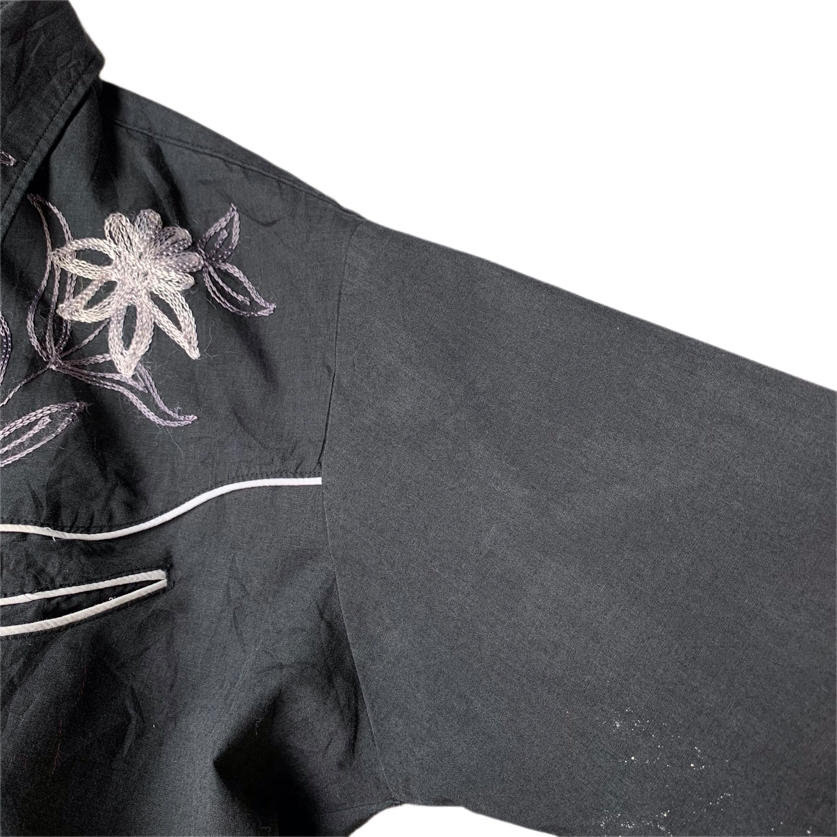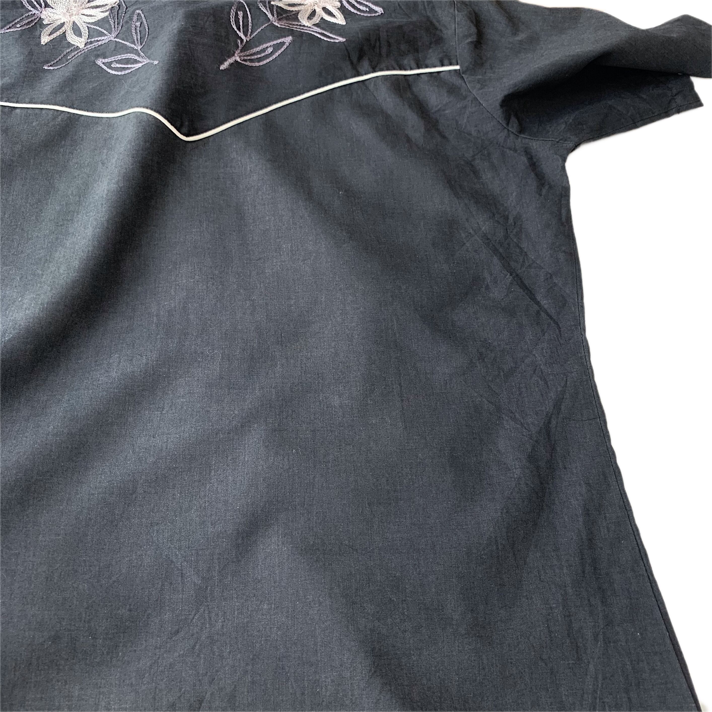 ユーロヴィンテージ ドイツ ウエスタンシャツ ブラック 刺繍 花柄