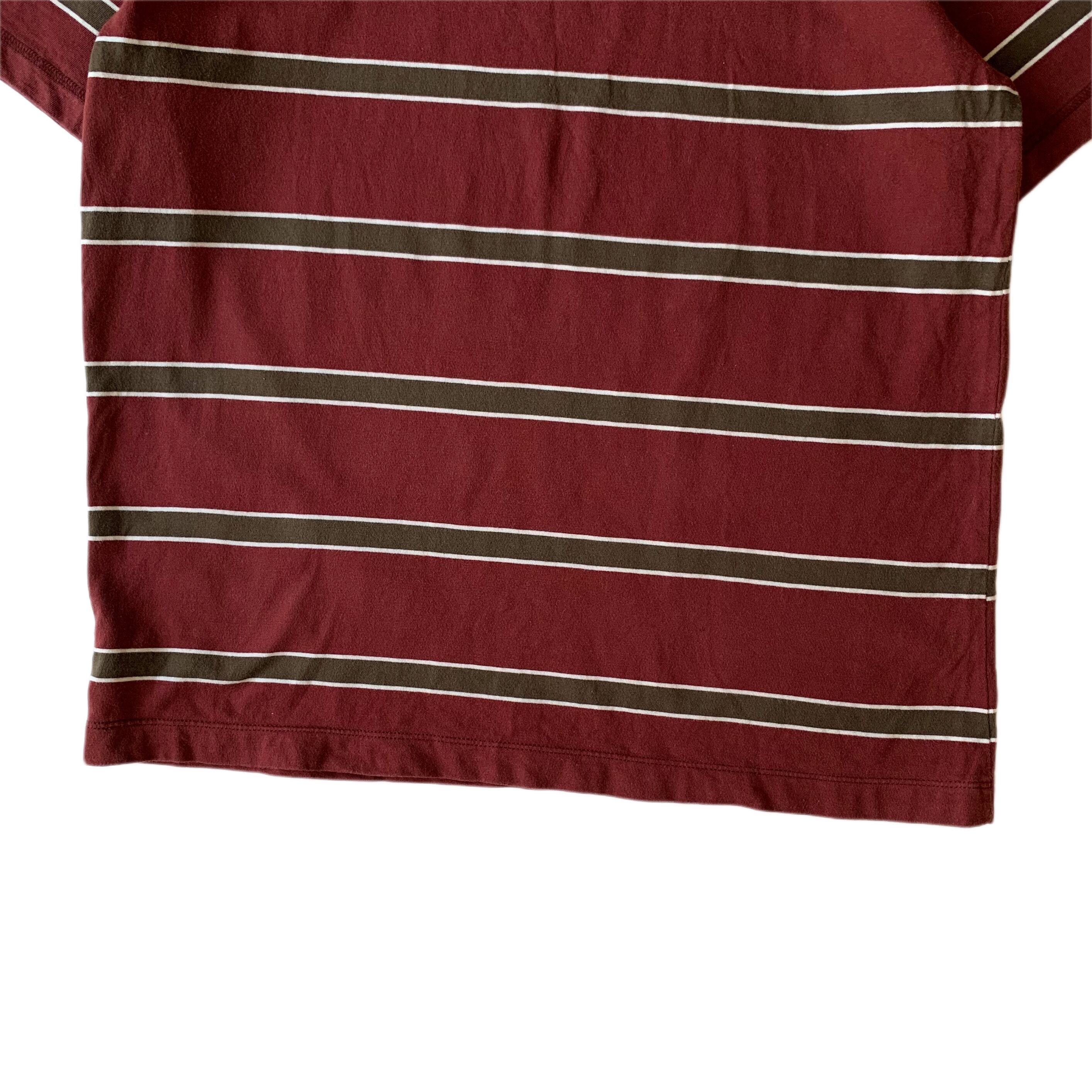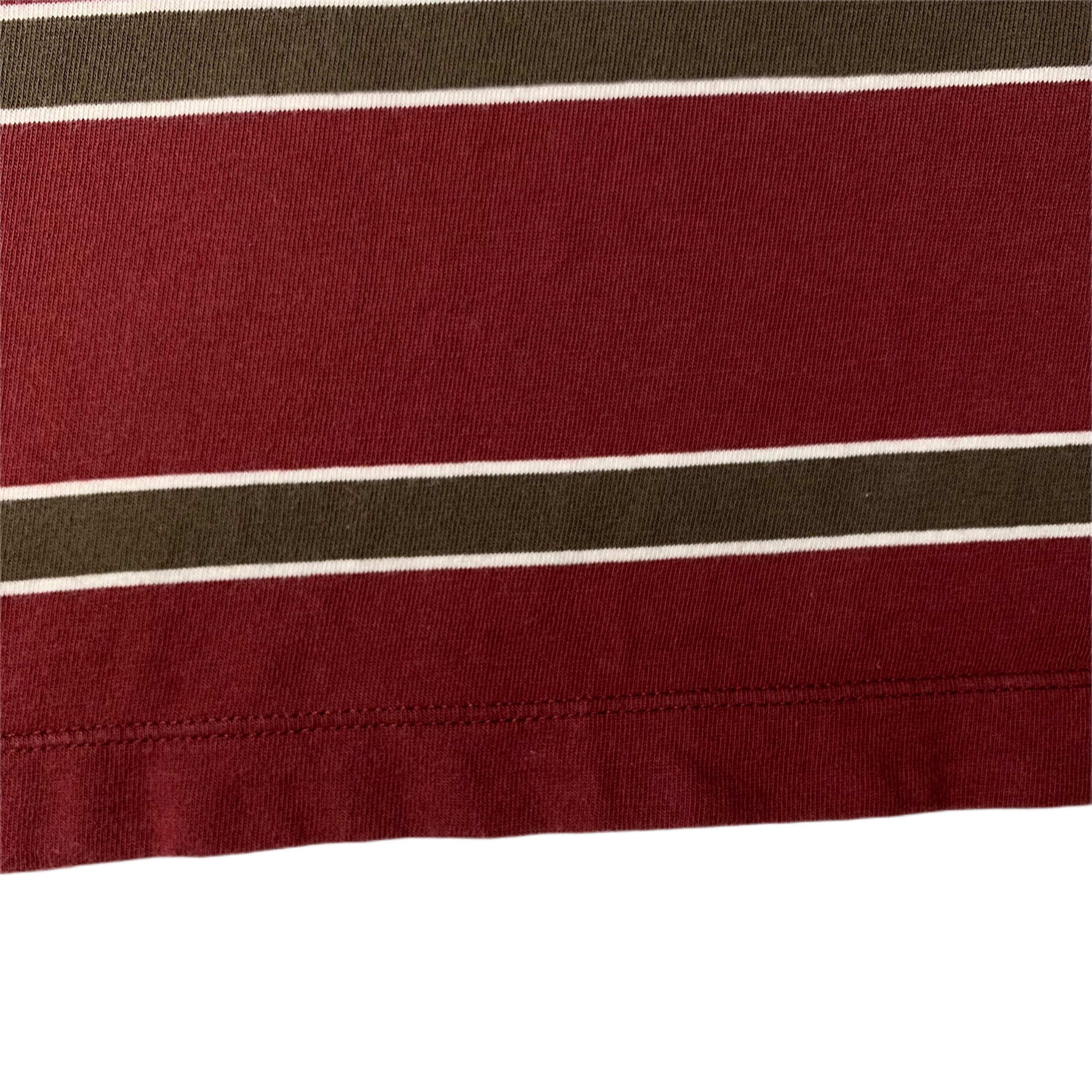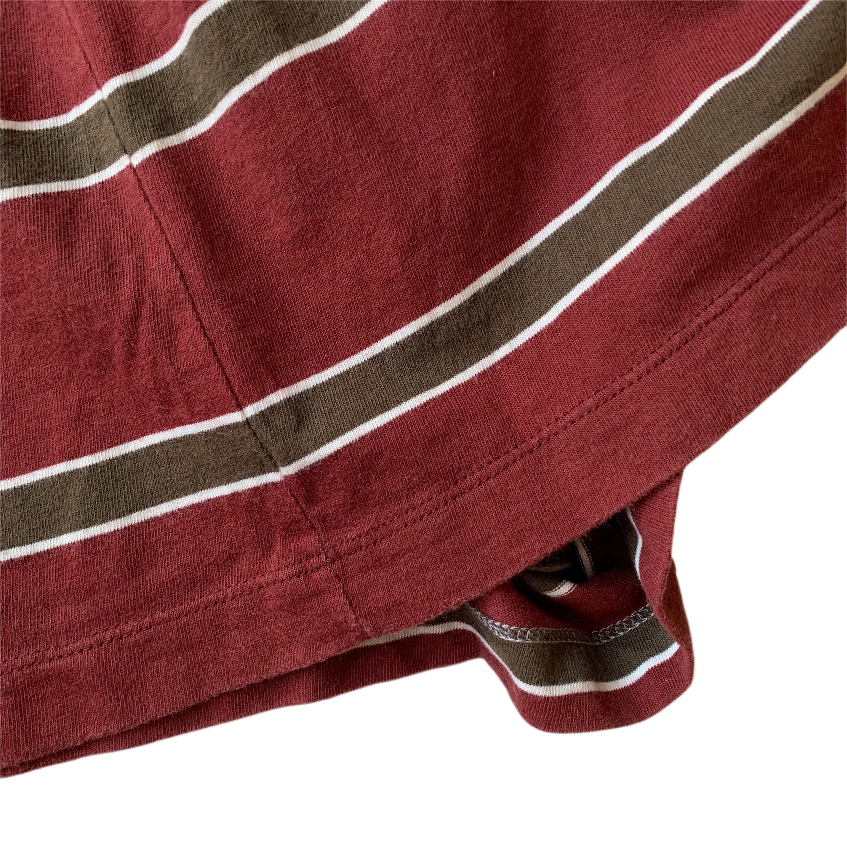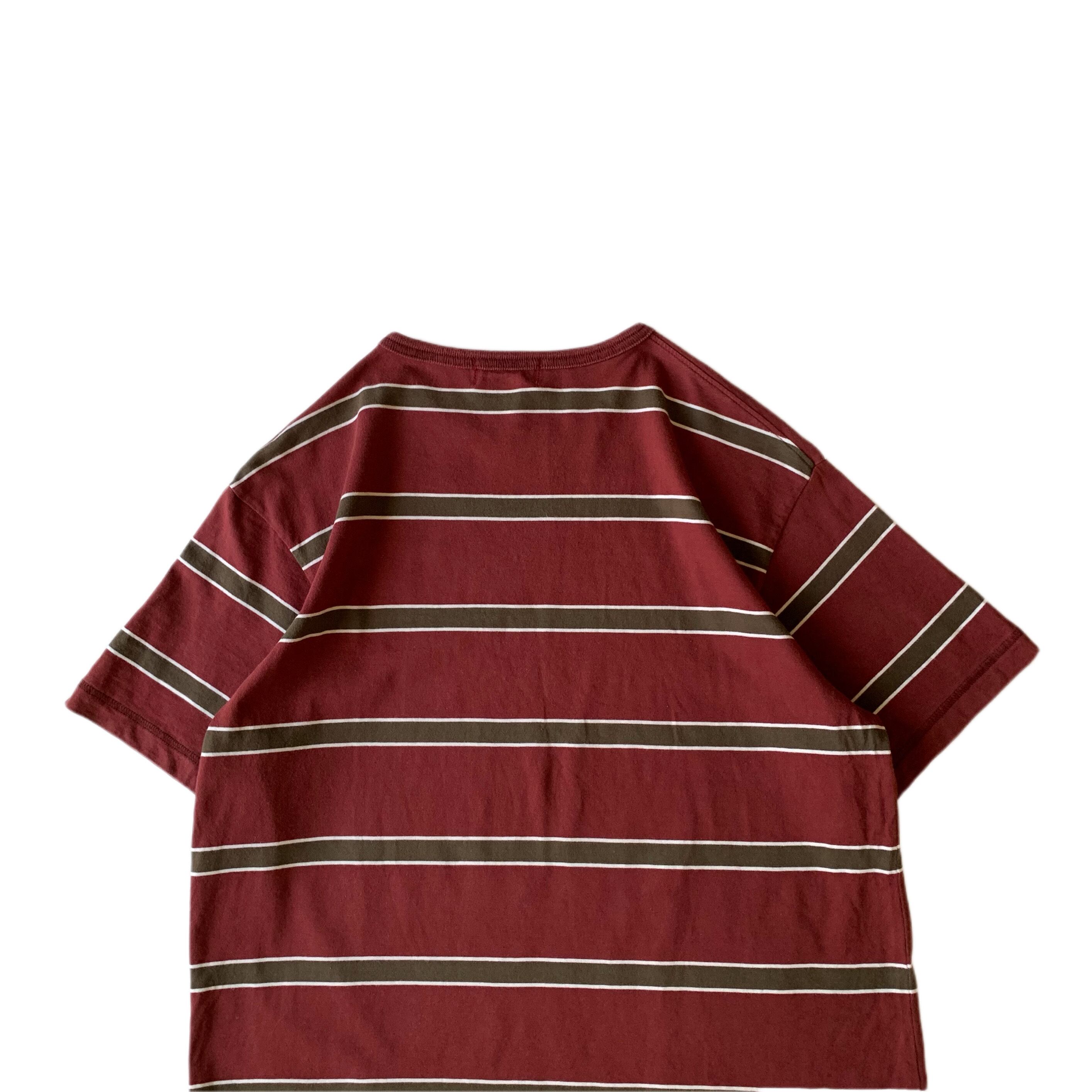 バーガンディ×ホワイト×カーキ系のボーダー柄。