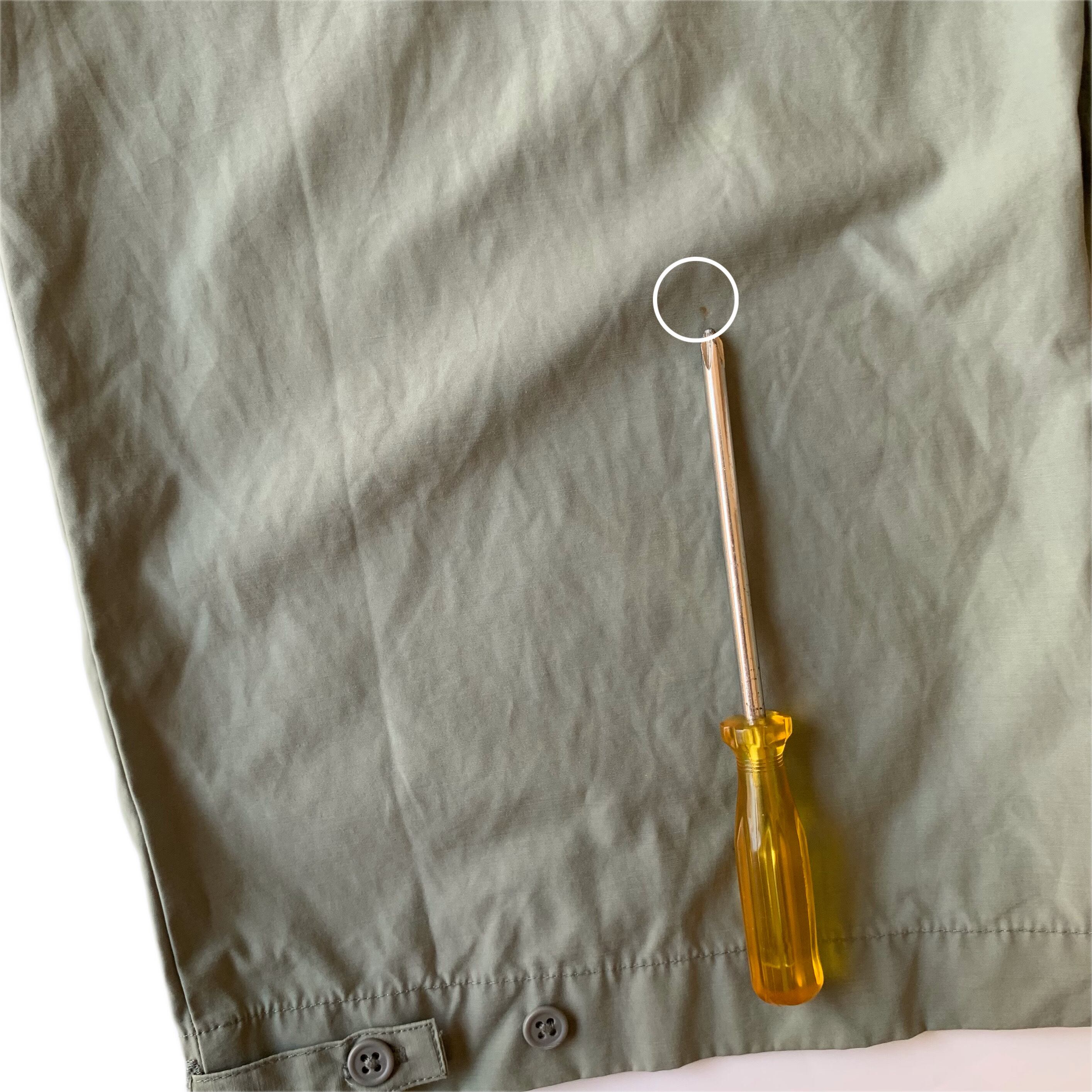 ウエストはドローコードで調整可能。ギュッと渋ることで、女性の方やほとんどの方が履けると思います。イージー系のパンツなのに、ジッパーフライついているのが嬉しいポイントですね。