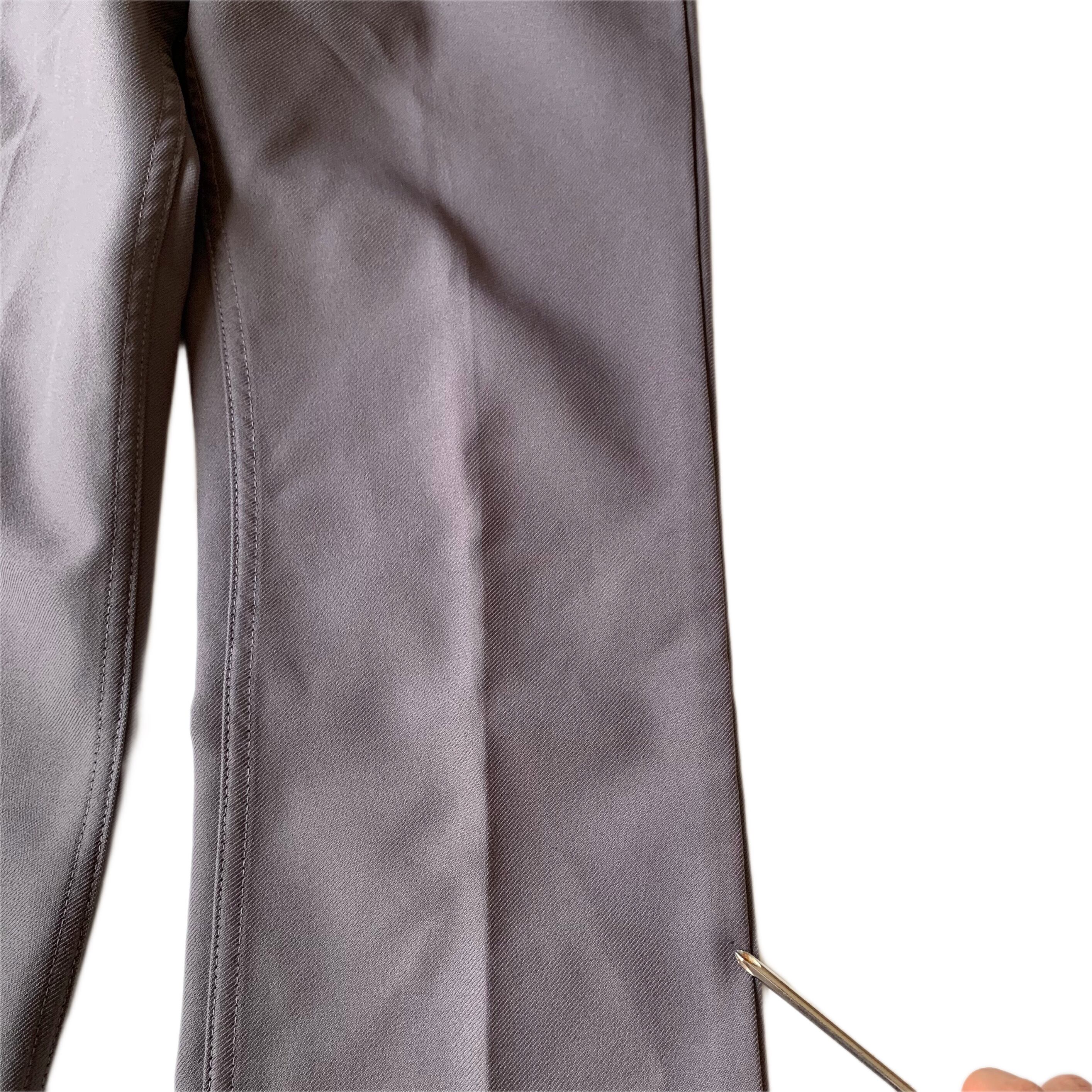 全体的に細身のシルエットで、裾がわずかにフレアになっています。
