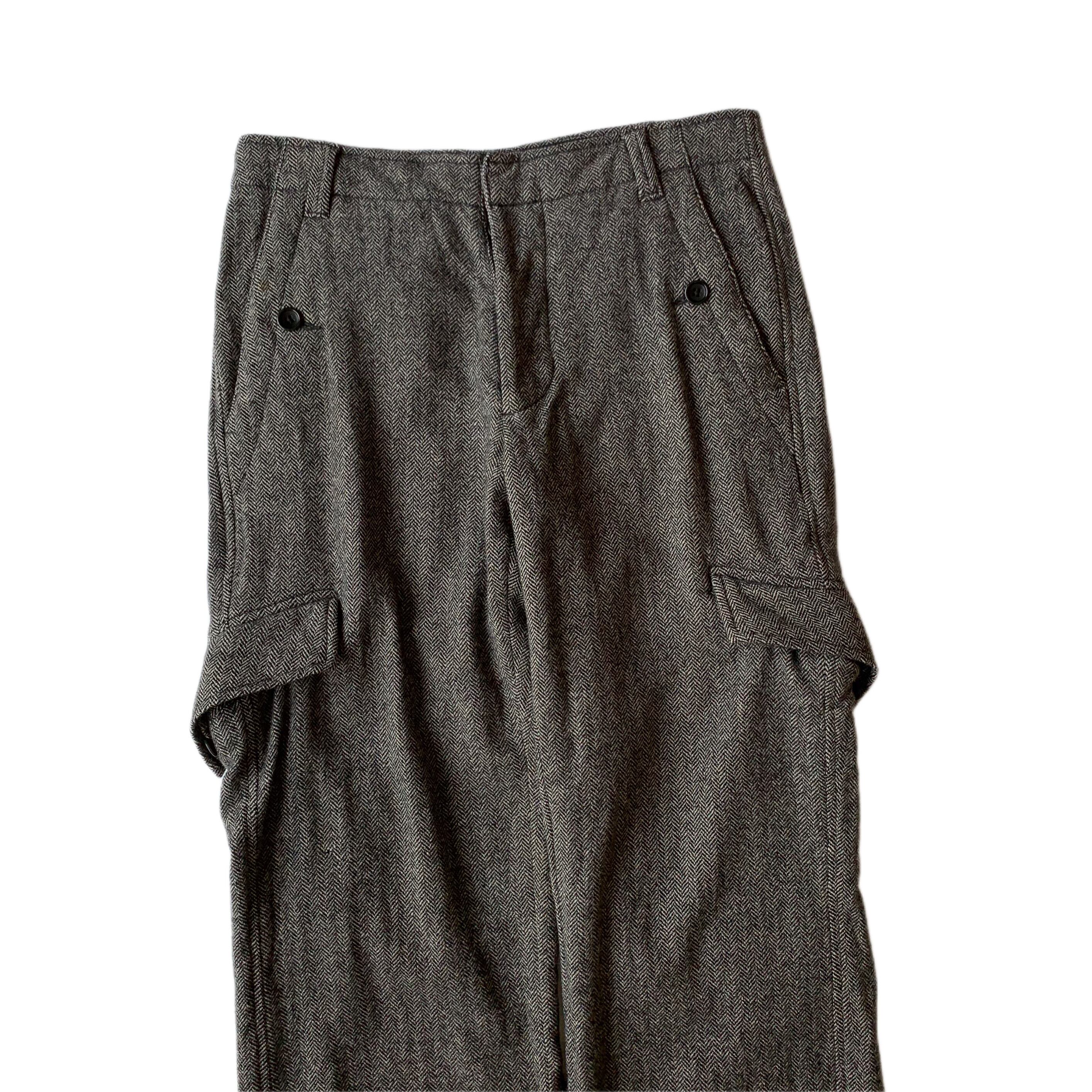 ウール素材のカーゴパンツ。ヘリンボーンツイル。