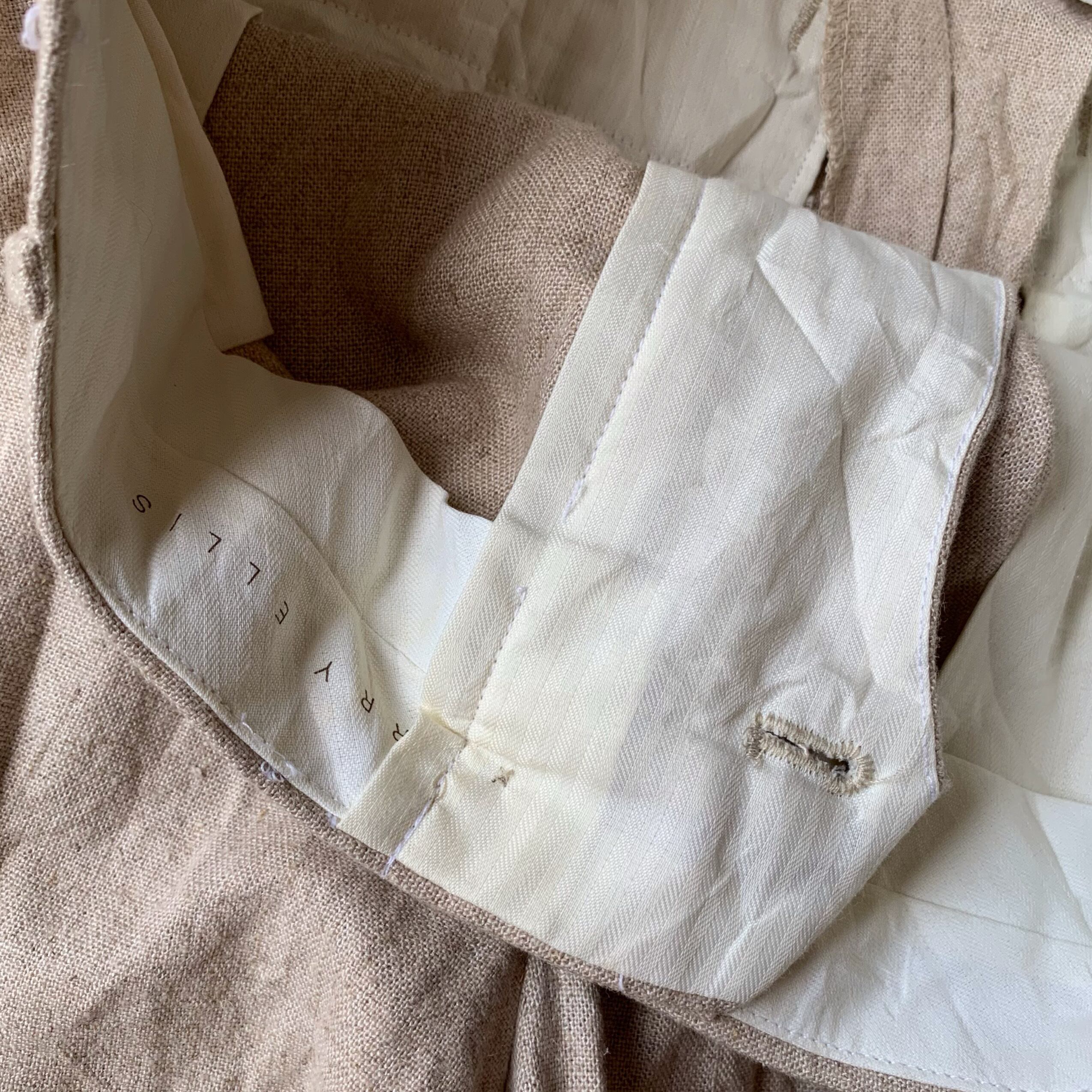 こちら1990年代頃のツータックスラックスです。ネップが飛んだリネン×レーヨン素材が使用されています。