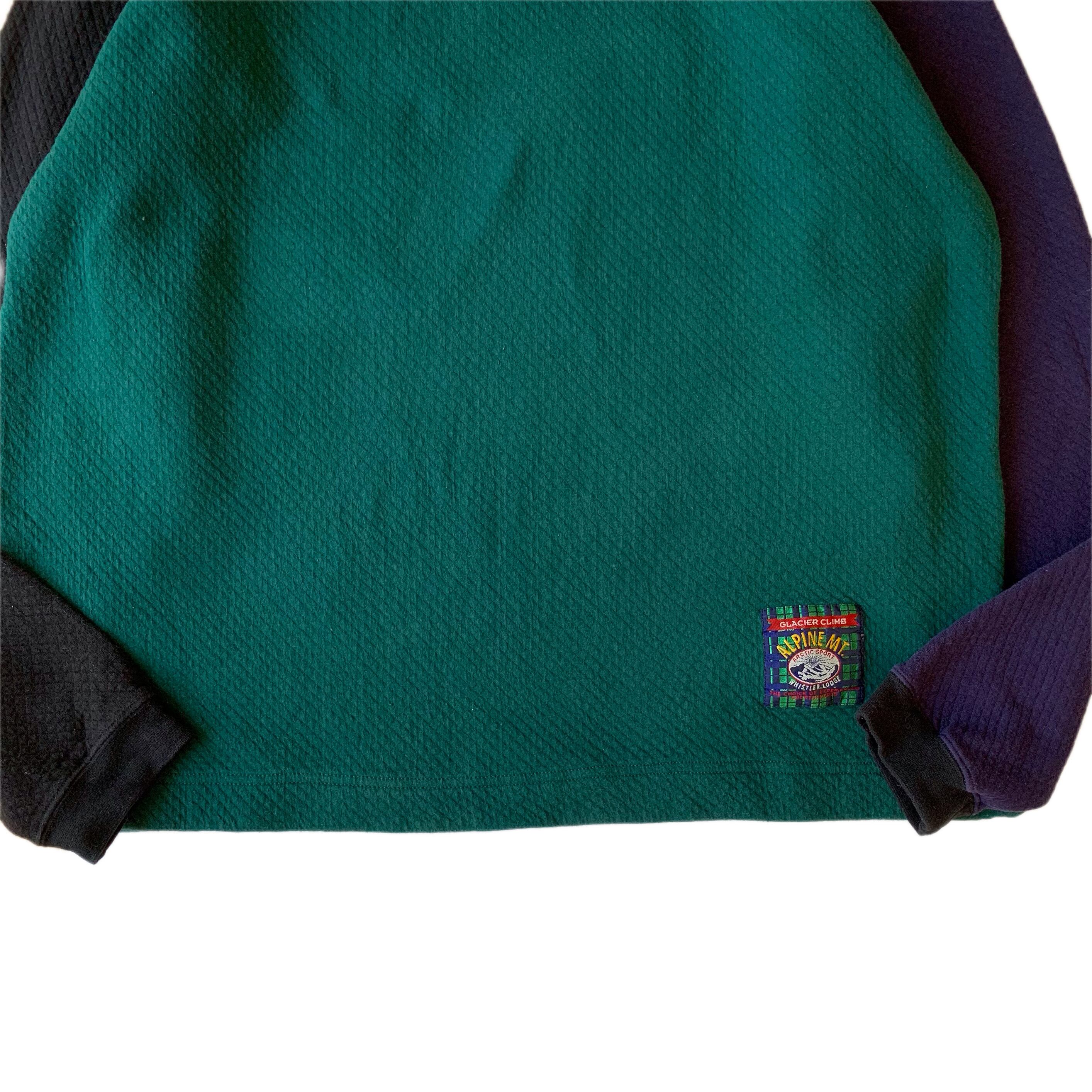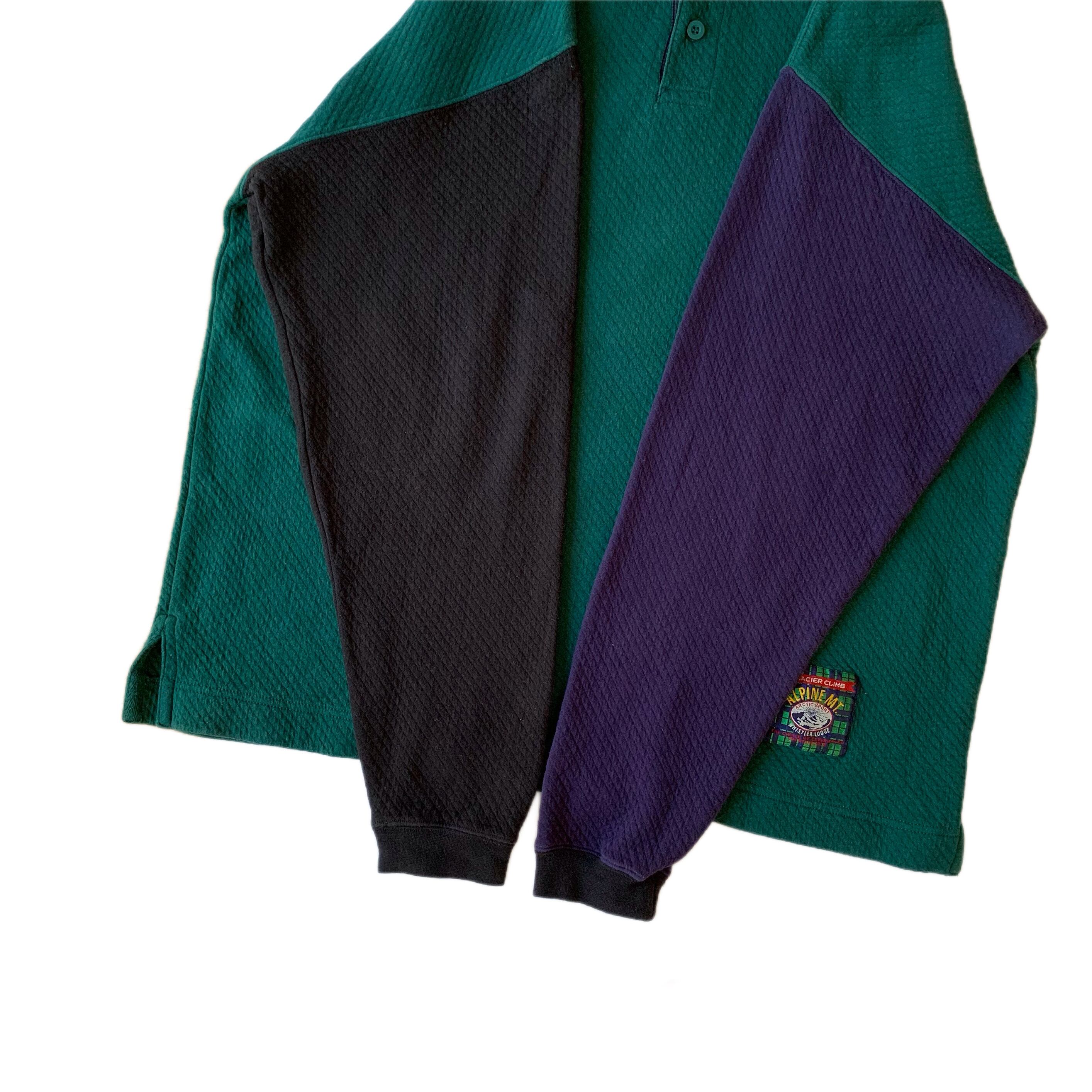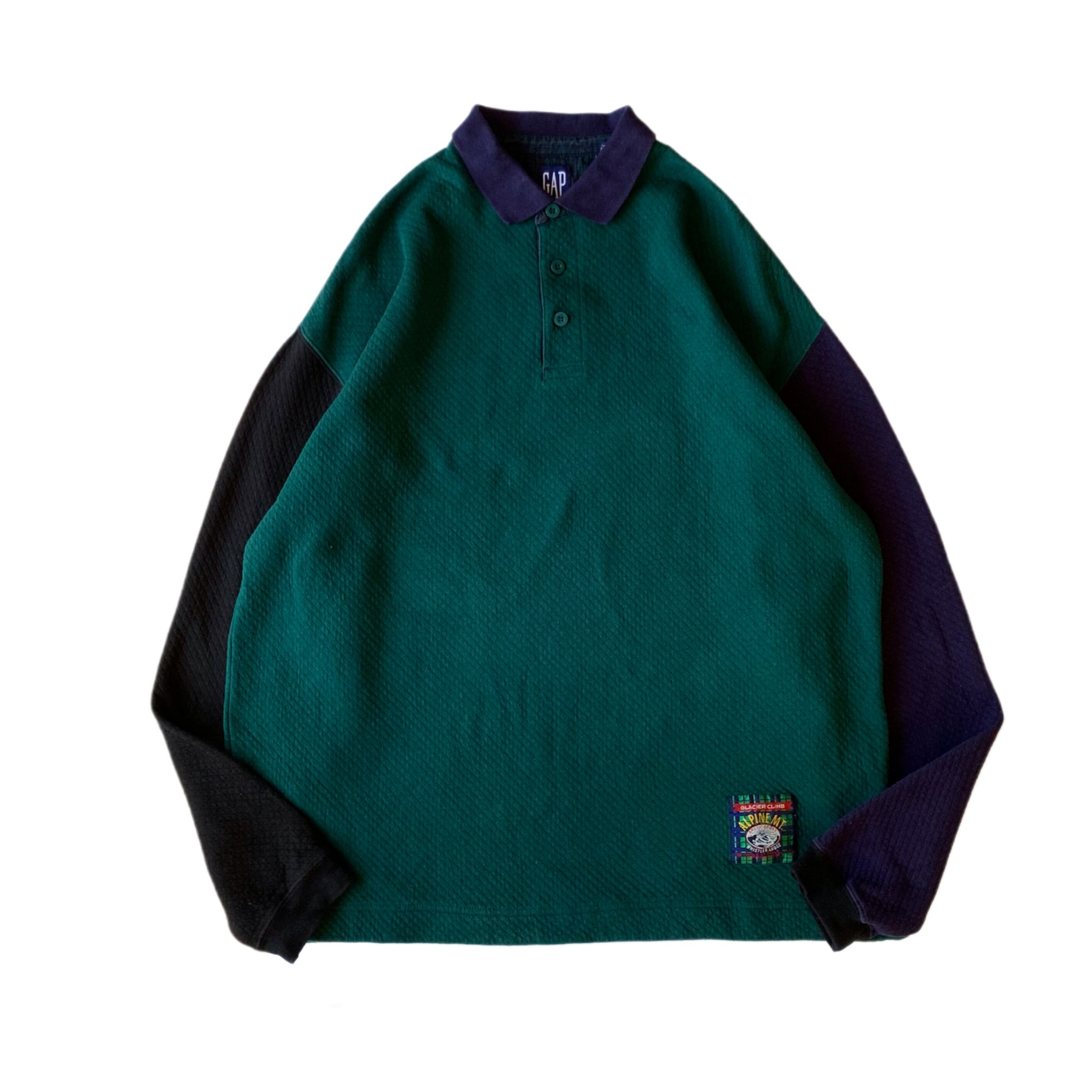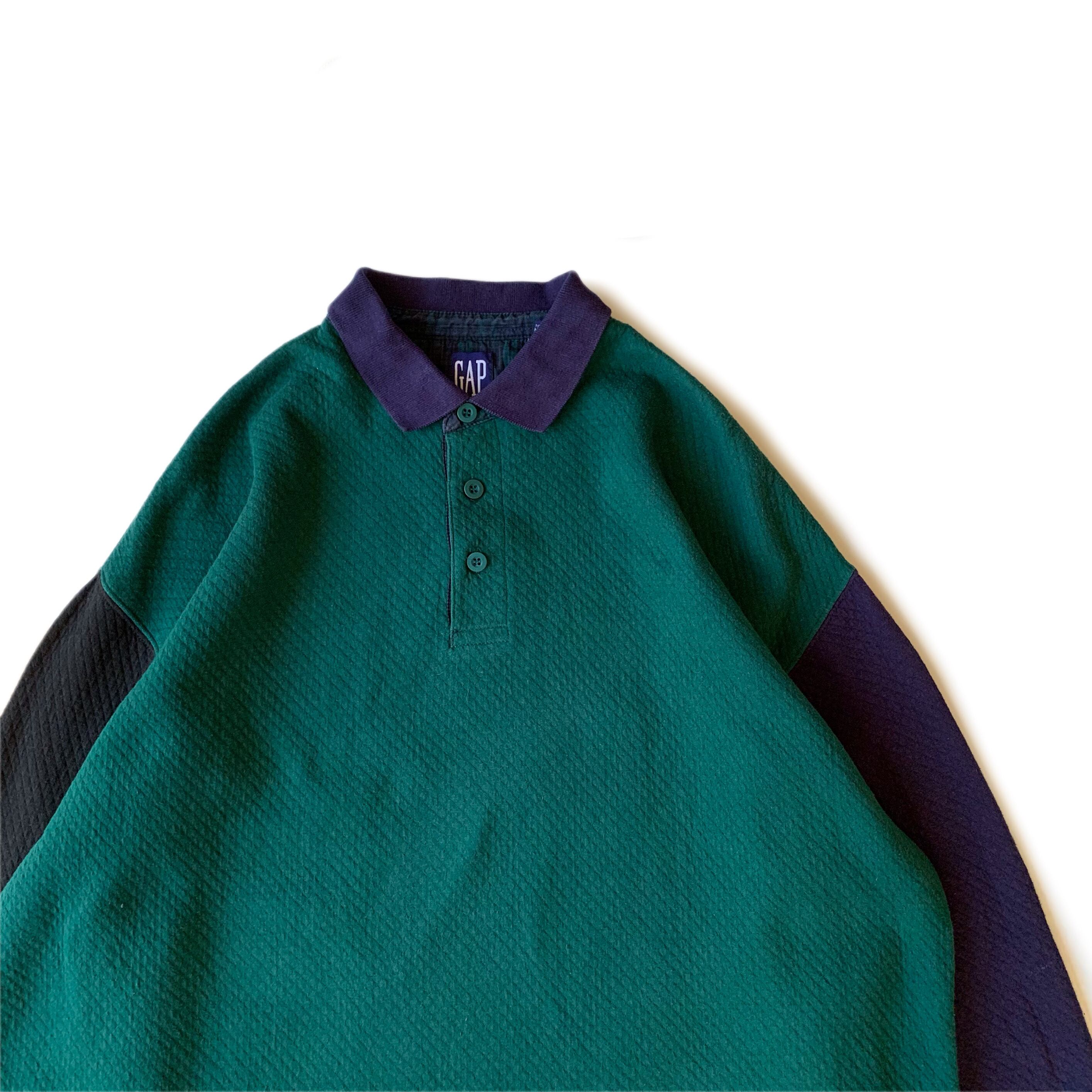 こちらは1990年代頃の長袖ポロシャツです。生地感としてはスウェットに近いかと思います。ナイロンも入っているので、伸縮性があり着心地が良いです。