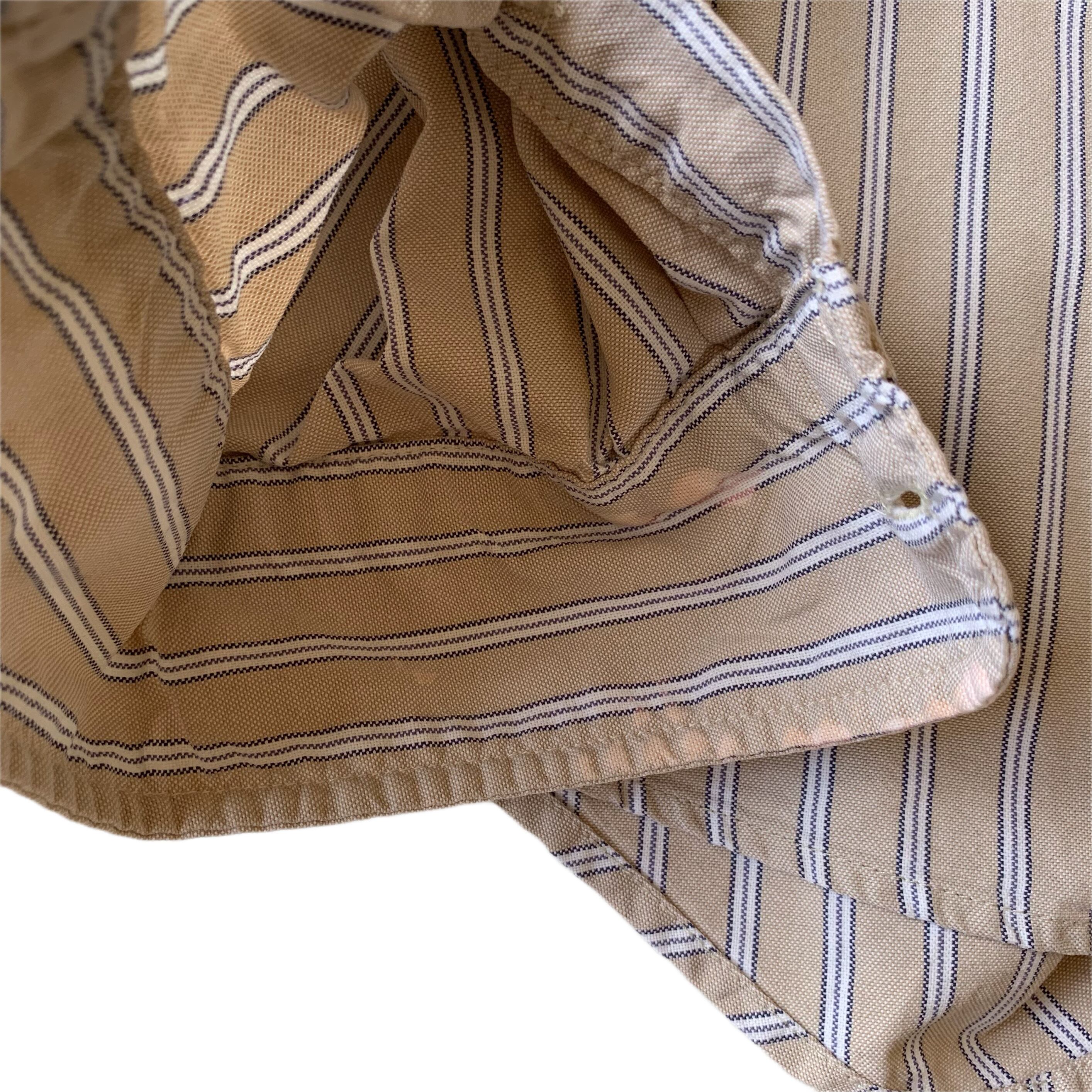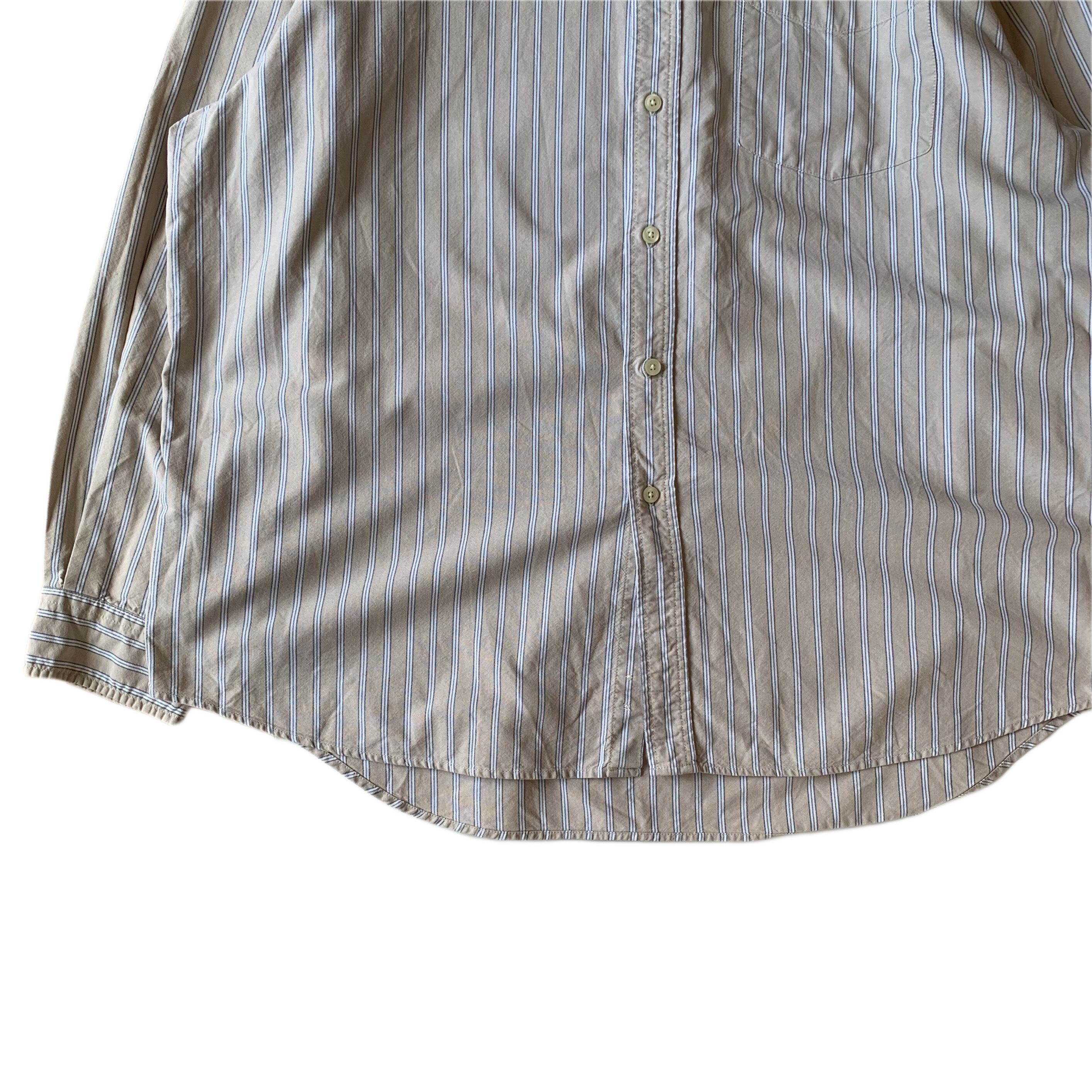 こちらは2000年代頃のボタンダウンシャツ。ベージュ×ホワイト×グレーのストライプ柄。左胸にはパッチポケットがございます。