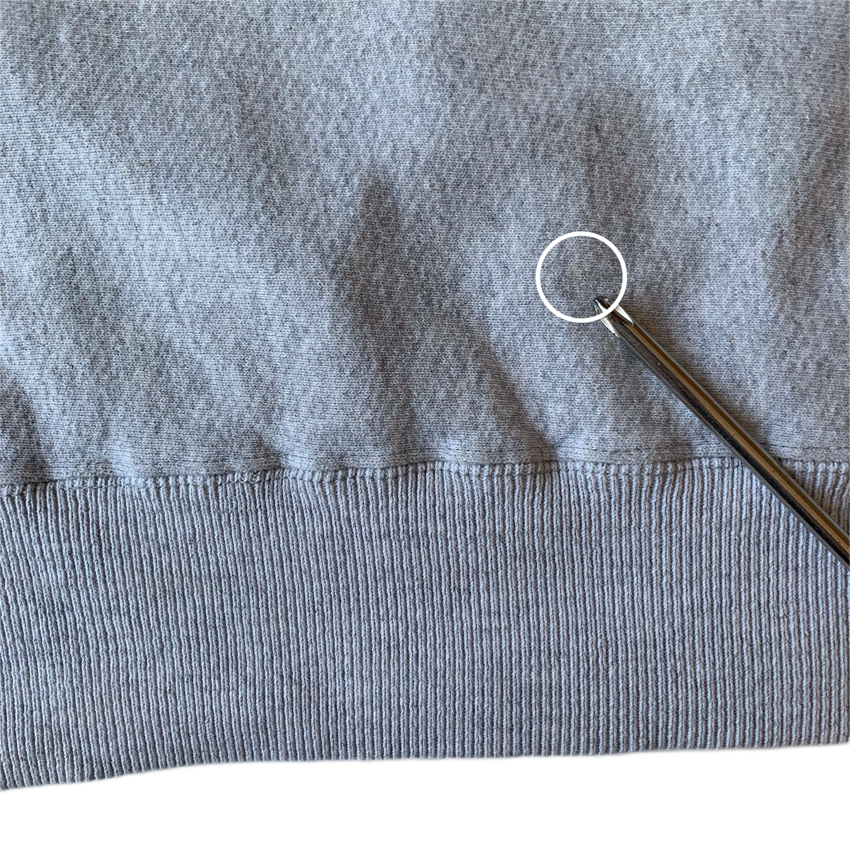 こちらは首元がざっくりとカットオフされ、切りっぱなしのリメイクがされております。