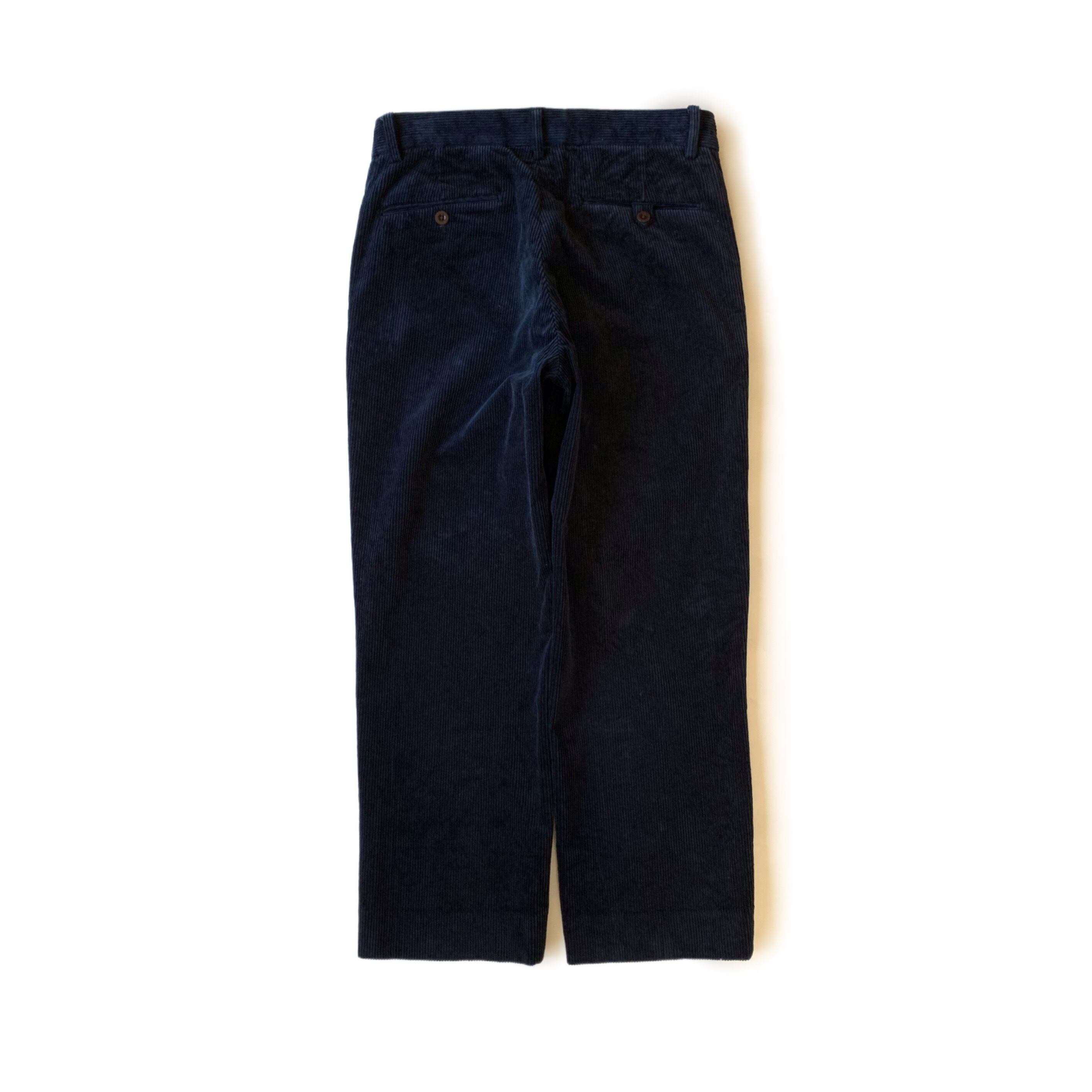 落ちついたネイビーカラーで使い勝手良いです。ふっくらとした太畝で、光の当たり方によって、より上品に見えます。