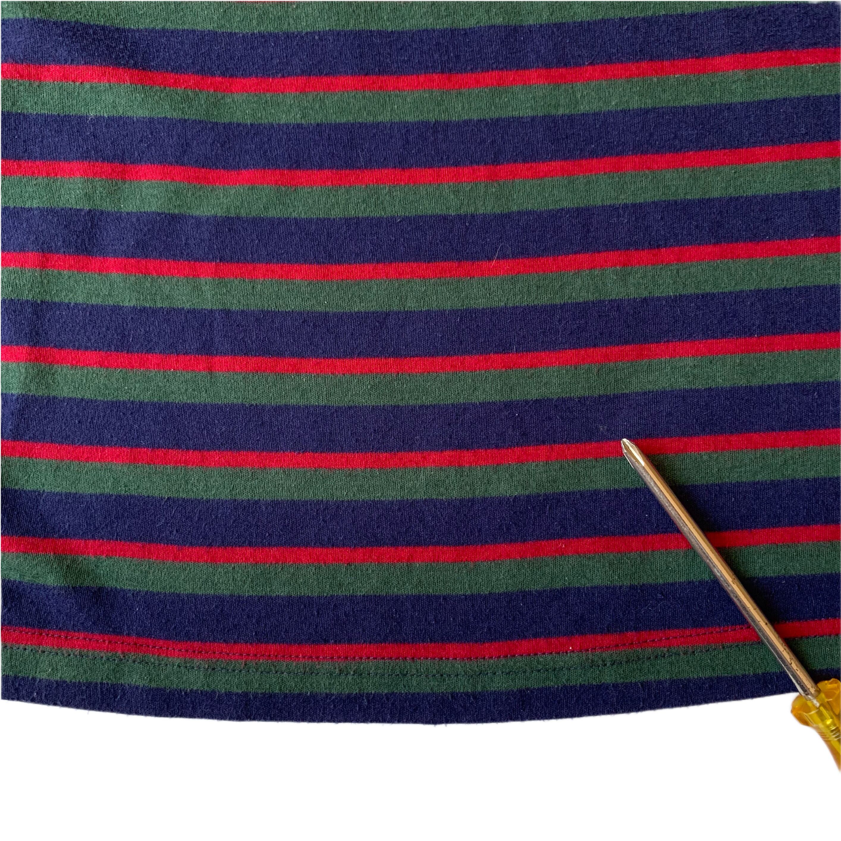 マルチボーダー柄、インナーとしても使えそうな薄手の生地感。サラッと肌触りも良いです。