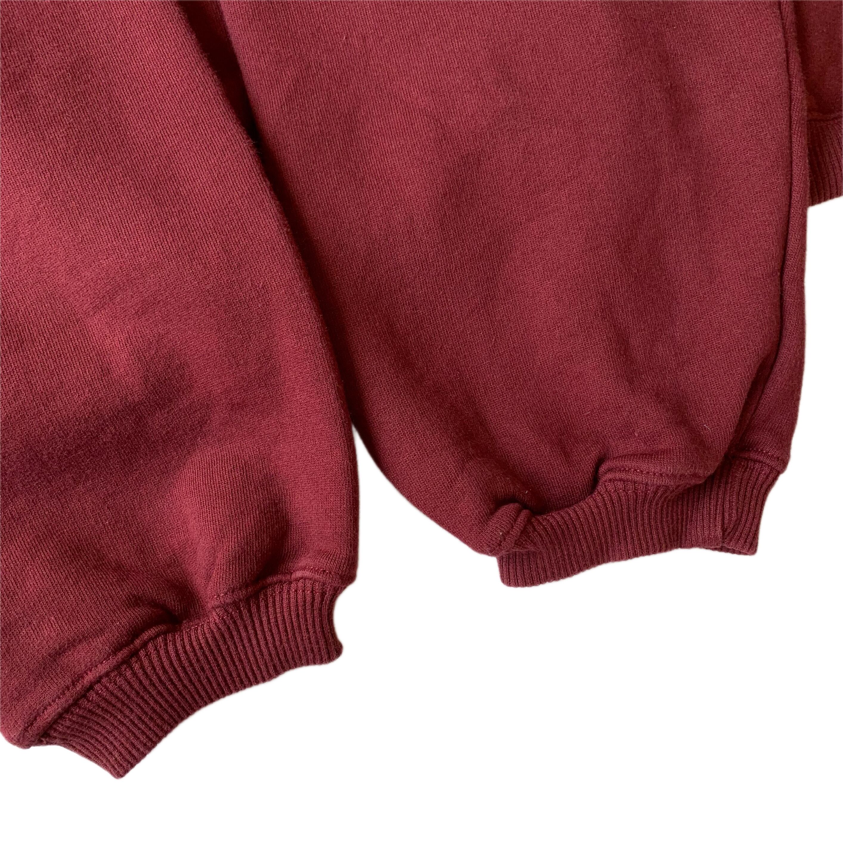 プルオーバー、襟付きのポロタイプのスウェット。バーガンディカラーボディにメタルボタン、左胸ポケットが良いアクセントになっております。