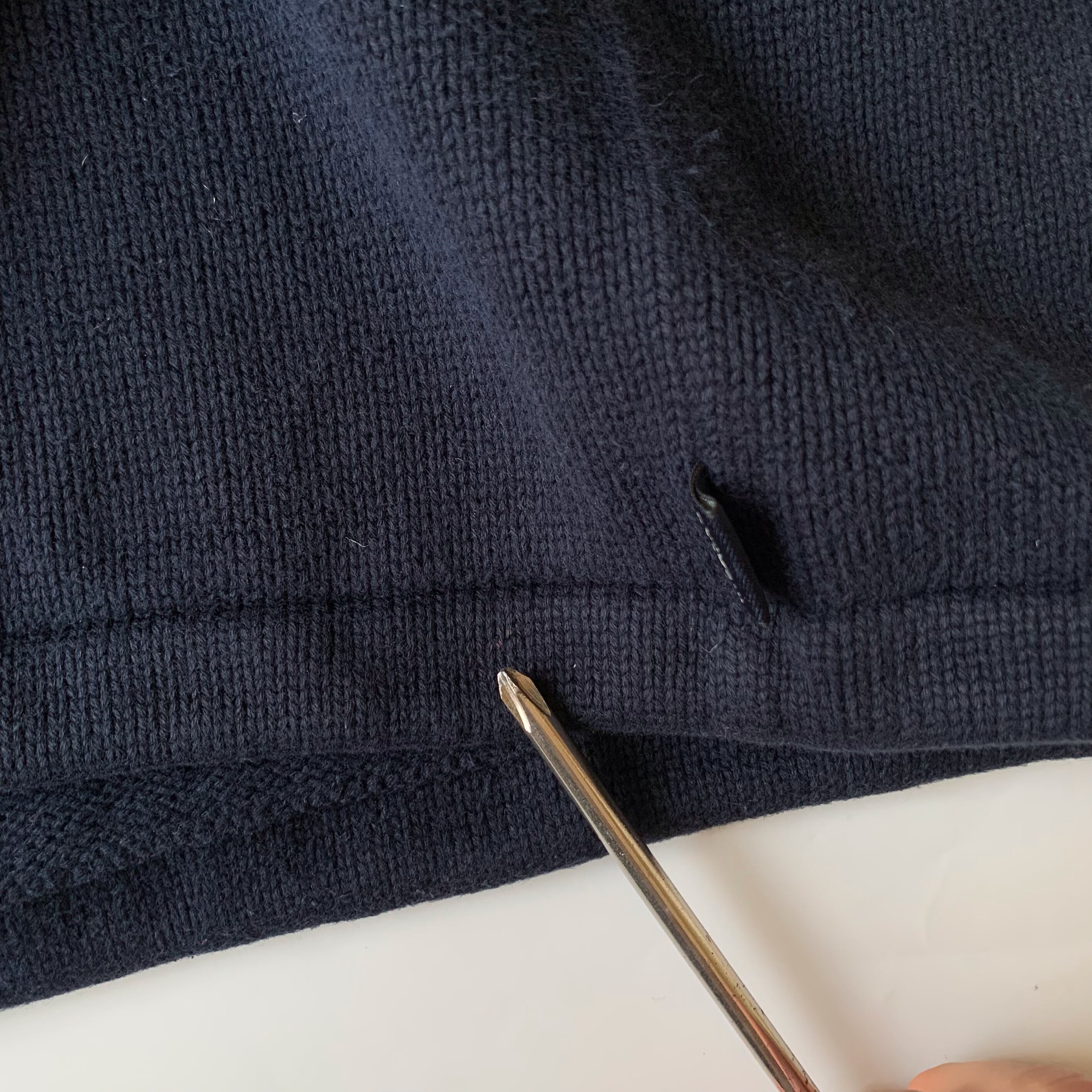 アームホール周りや袖先で編み方が切り替えられており非常に手の込んだ作りの逸品です。