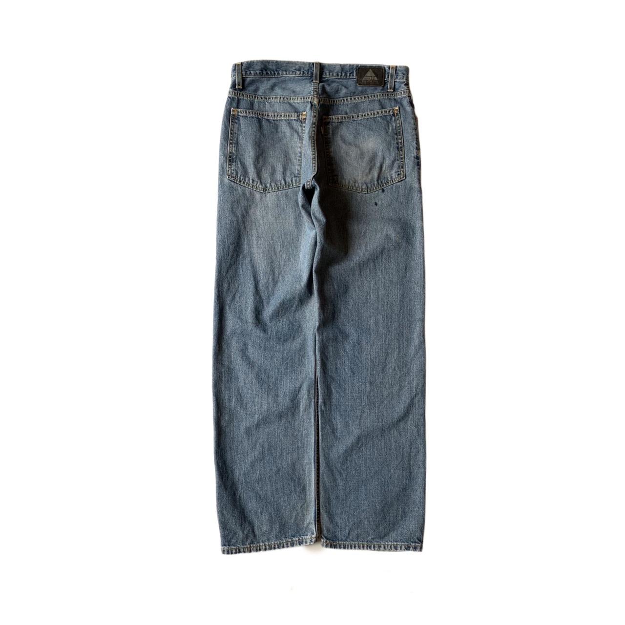 “RELAXED FIT”とあるようにワタリ幅が広くクセのない太いシルエット。