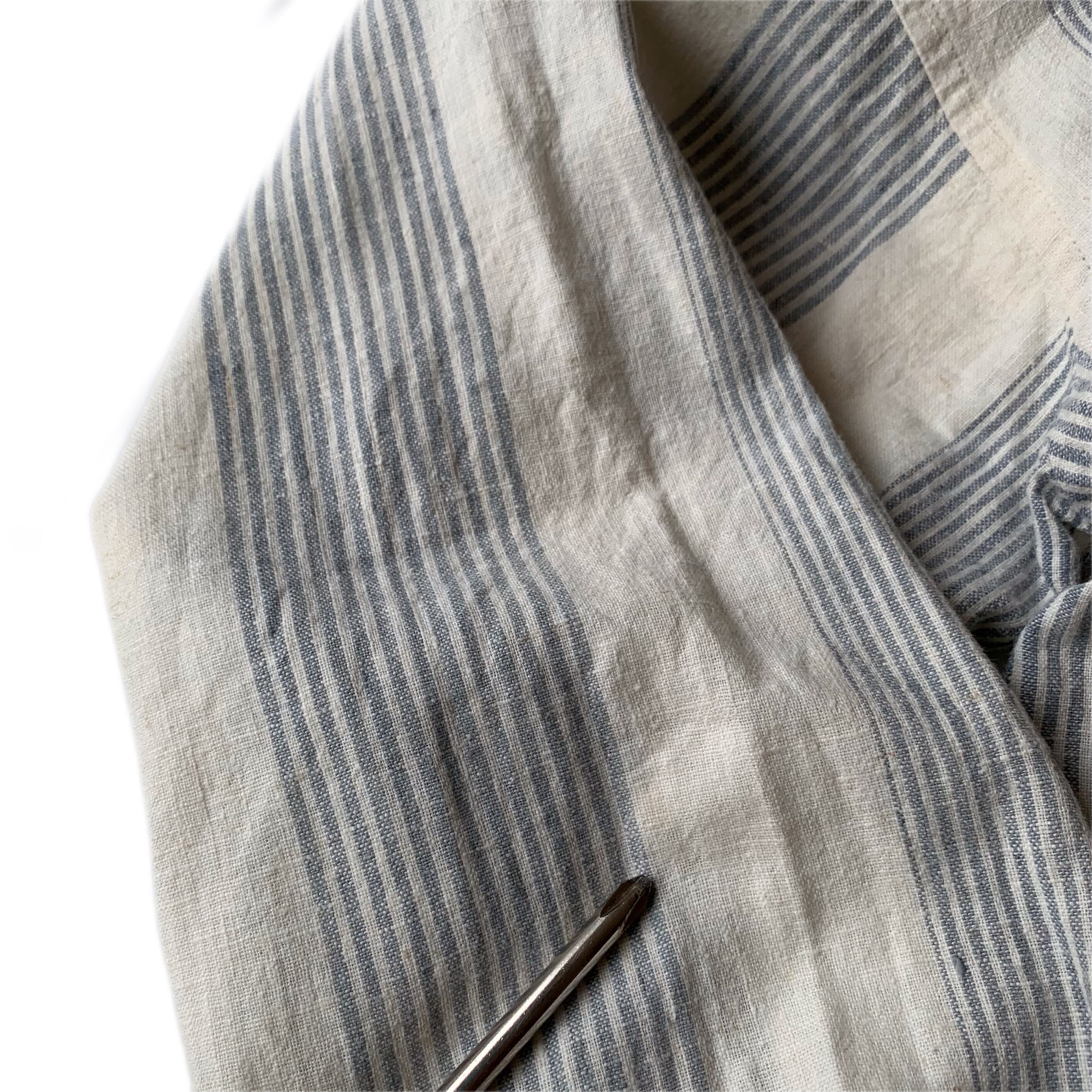 ブルー×ホワイトの爽やかなストライプ柄。ホワイト部分にはオレンジのネップが飛んでおり、柔らかな雰囲気がございます。