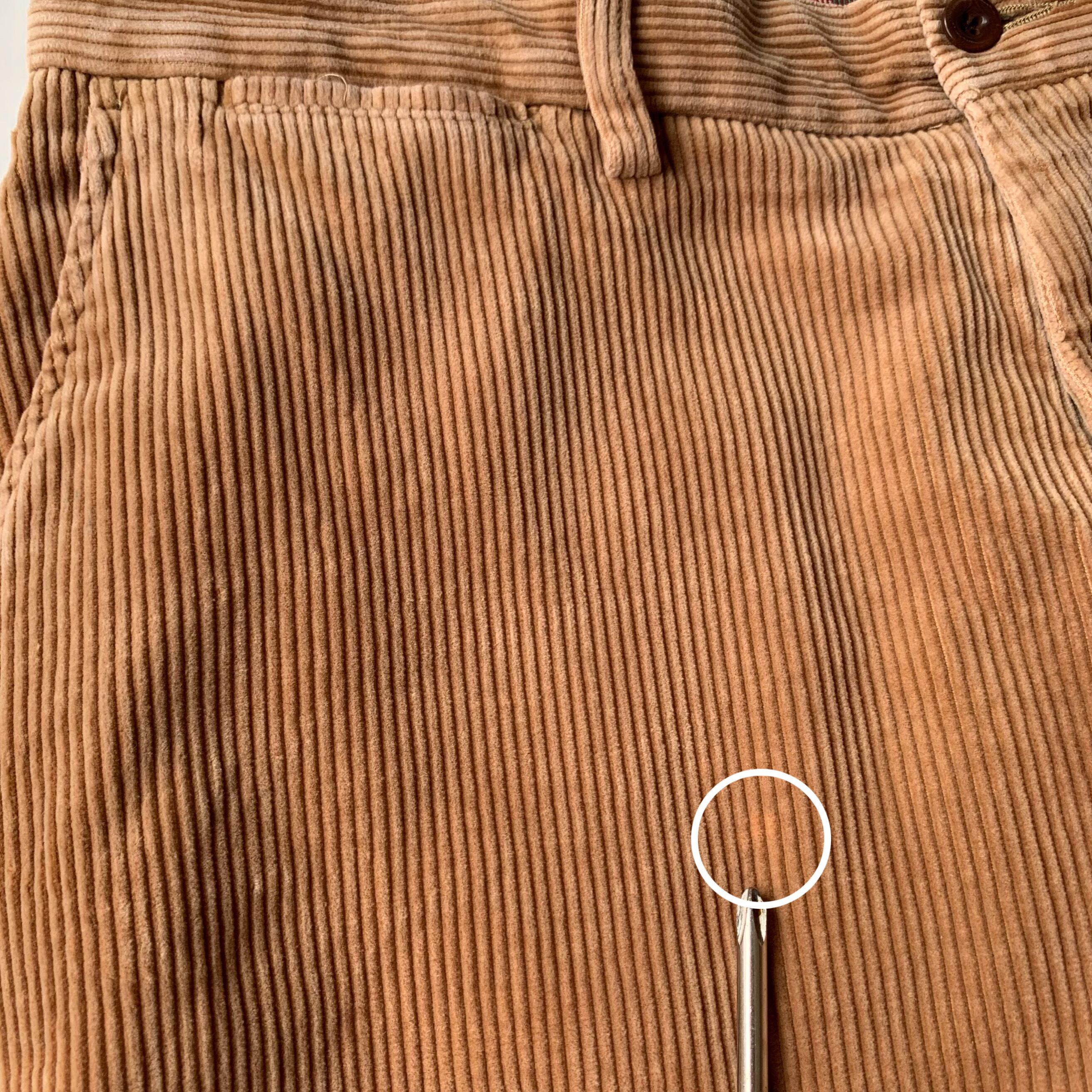 ・裾裏、後身頃 左裾上、右バックポケット下など所々に汚れがございます。