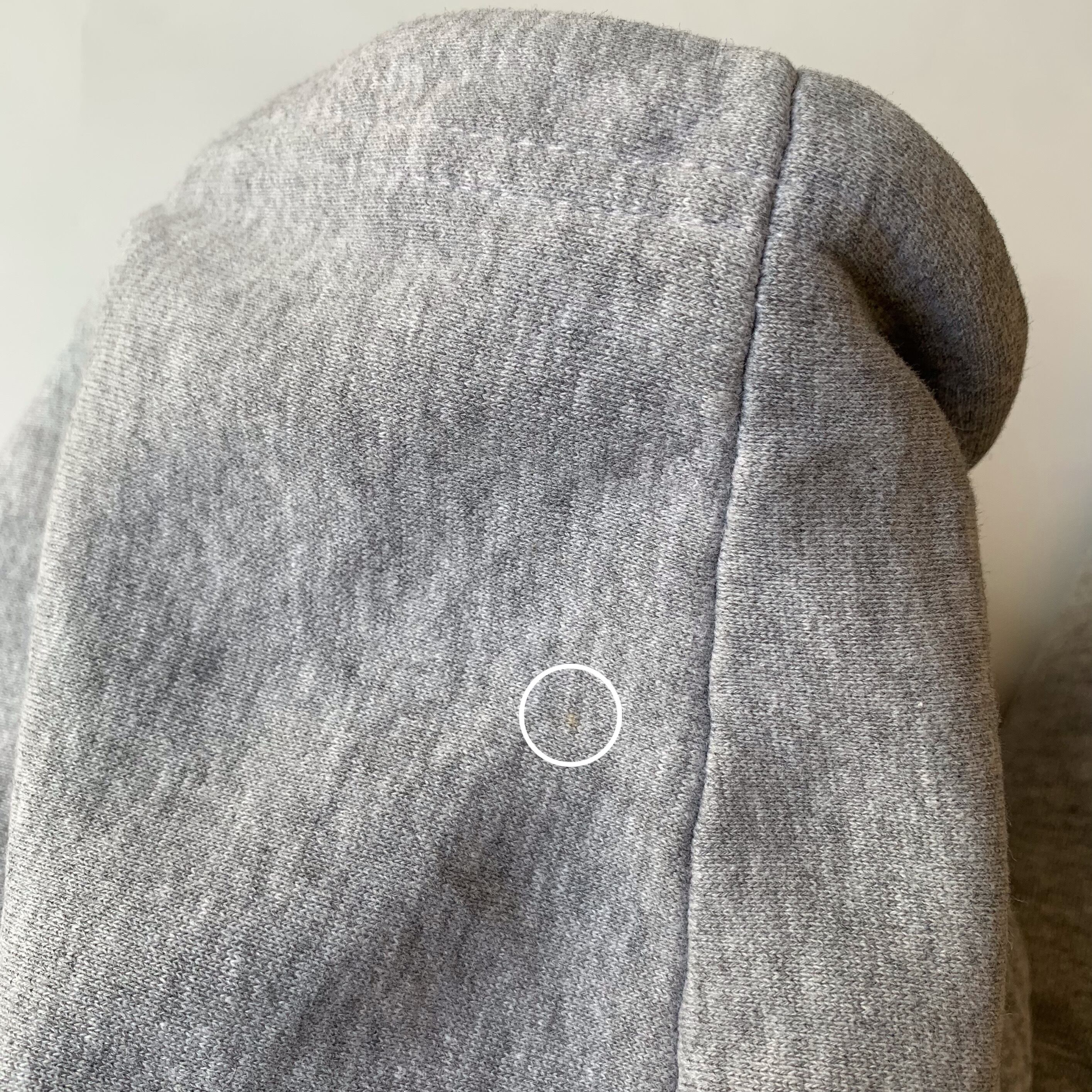 ・カンガルーポケット、ポケット縁、袖リブ、前身頃 右袖リブ、後身頃 右袖、後身頃 左袖先など所々にシミがございます。